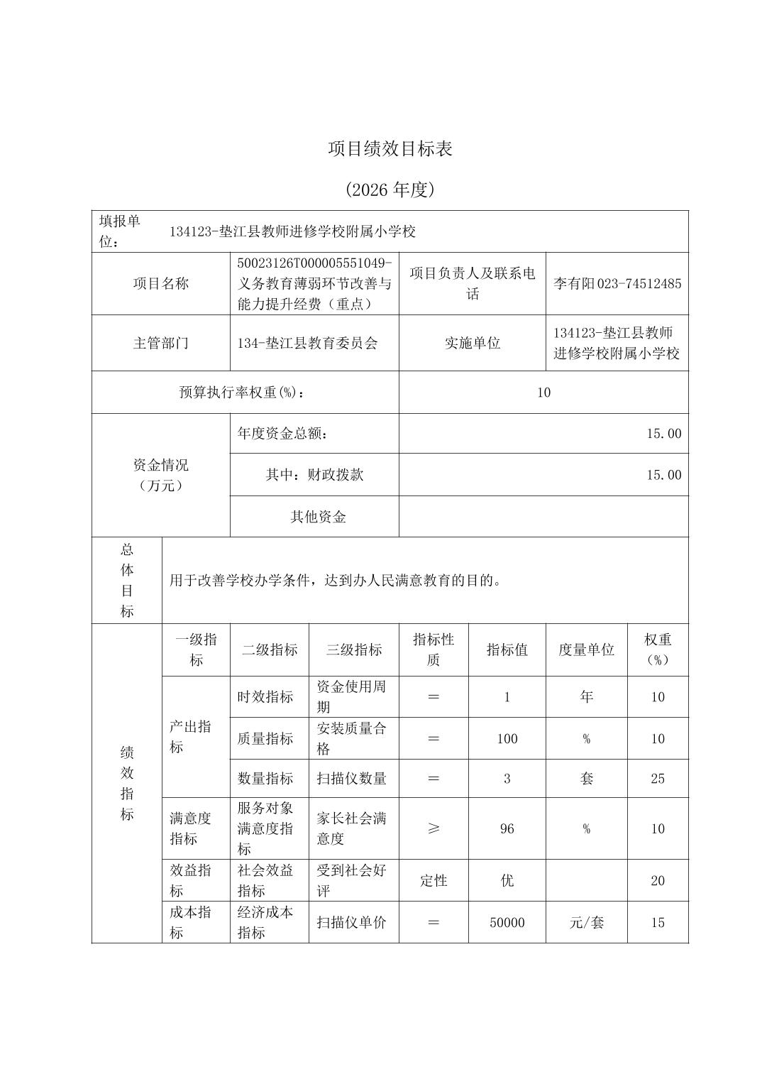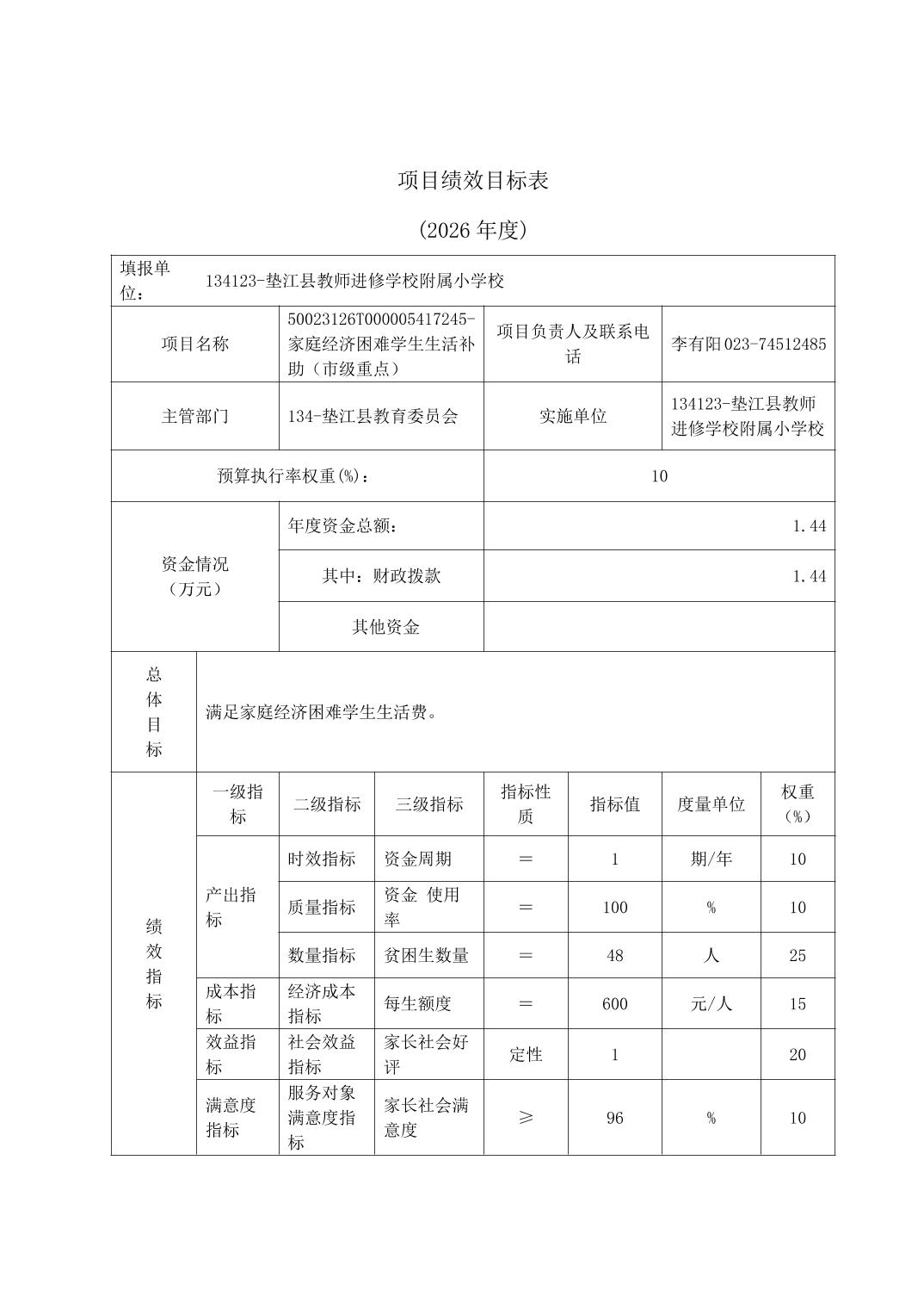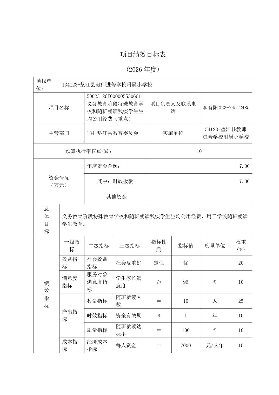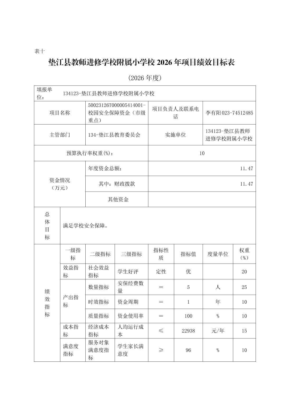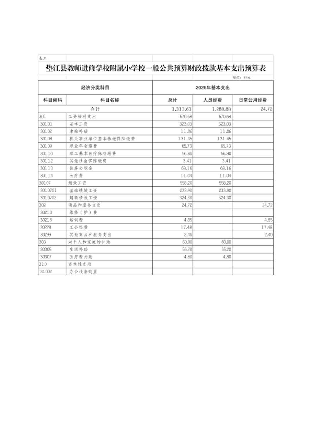 垫江县教师进修学校附属小学校2026年单位预算情况说明