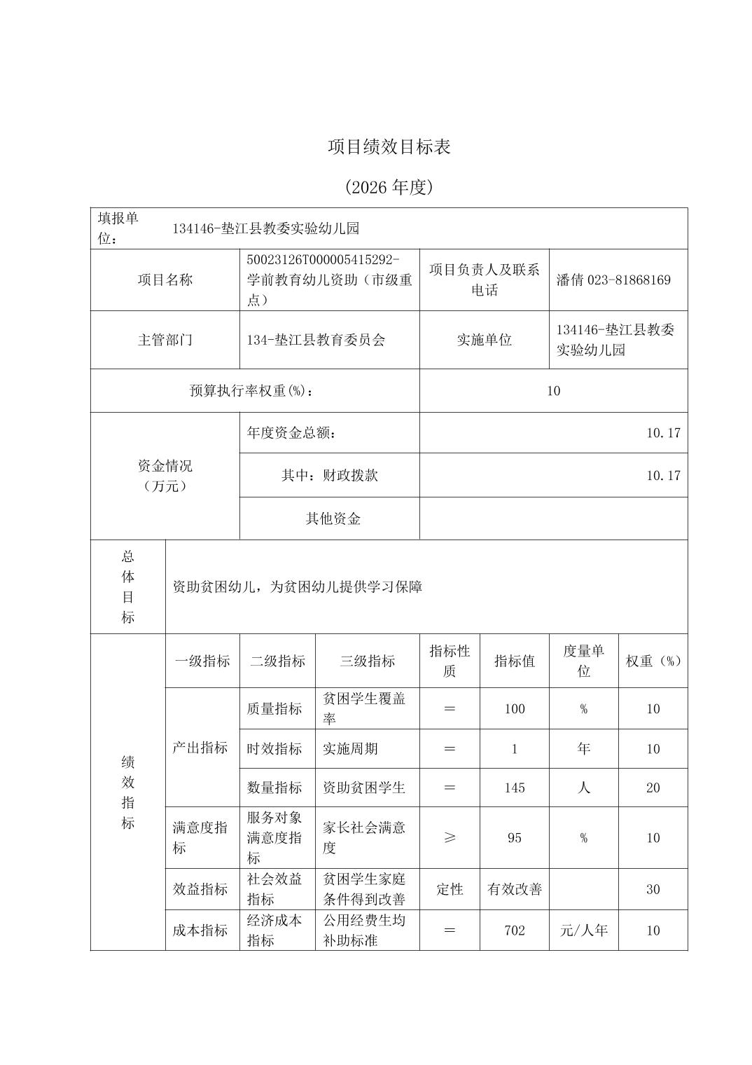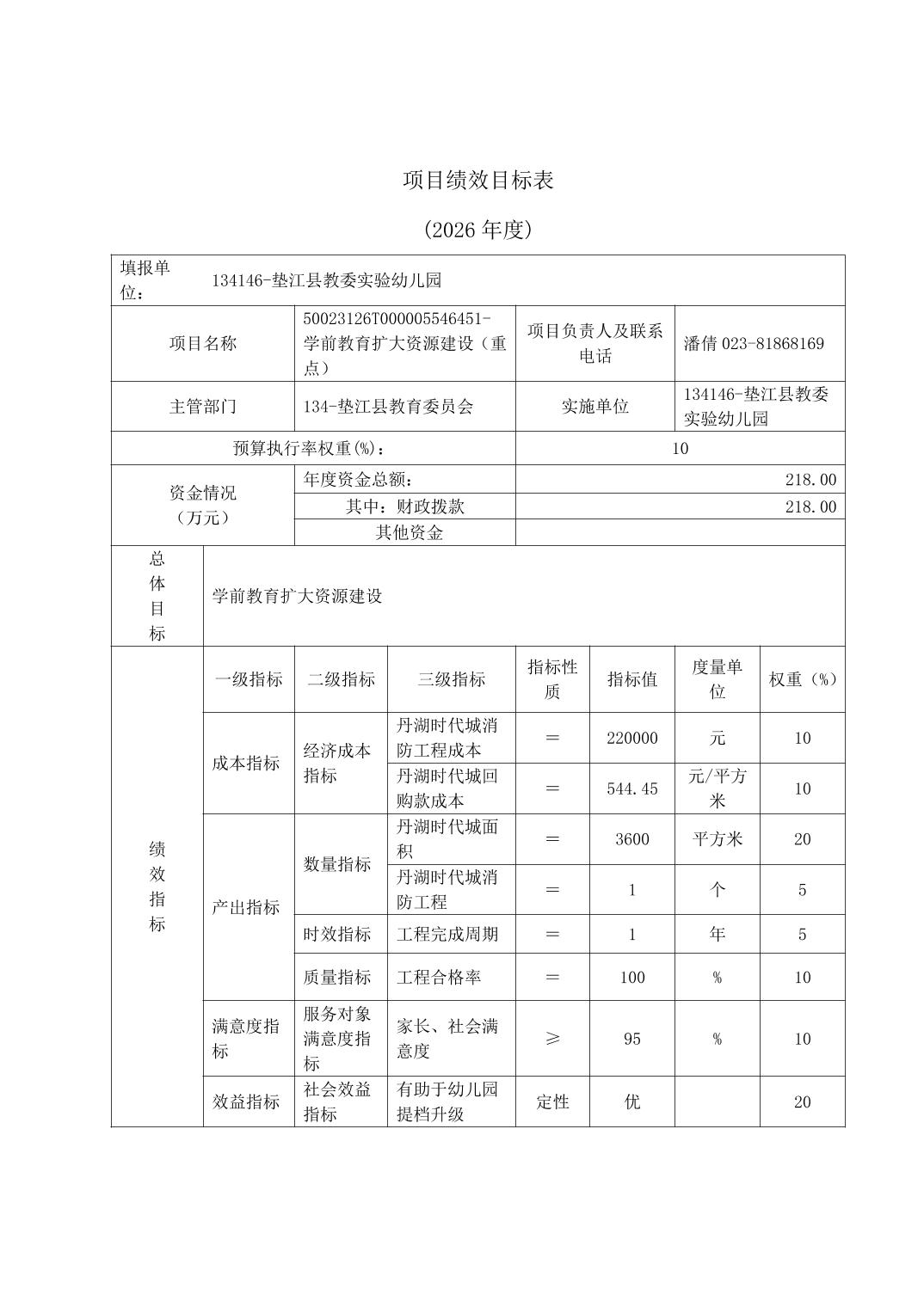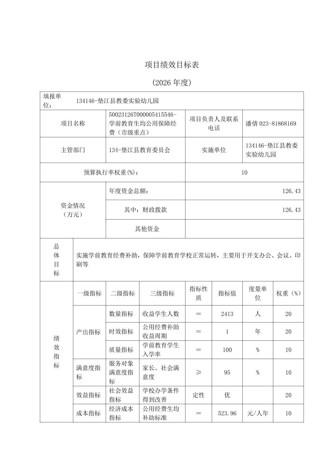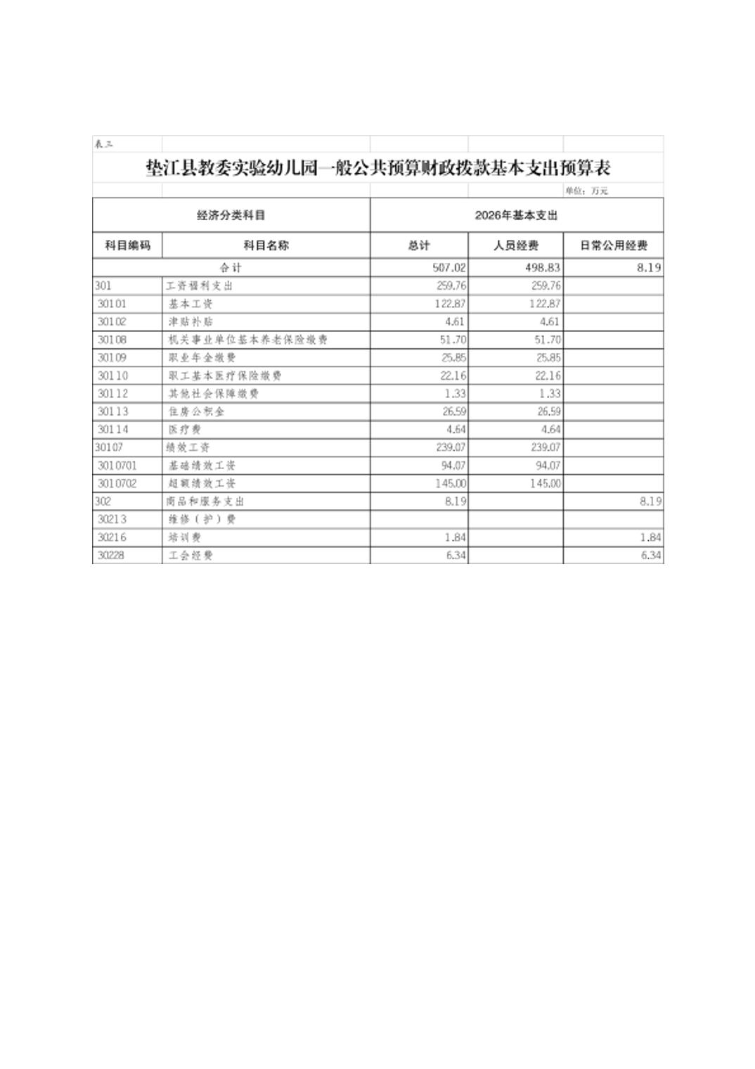 垫江县教委实验幼儿园2026年单位预算情况说明