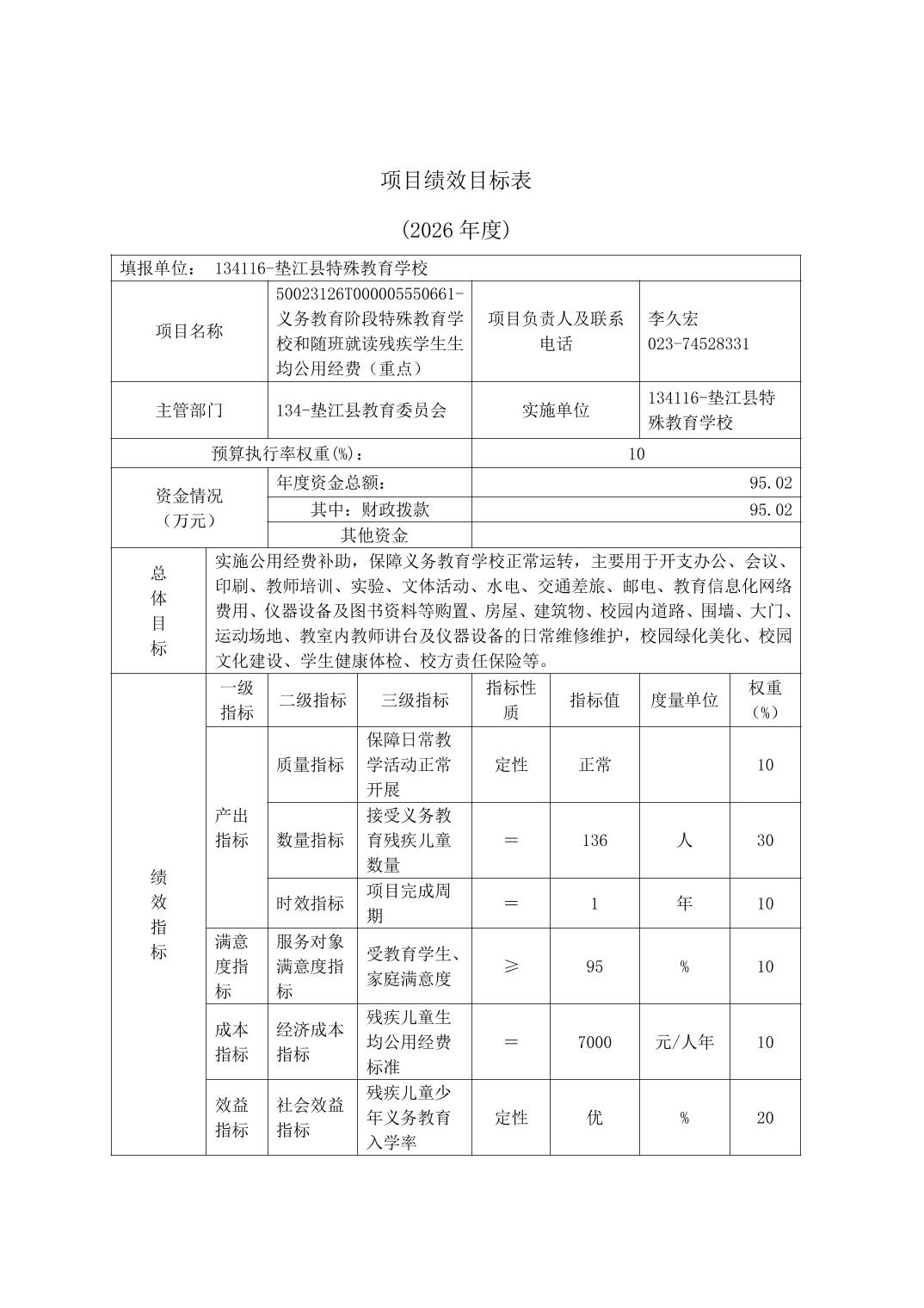 垫江县特殊教育学校2026年单位预算情况说明