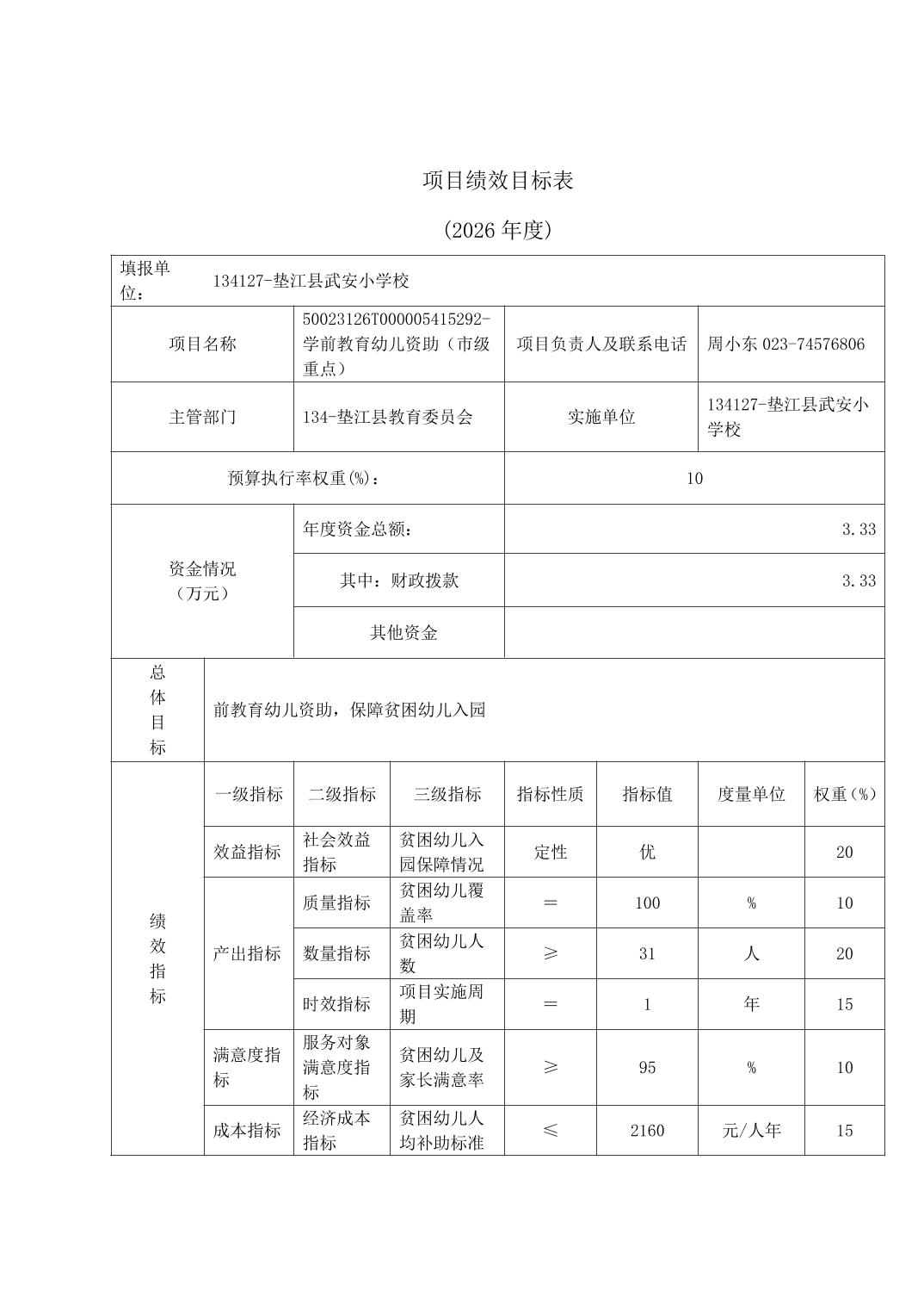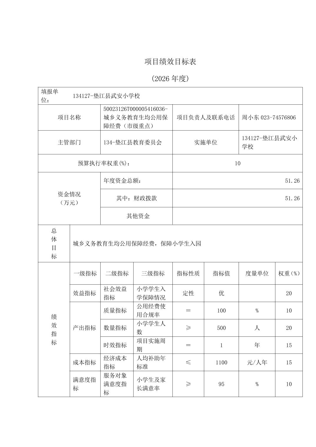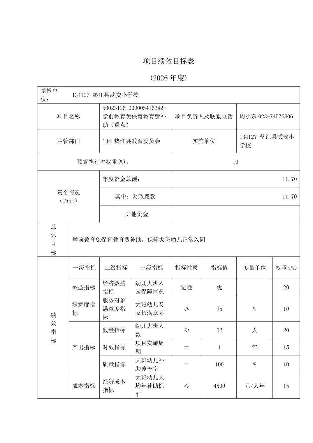 垫江县武安小学校2026年预算情况说明