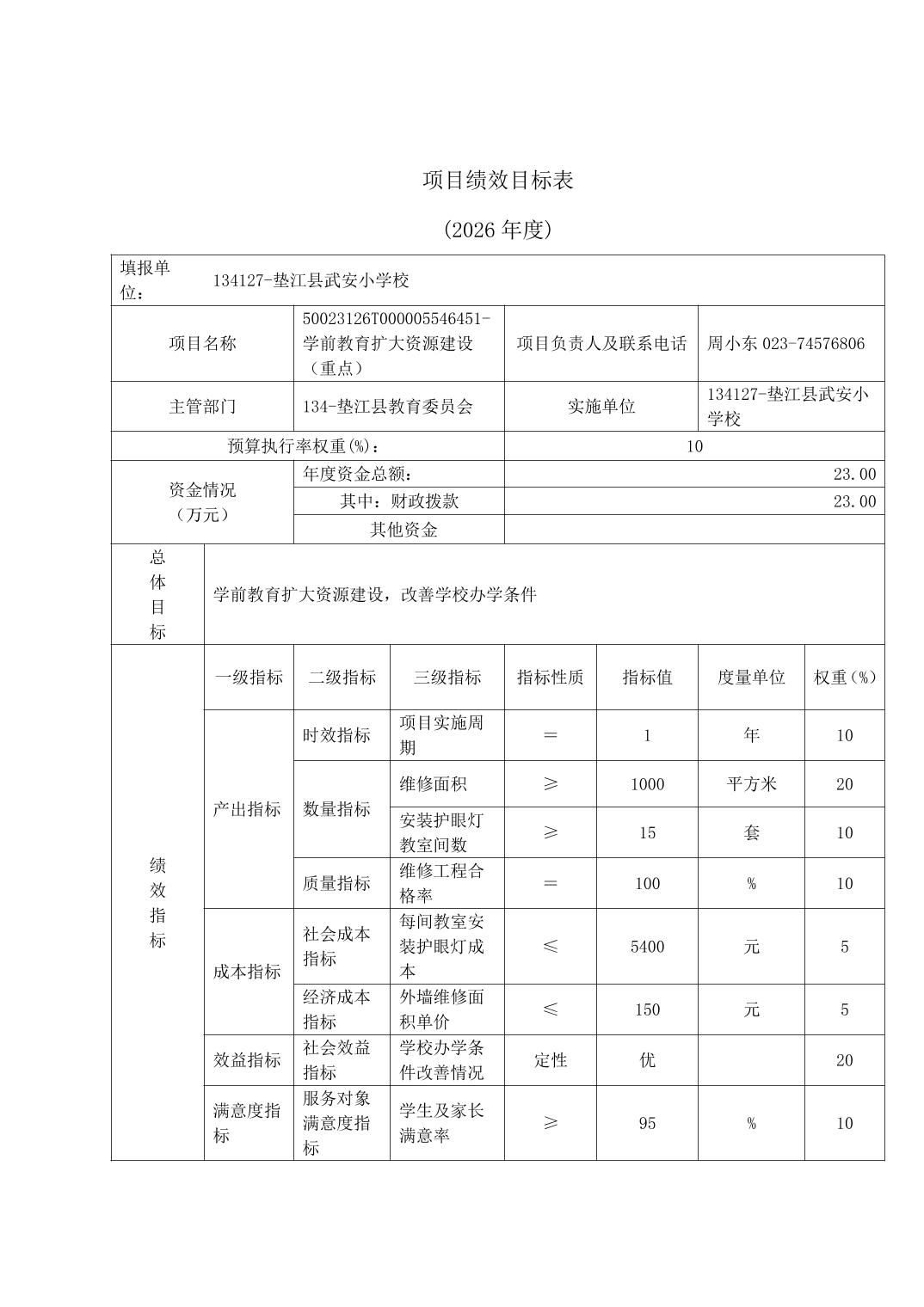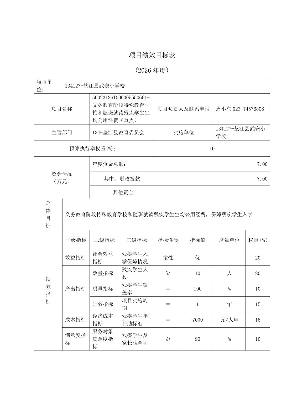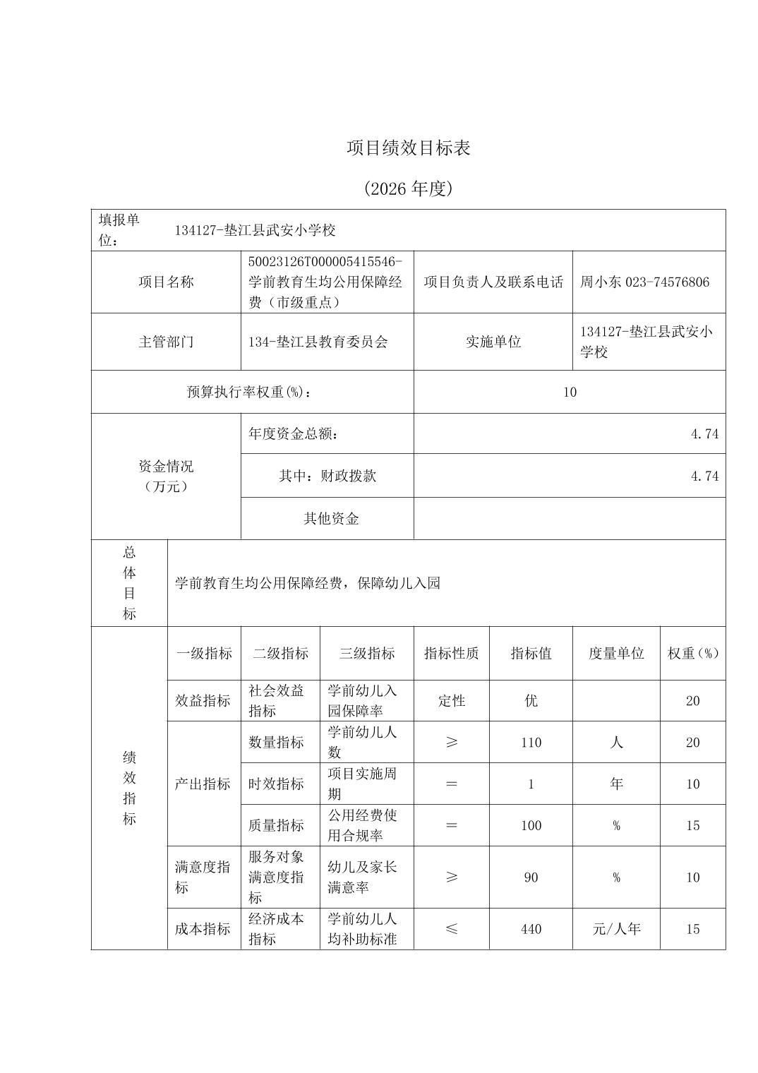 垫江县武安小学校2026年预算情况说明