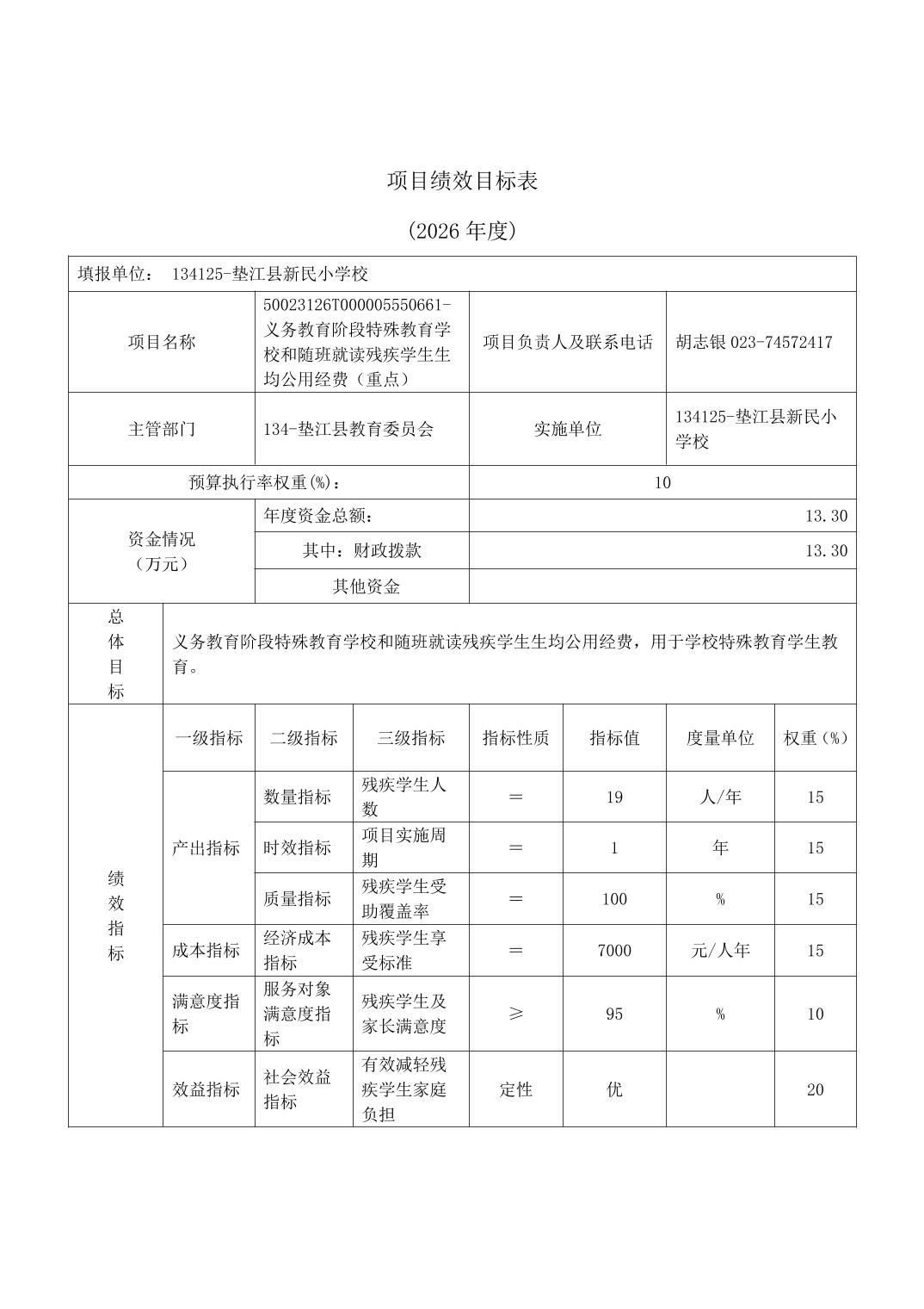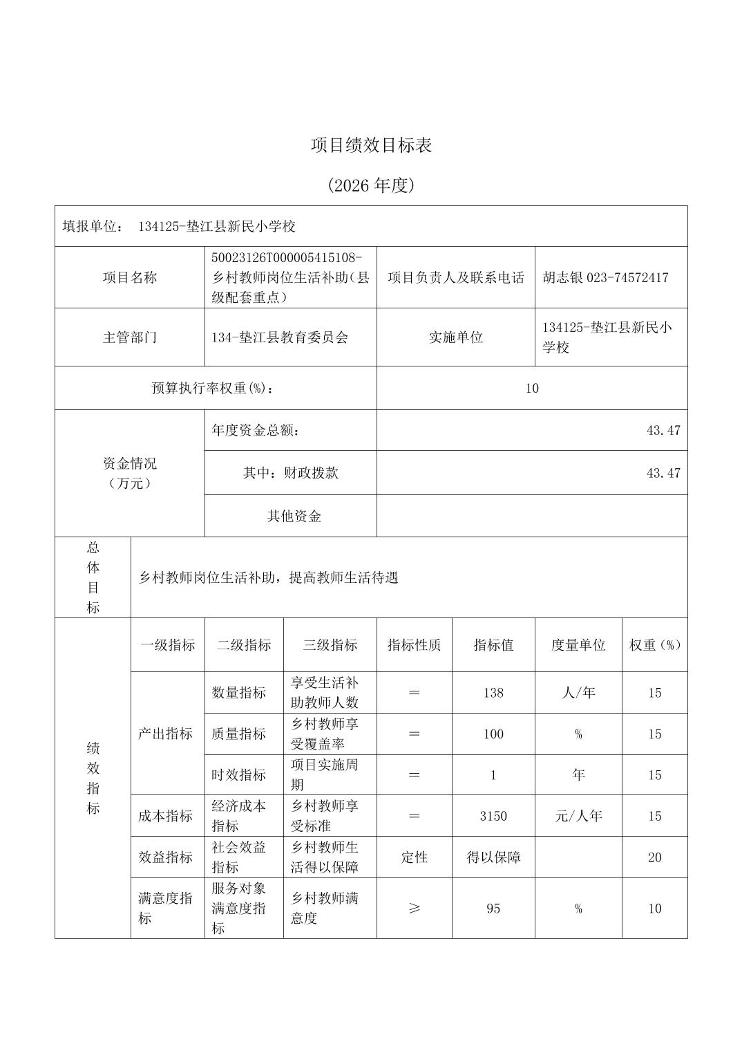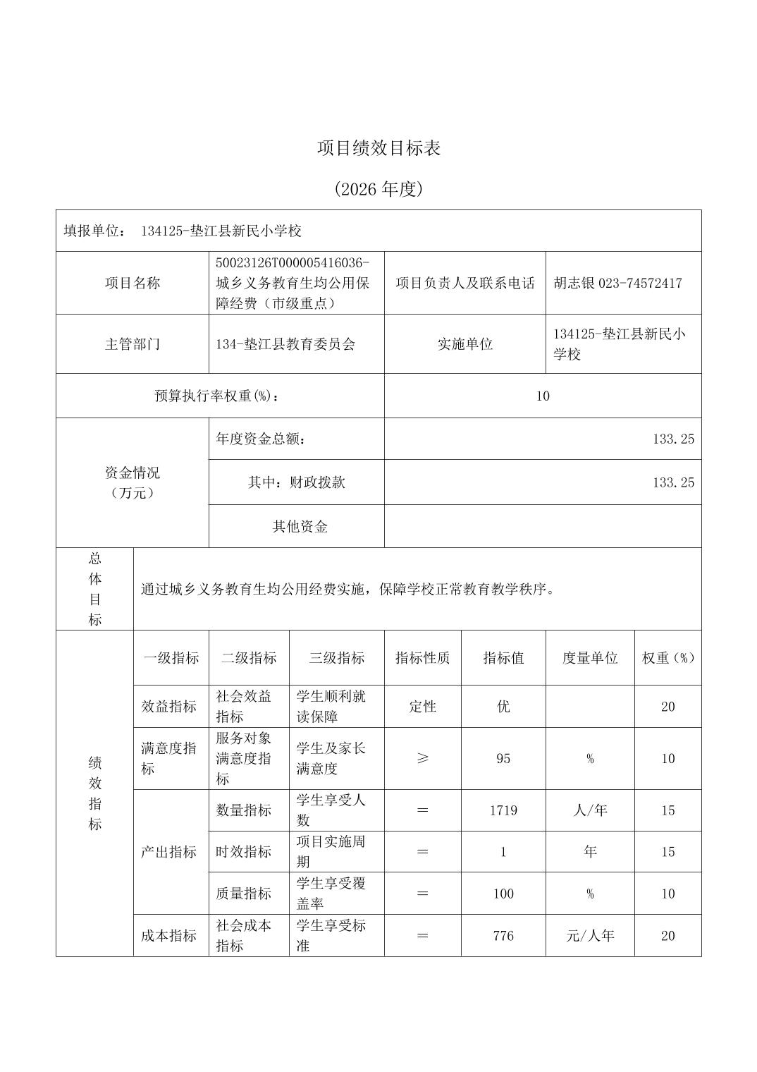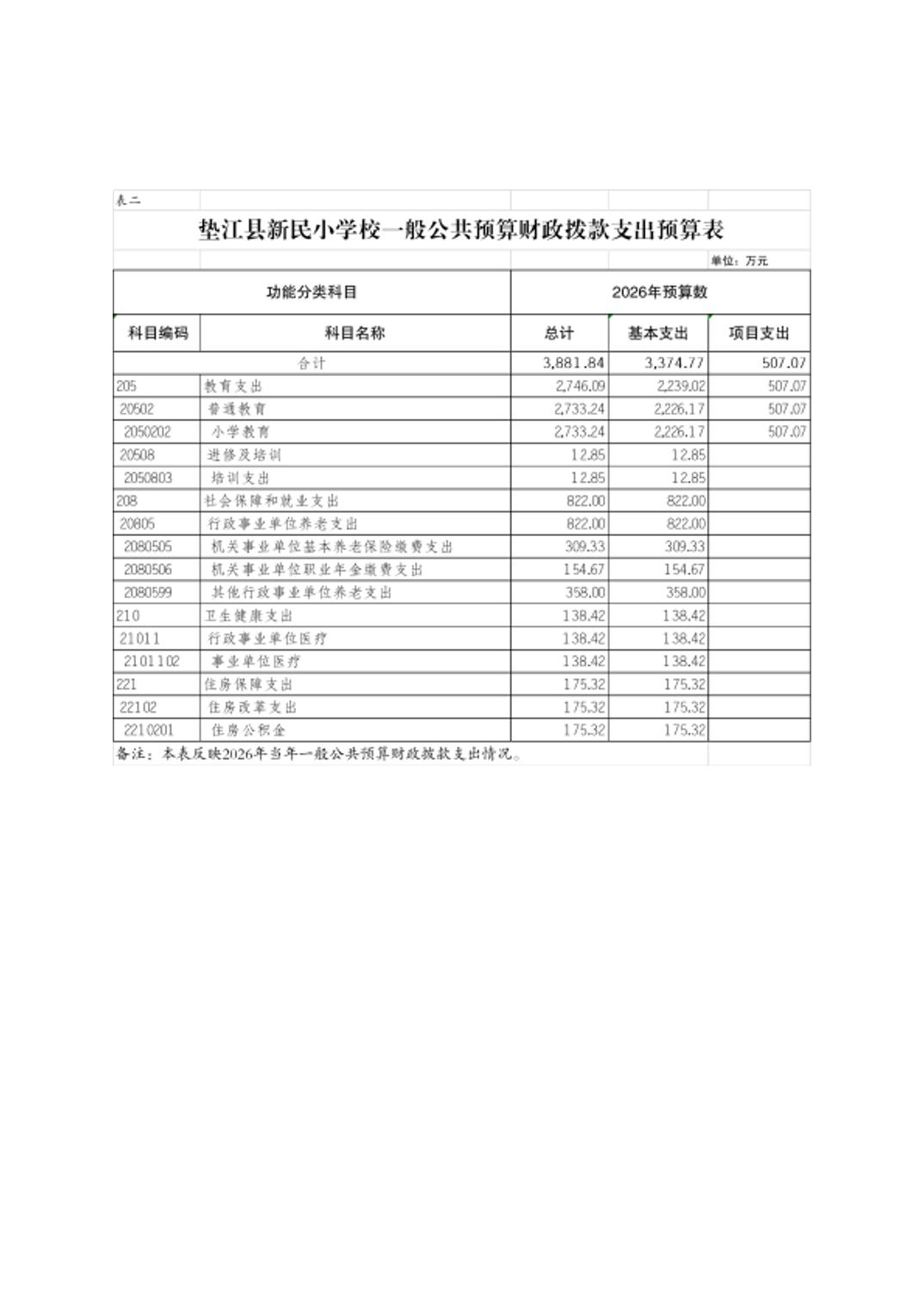 垫江县新民小学校2026年单位预算情况说明