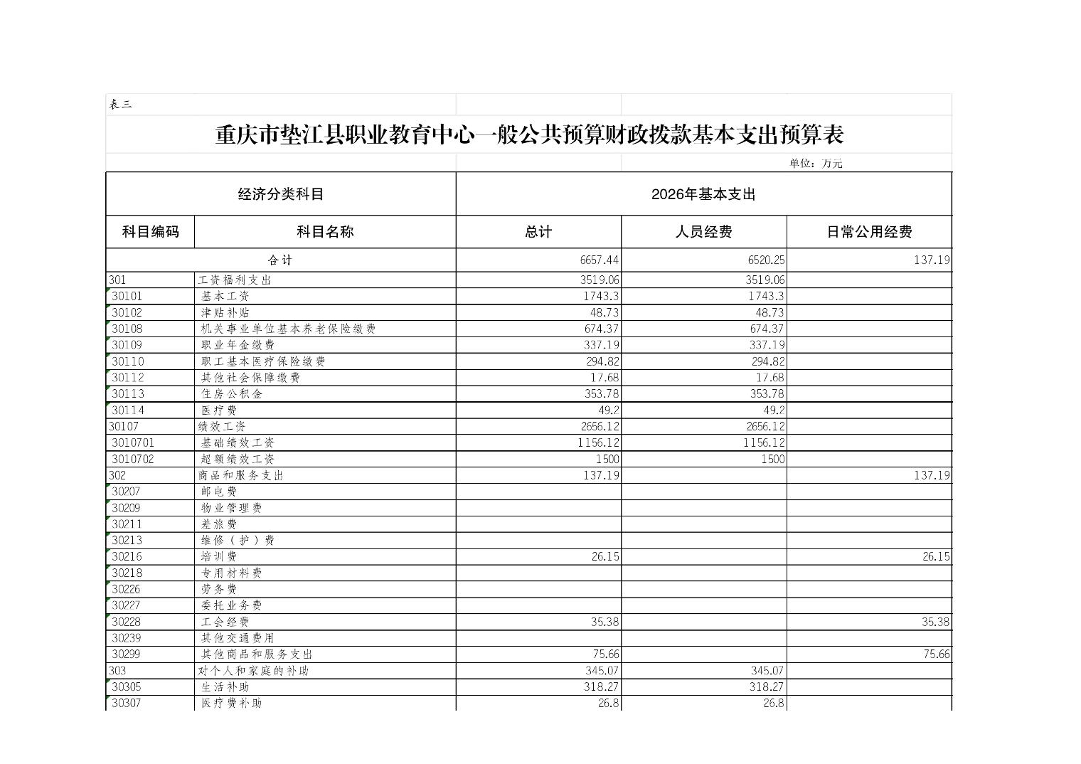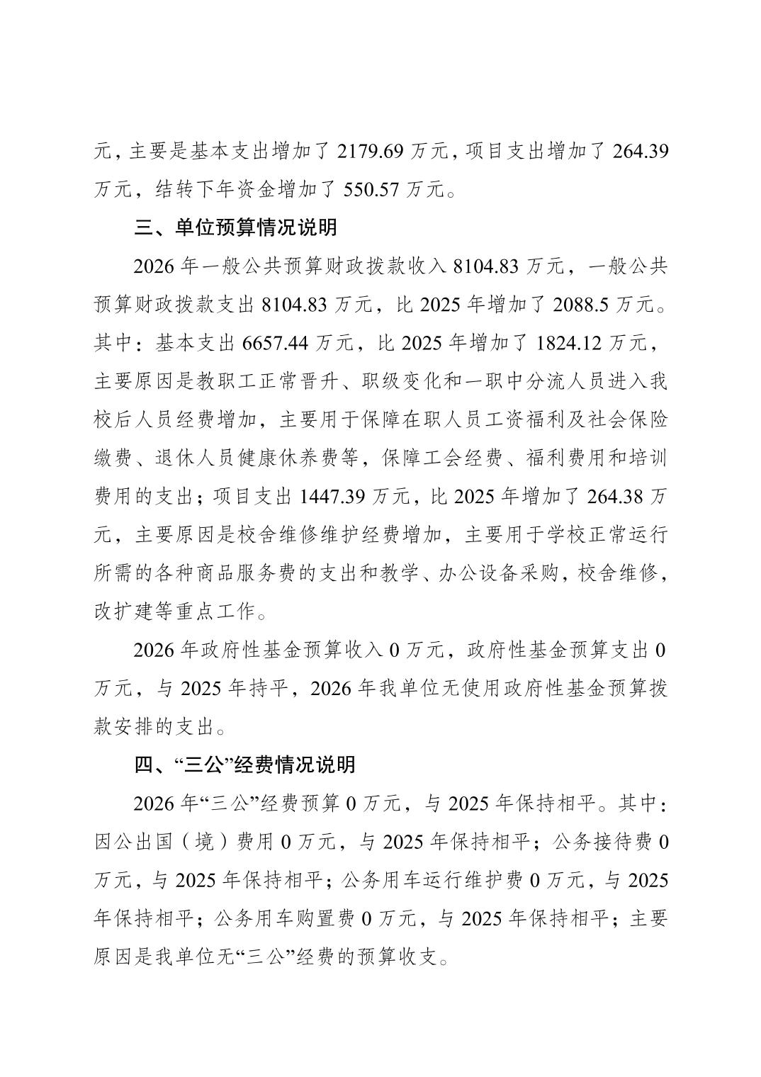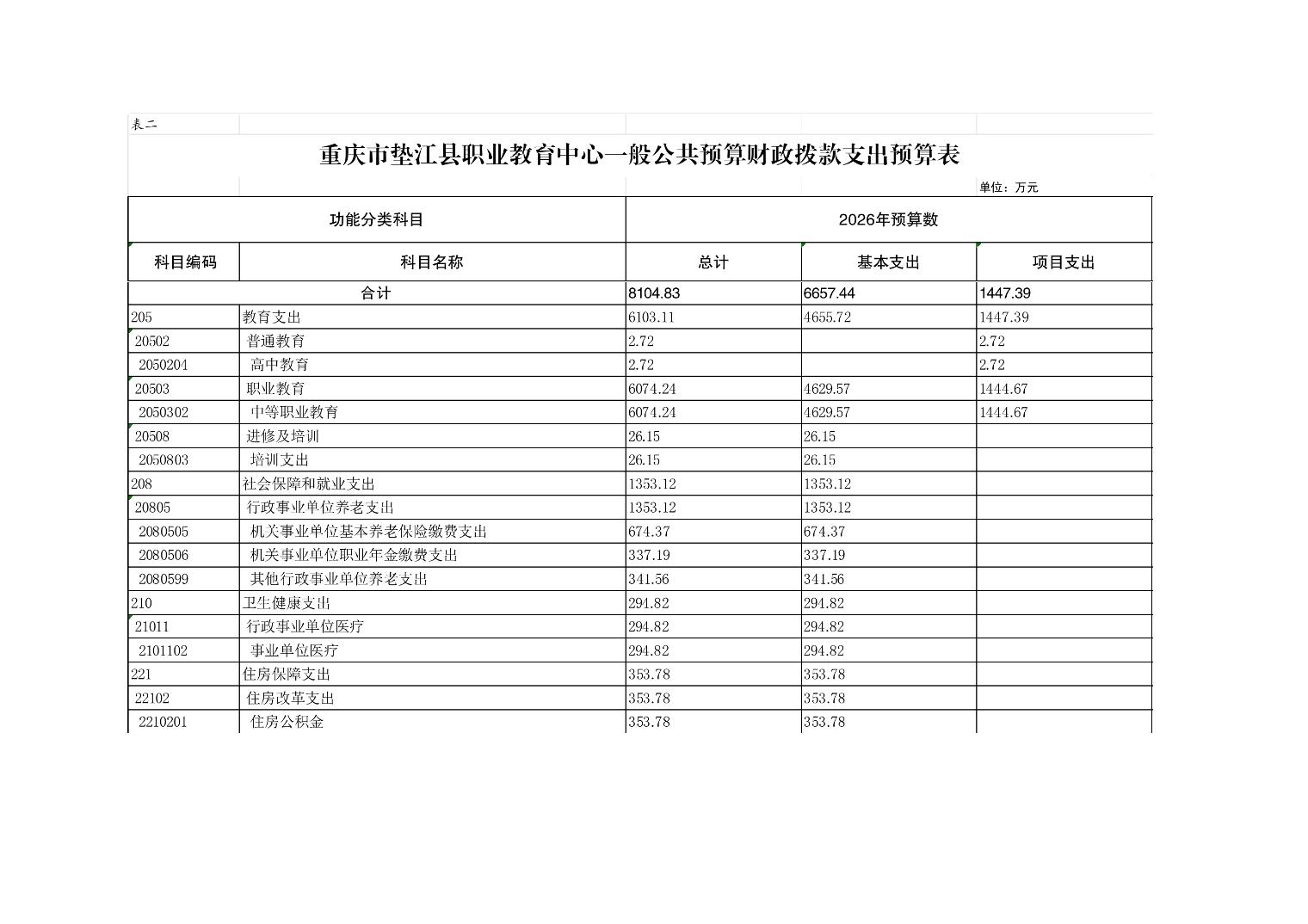 重庆市垫江县职业教育中心2026年单位预算情况说明