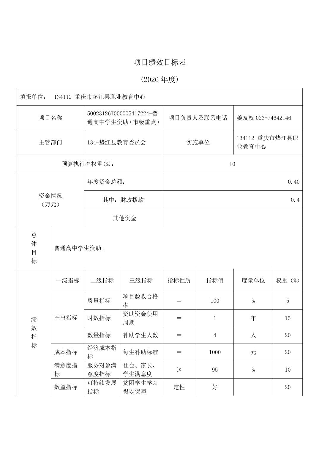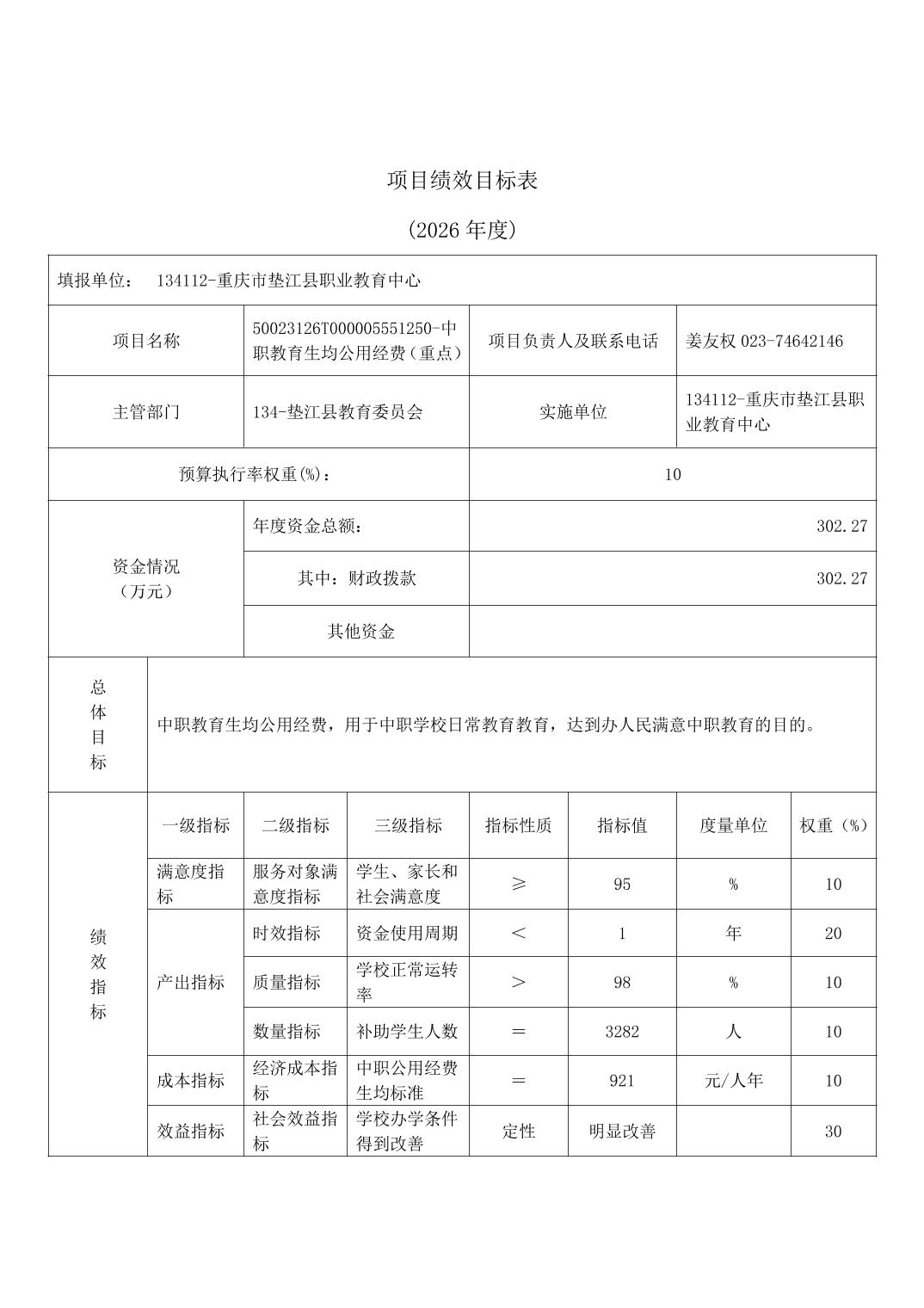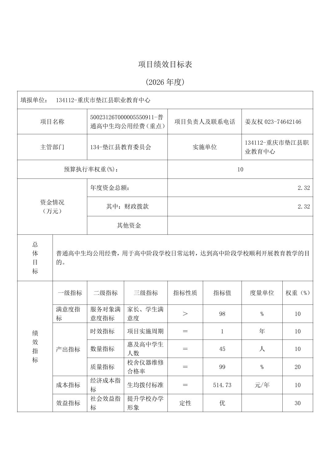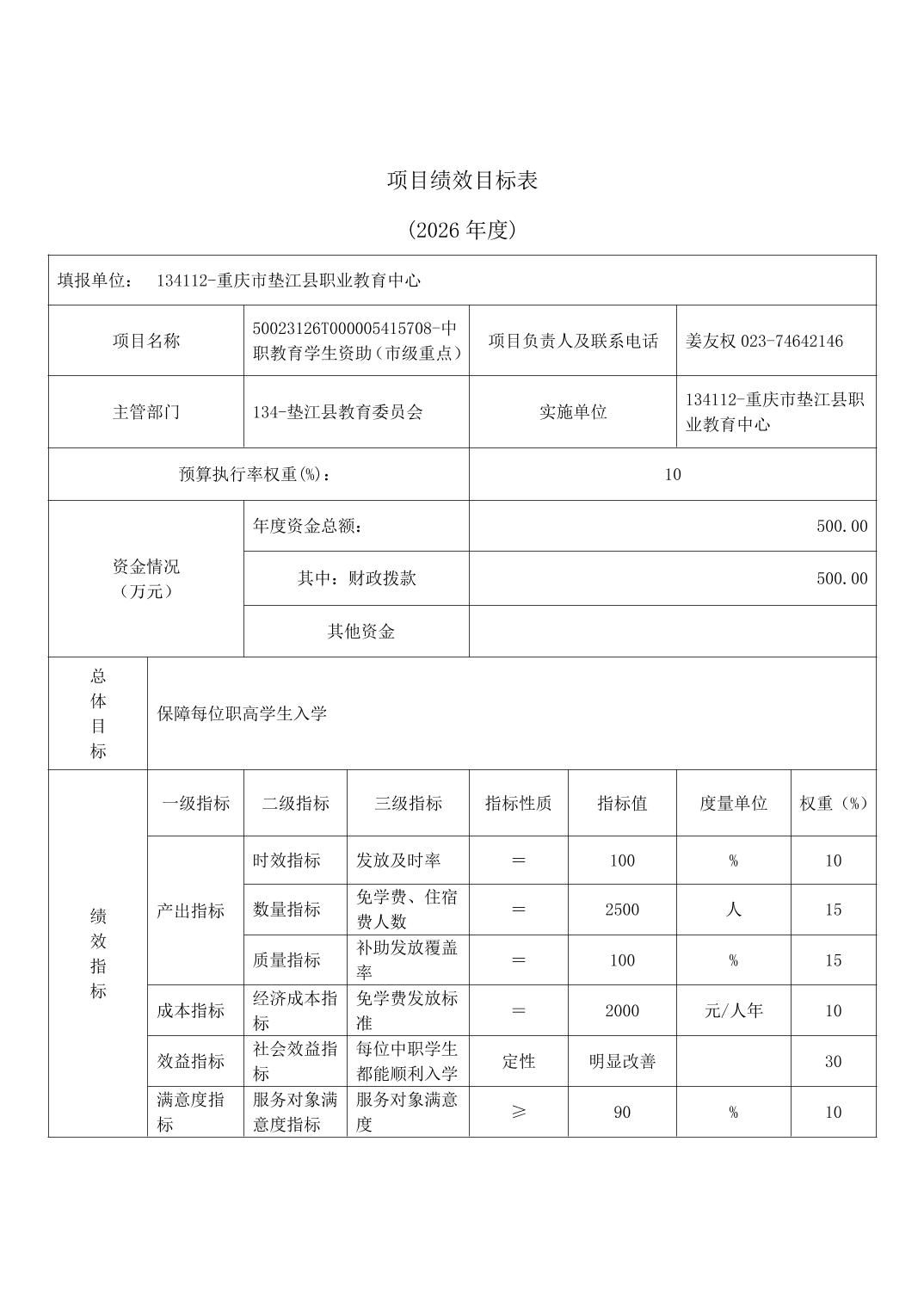 重庆市垫江县职业教育中心2026年单位预算情况说明