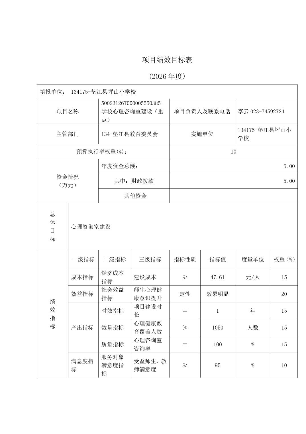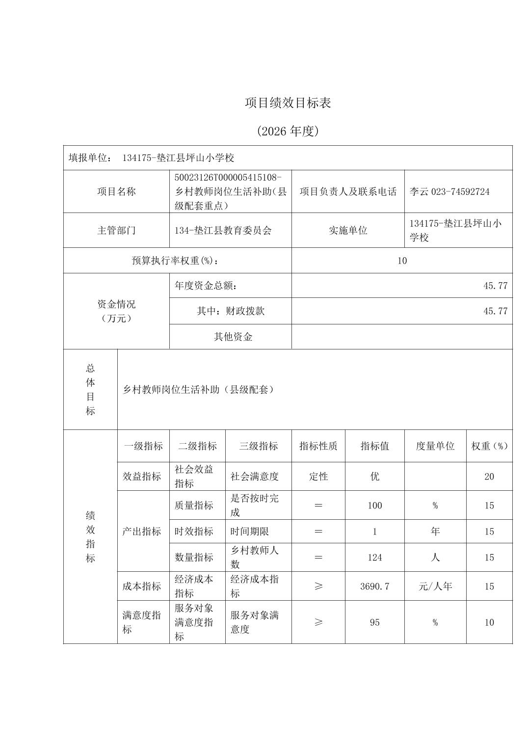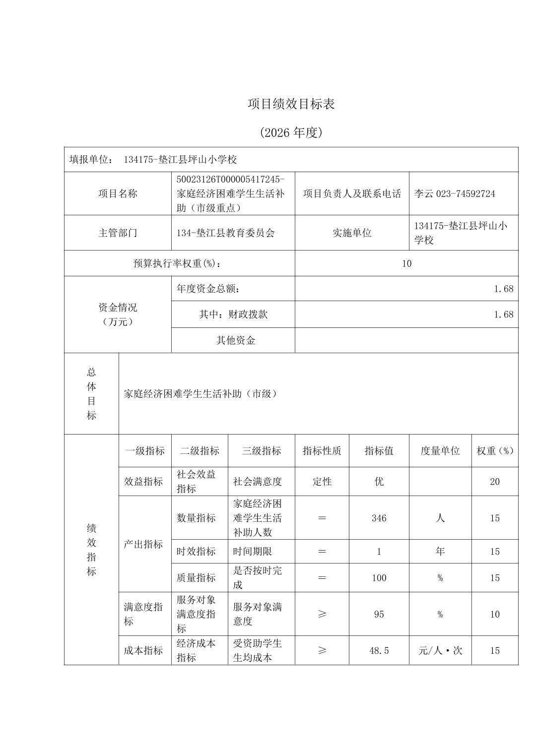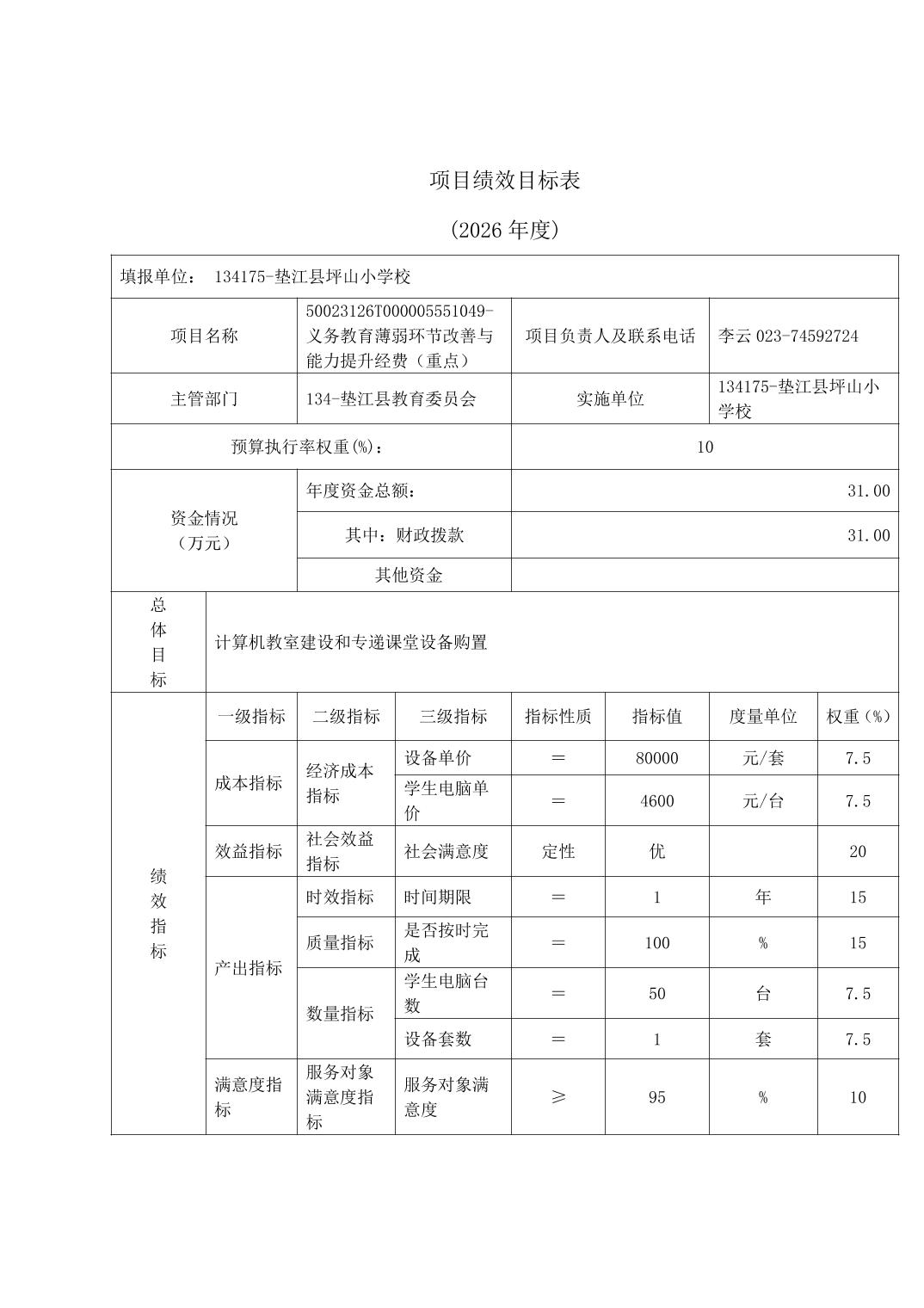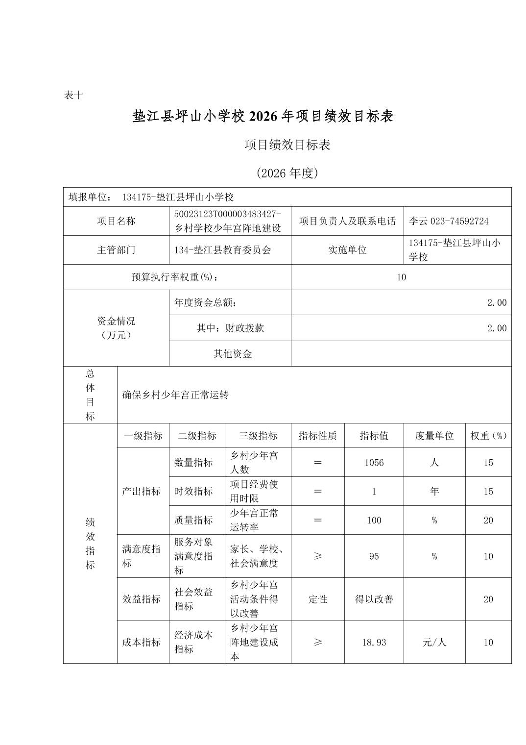垫江县坪山小学校2026年单位预算情况说明