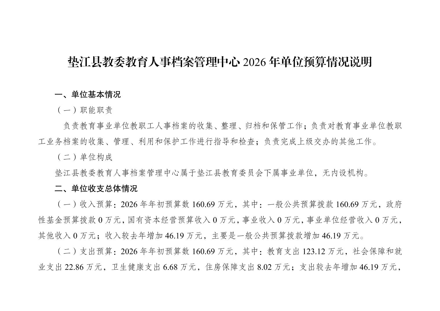 垫江县教委教育人事档案管理中心2026年单位预算情况说明.doc垫江县教委教育人事档案管理中心2026年单位预算情况说明.pdf