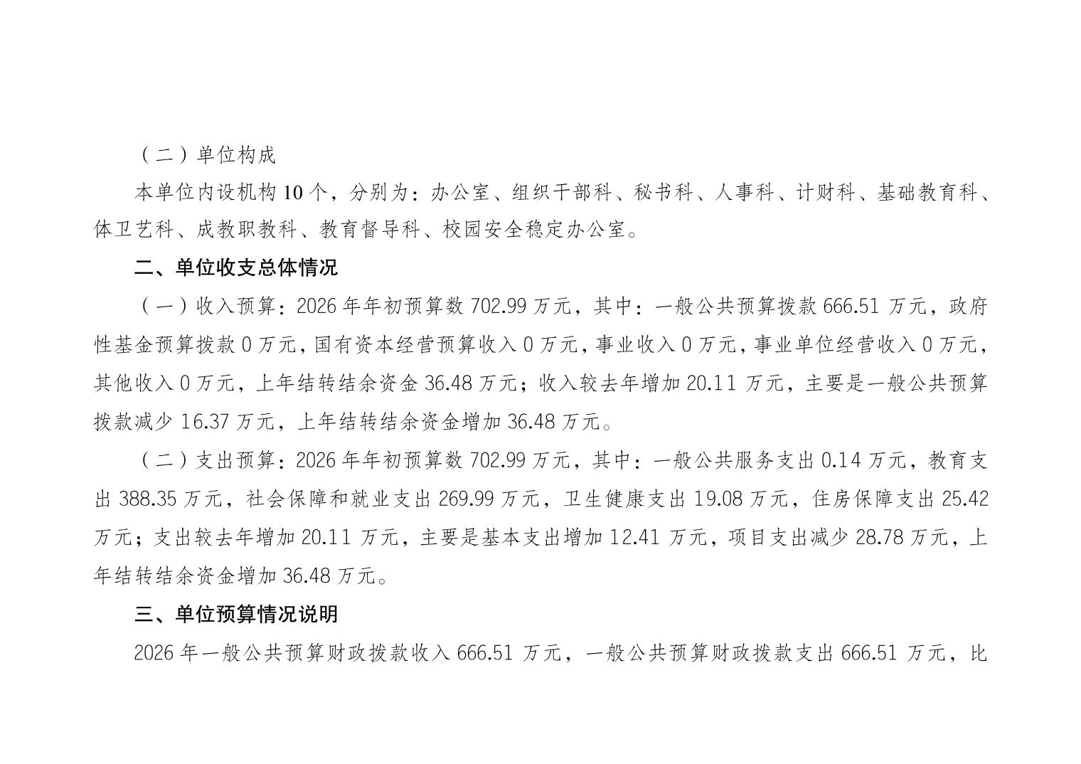 垫江县教育委员会(本级)2026年单位预算情况说明