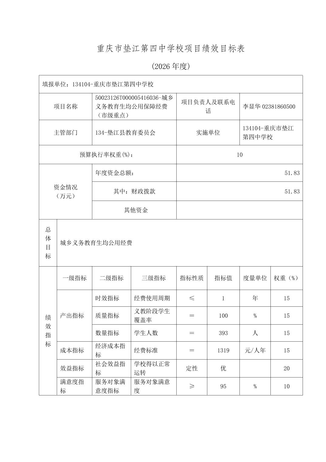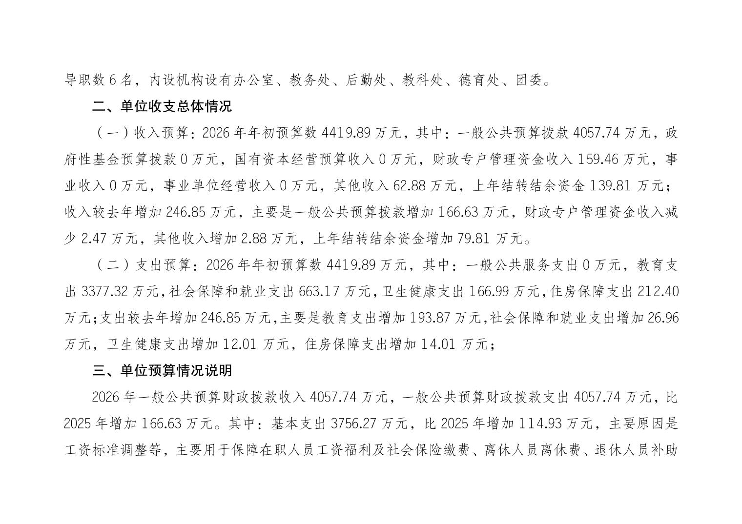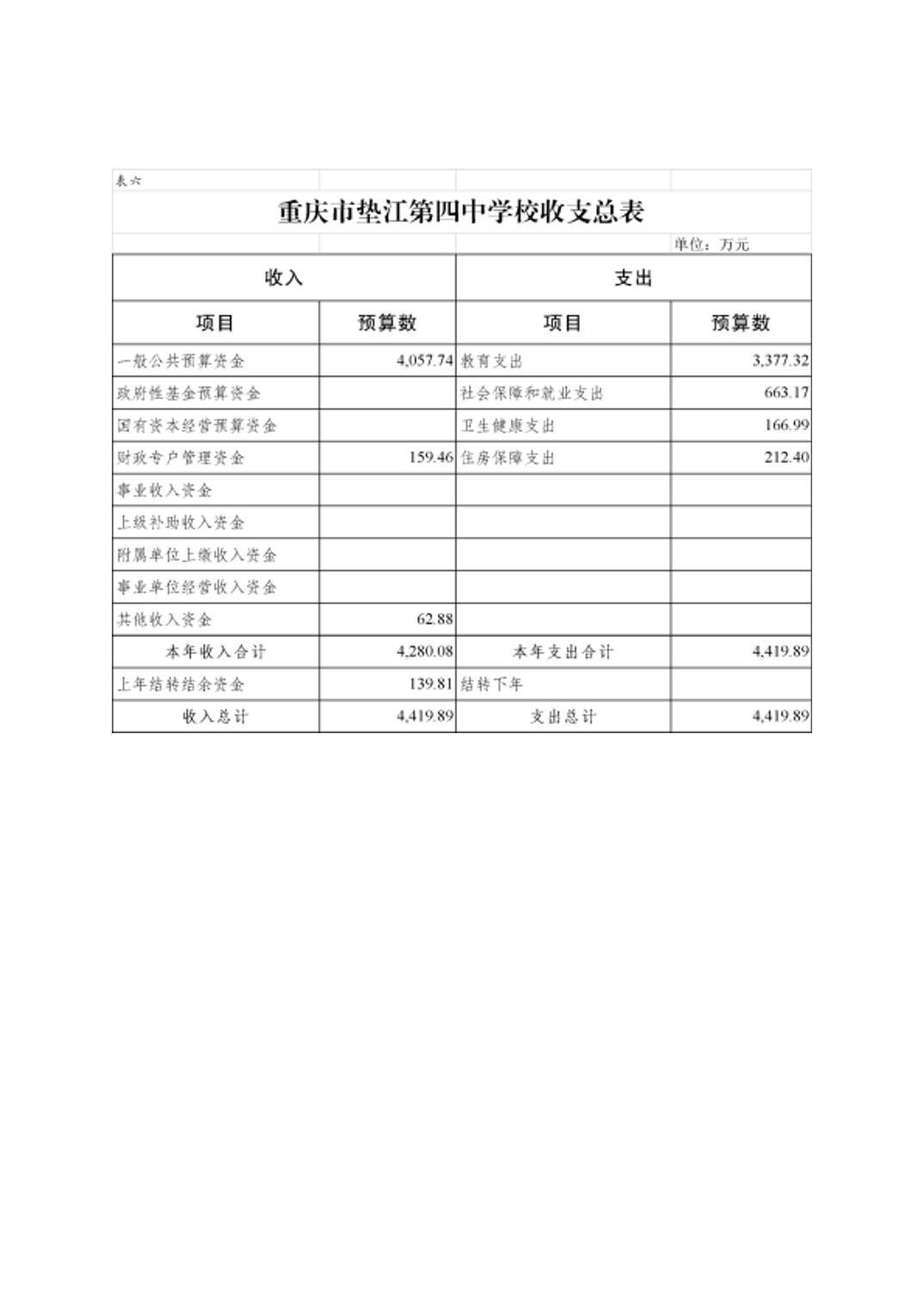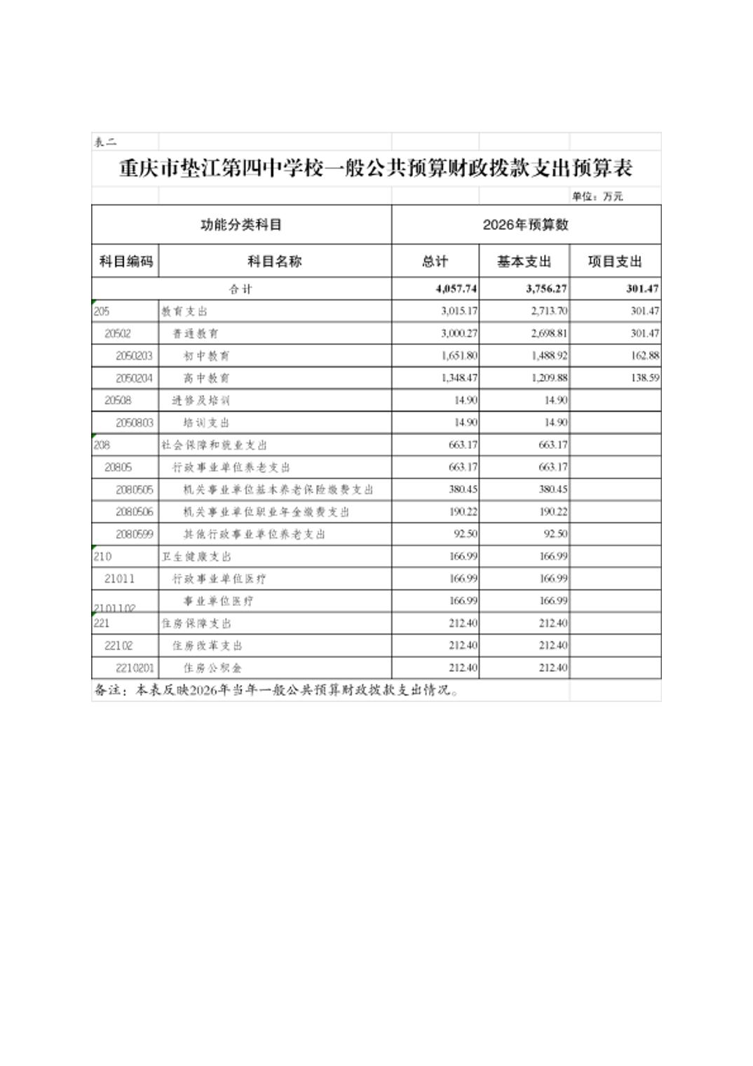重庆市垫江第四中学校2026年单位预算情况说明