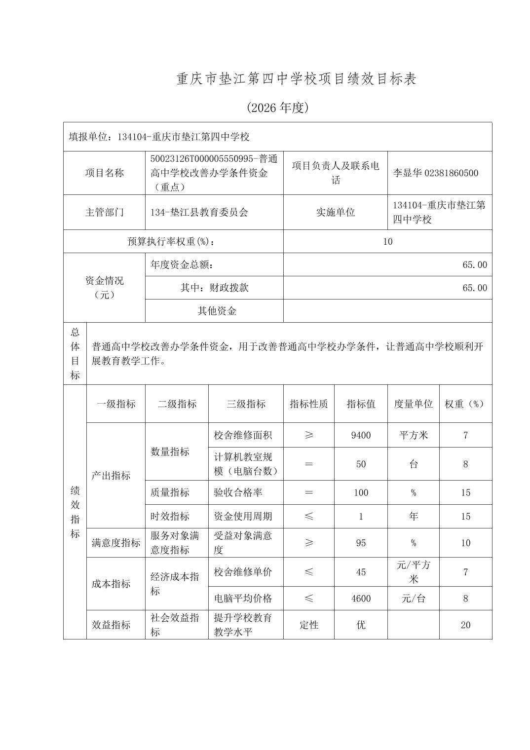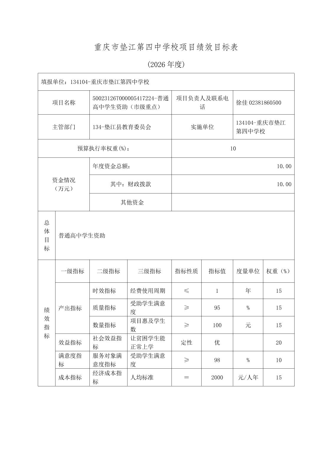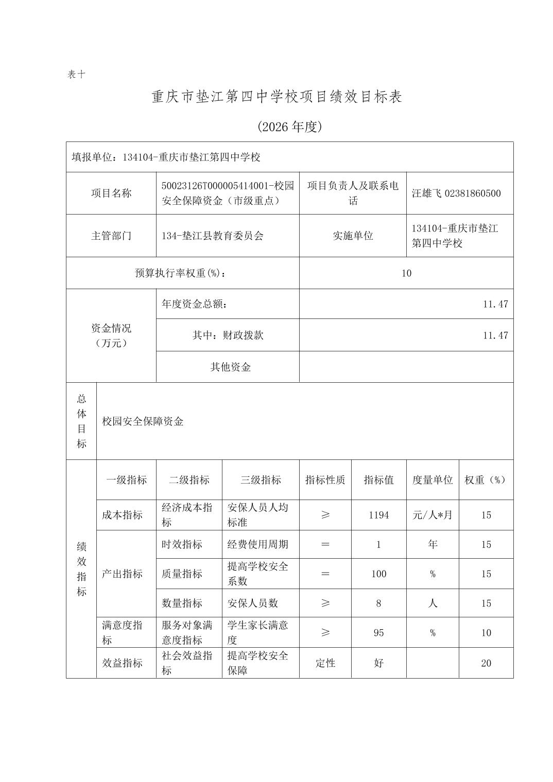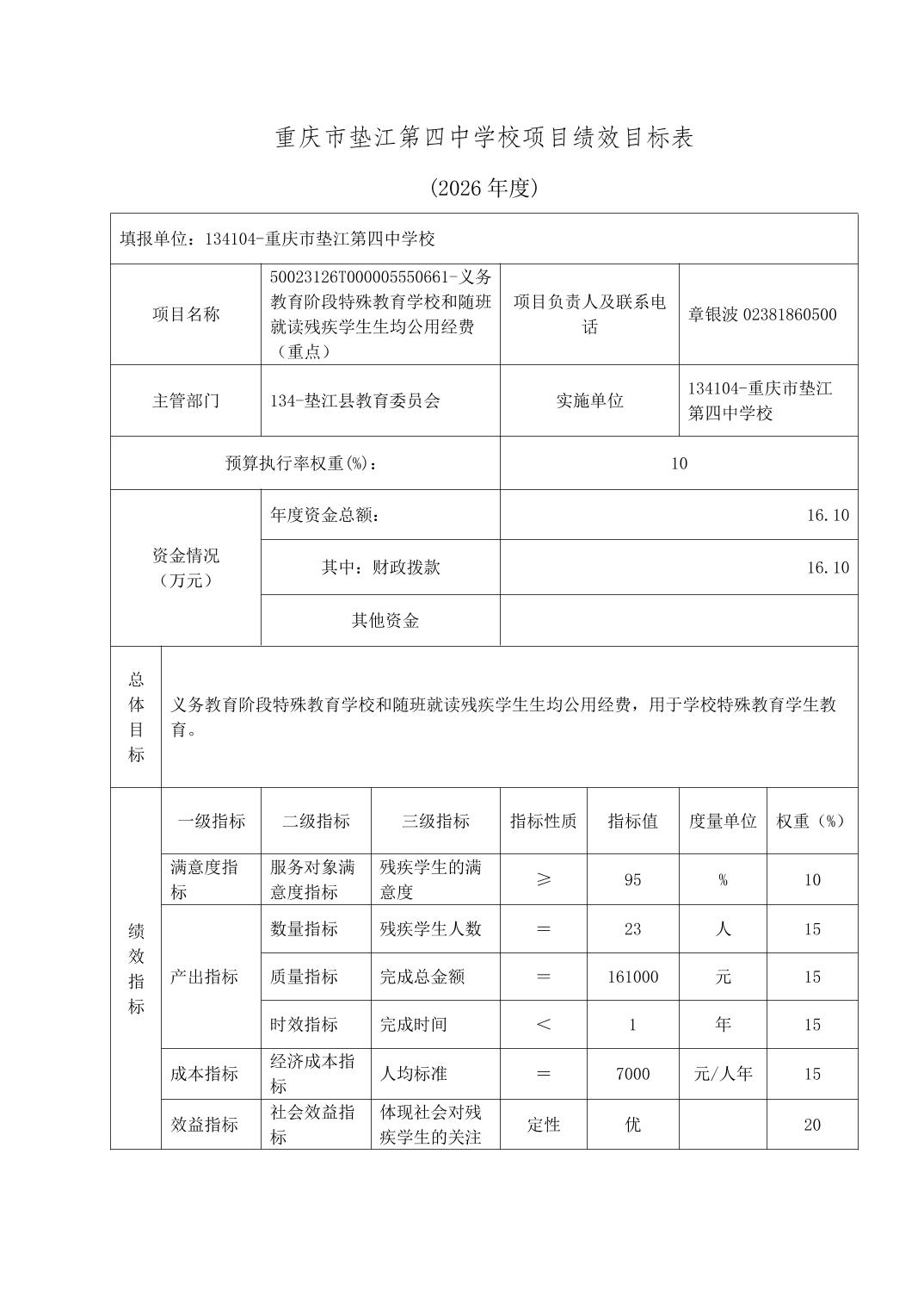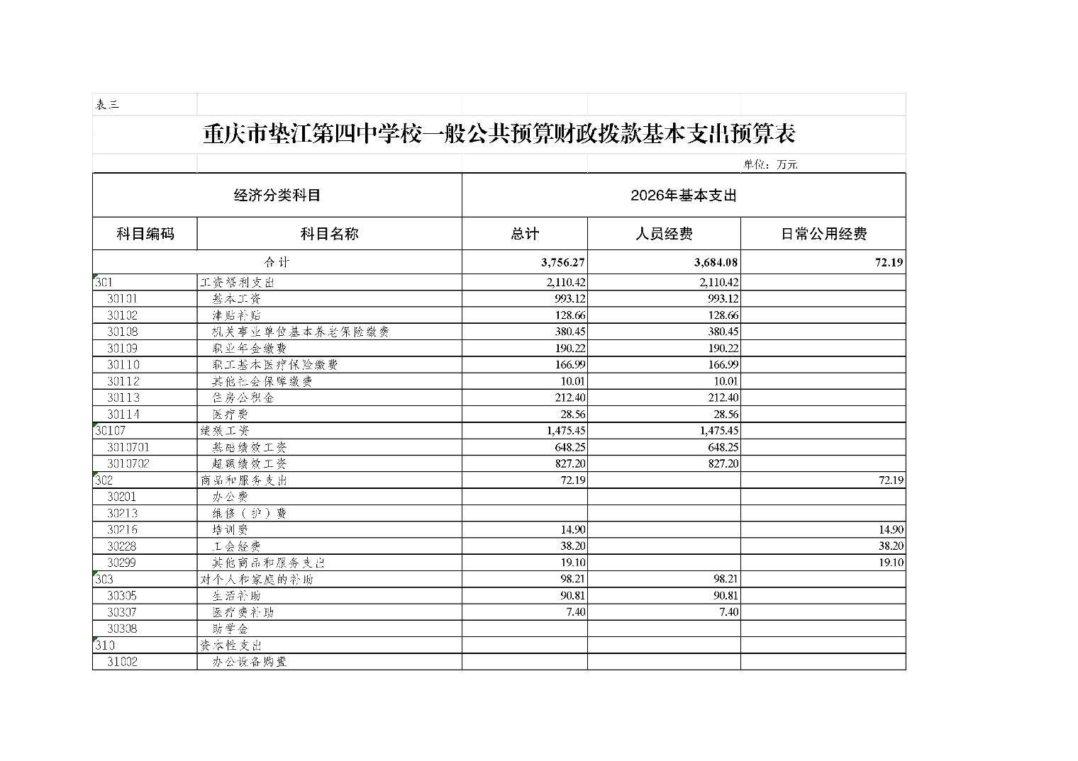 重庆市垫江第四中学校2026年单位预算情况说明