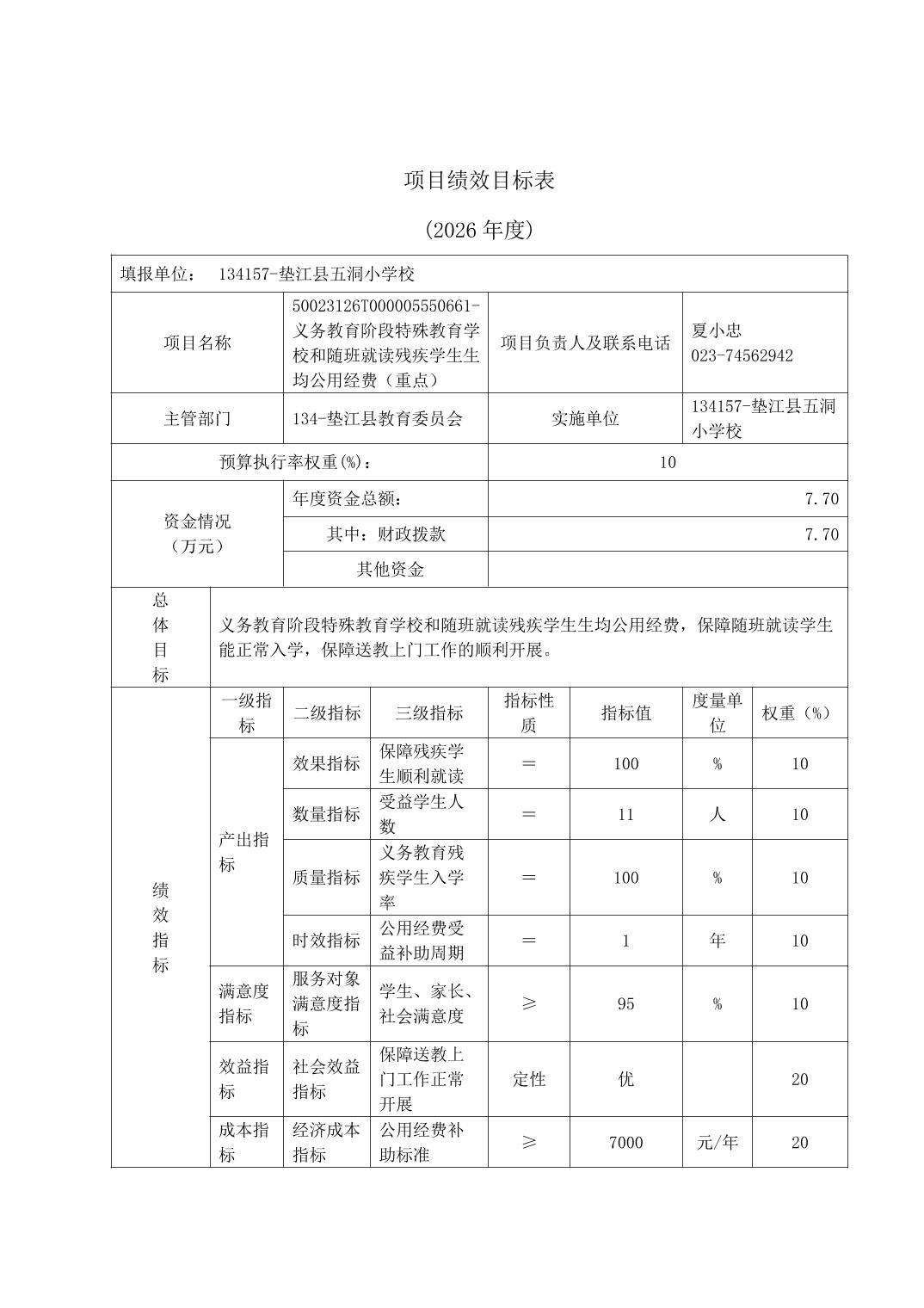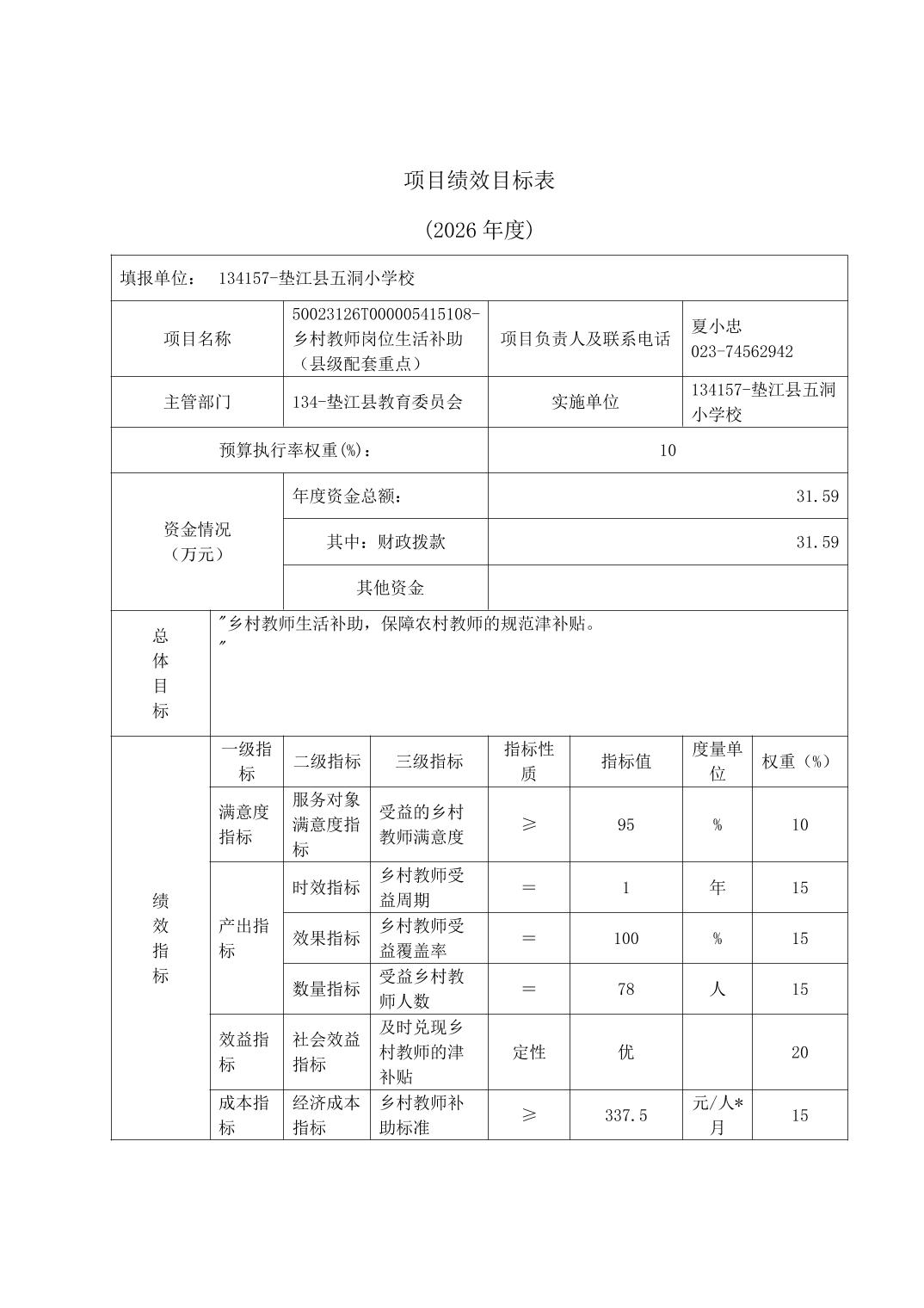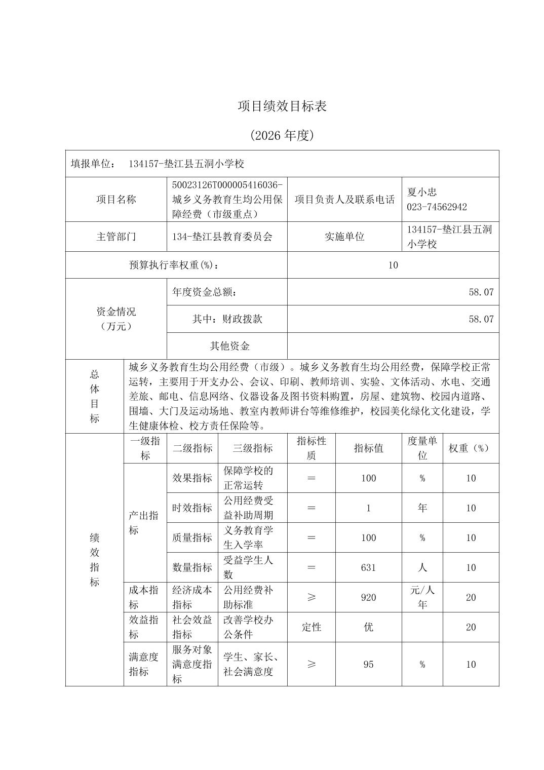 垫江县五洞小学校2026年单位预算情况说明