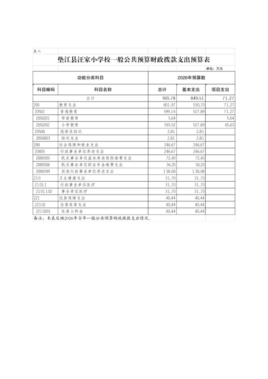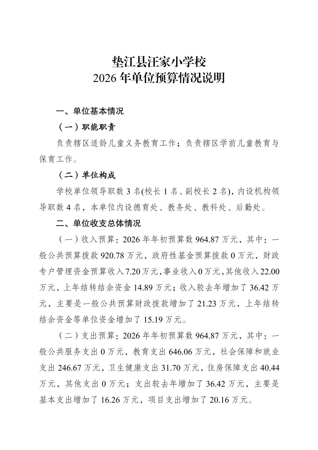 垫江县汪家小学校2026年单位预算情况说明.docx垫江县汪家小学校2026年单位预算情况说明.pdf