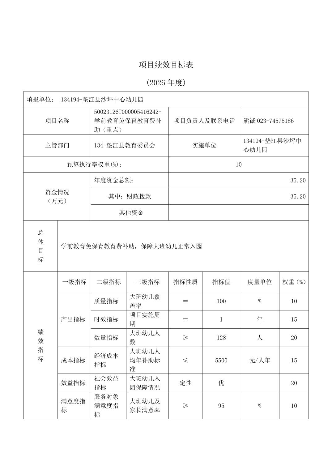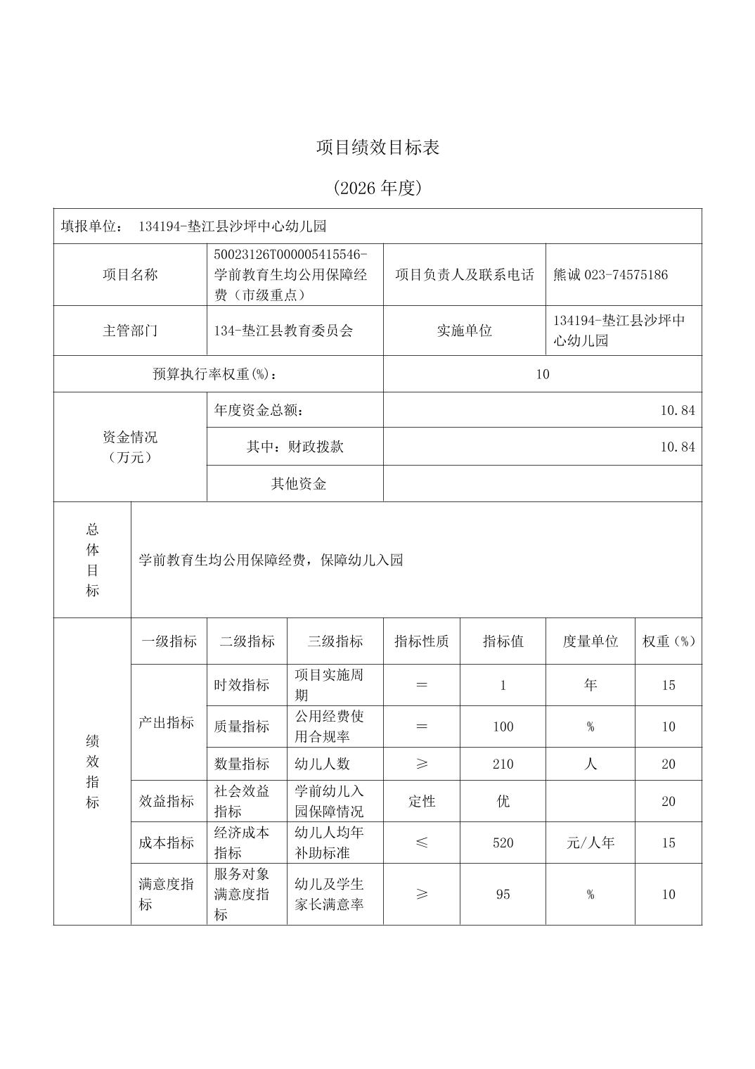 垫江县沙坪中心幼儿园2026年单位预算情况说明