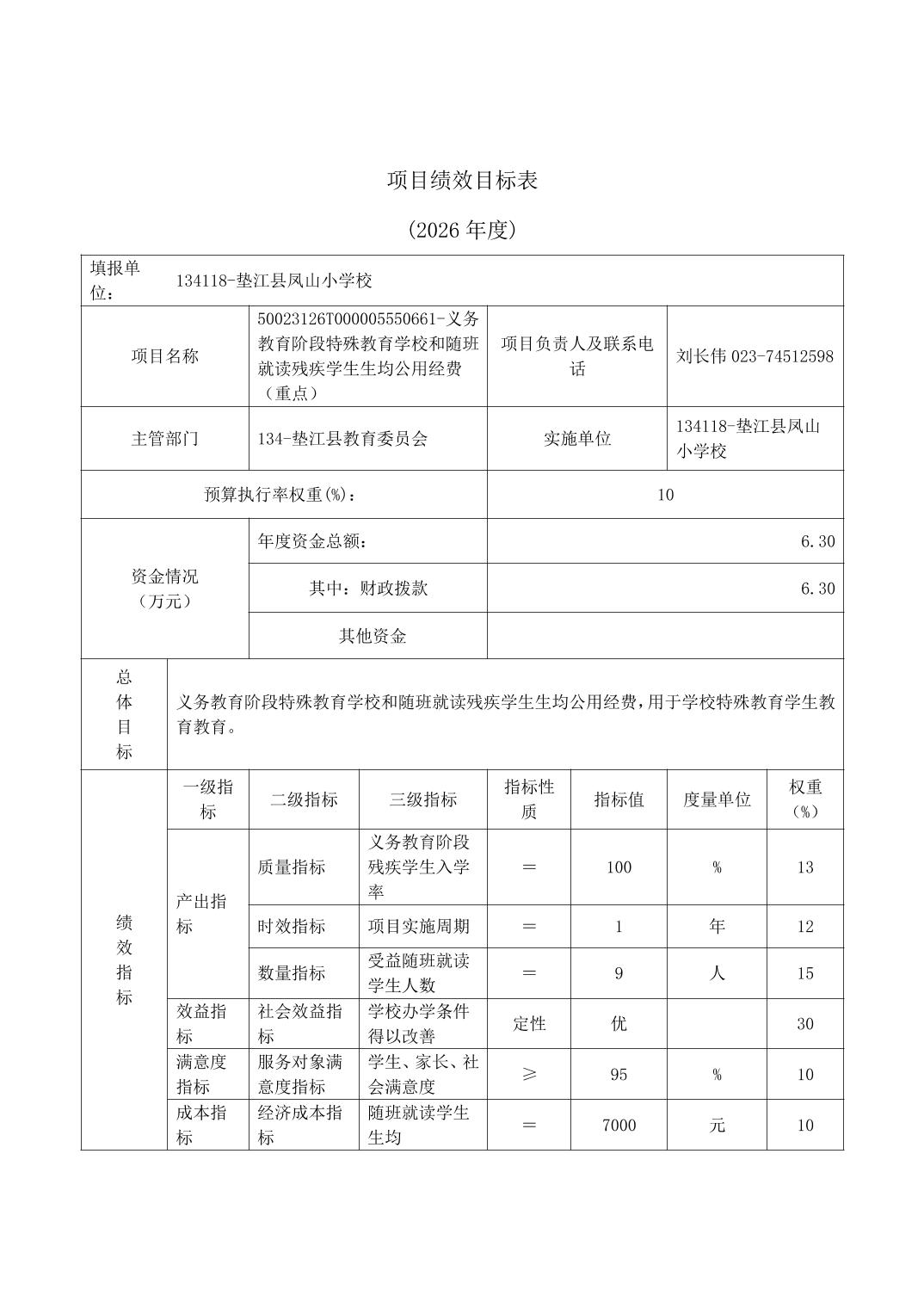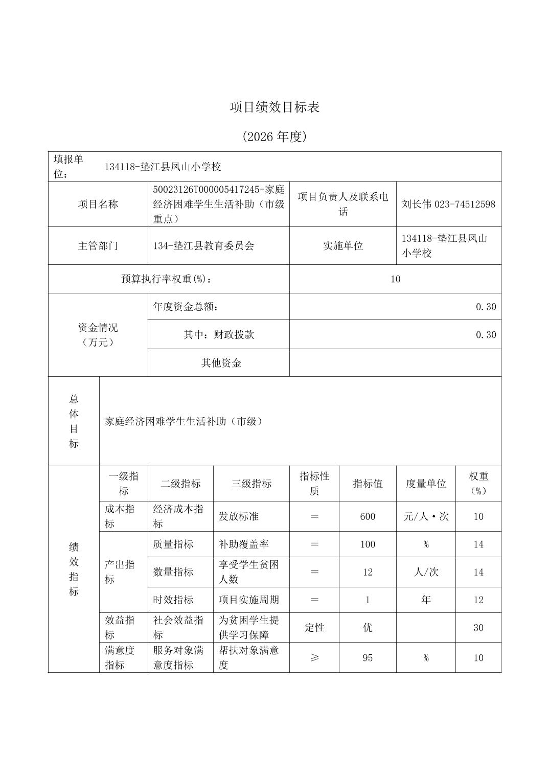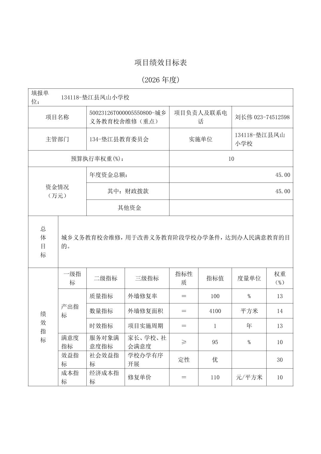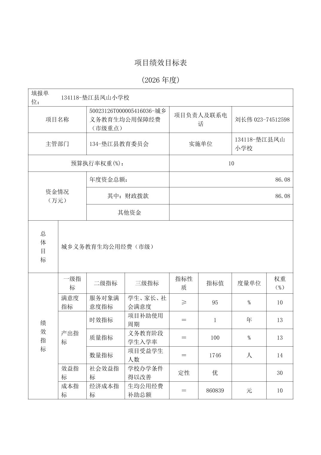垫江县凤山小学校2026年单位预算情况说明