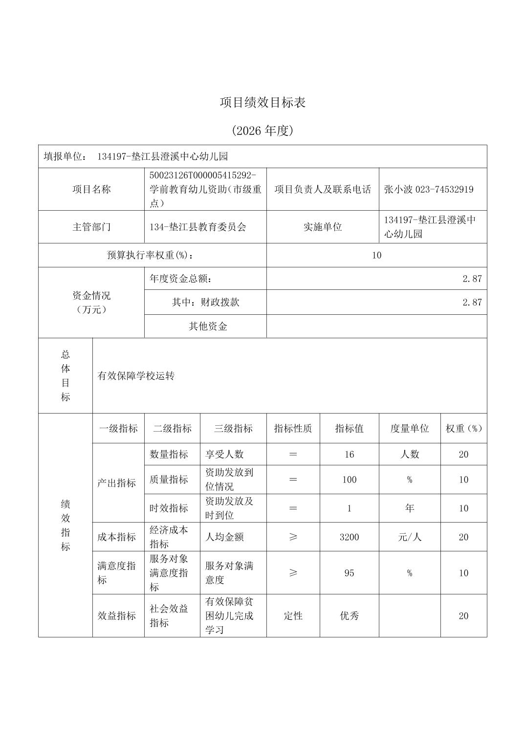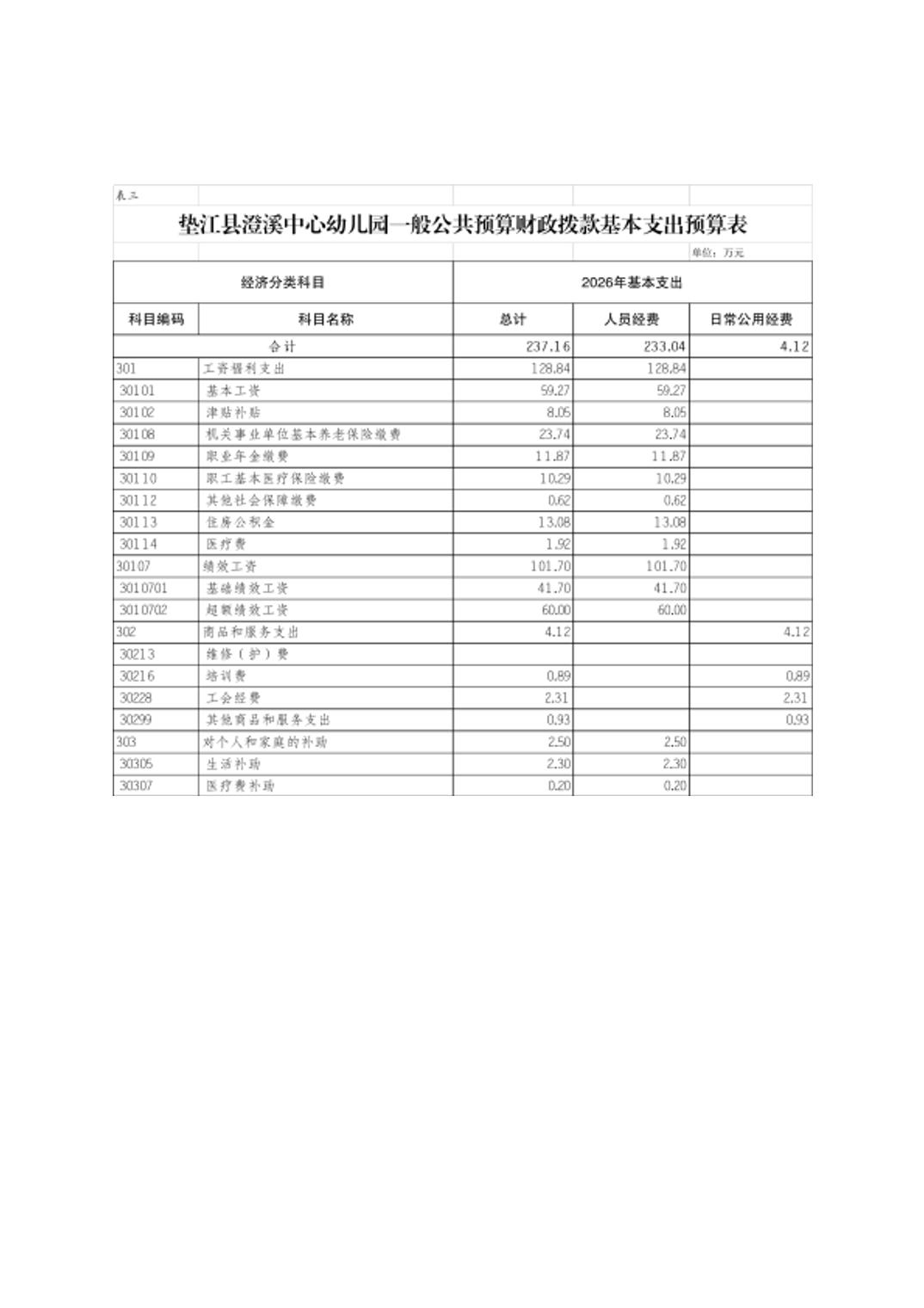 垫江县澄溪中心幼儿园2026年单位预算情况说明