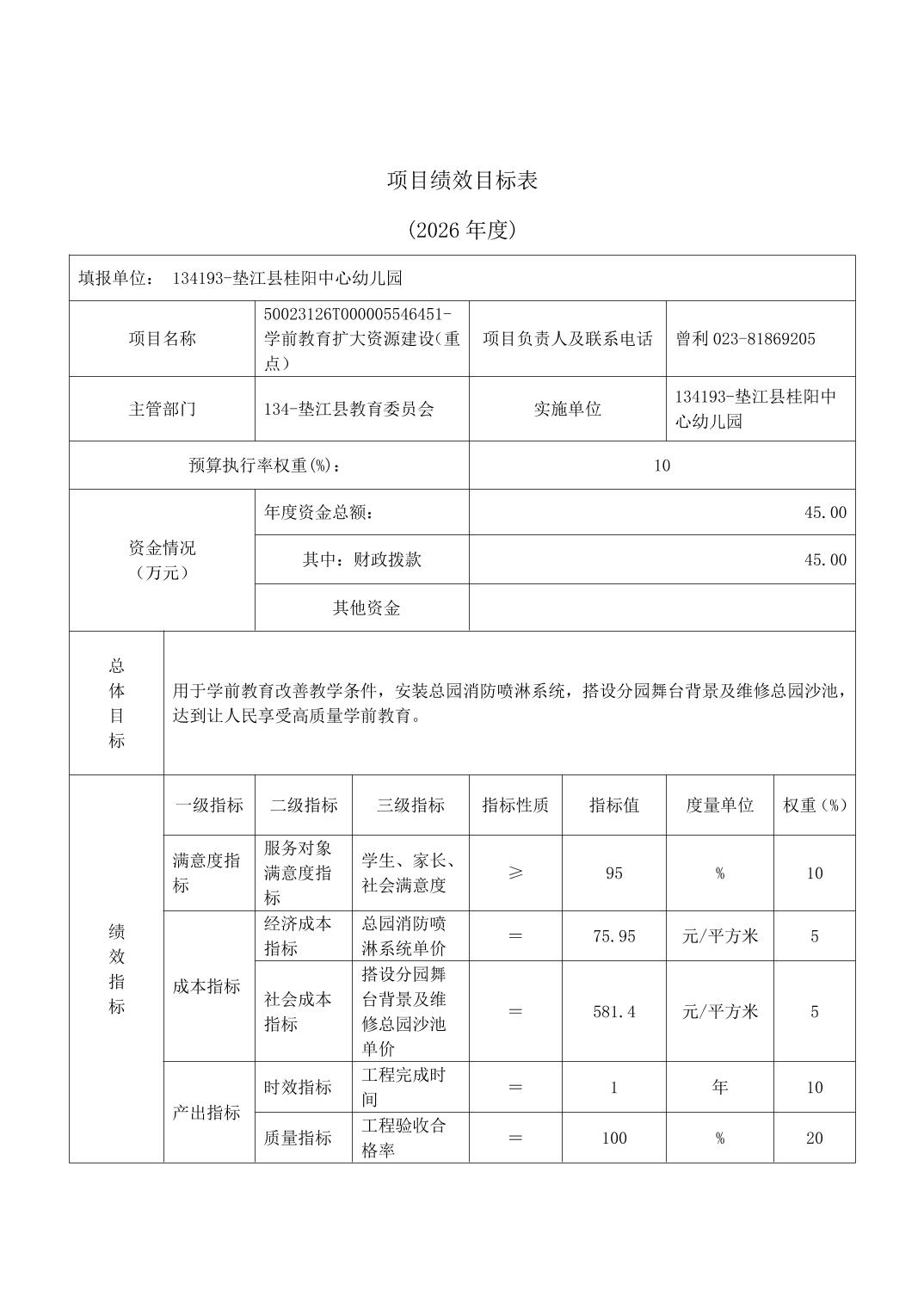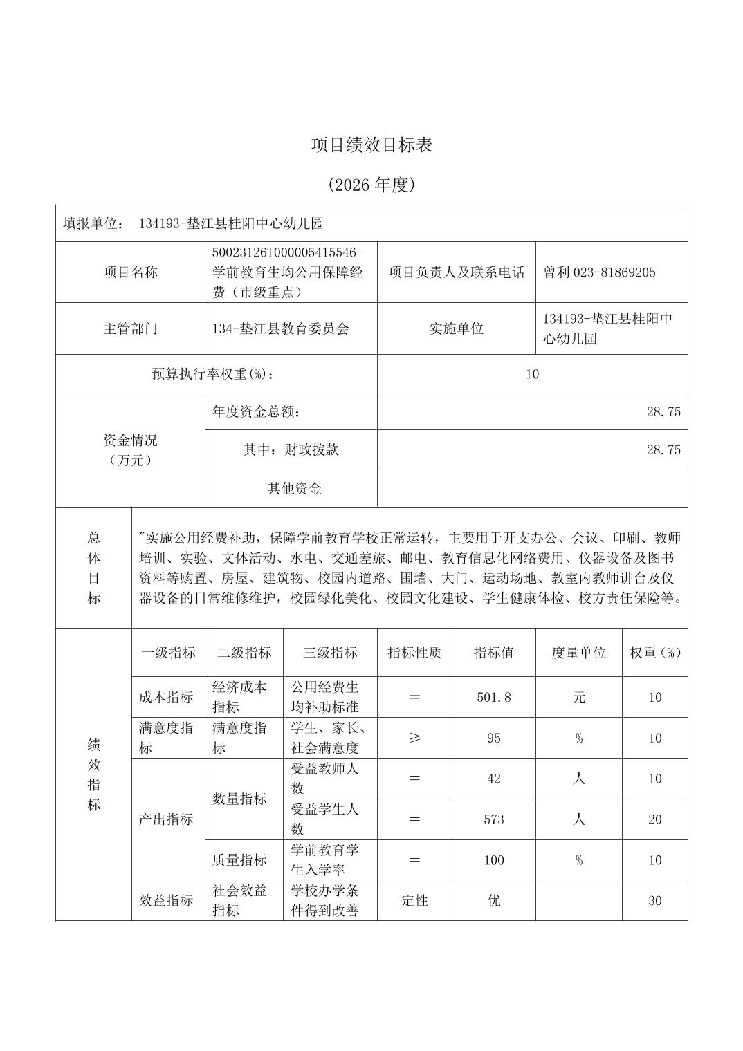 垫江县桂阳中心幼儿园2026年单位预算情况说明