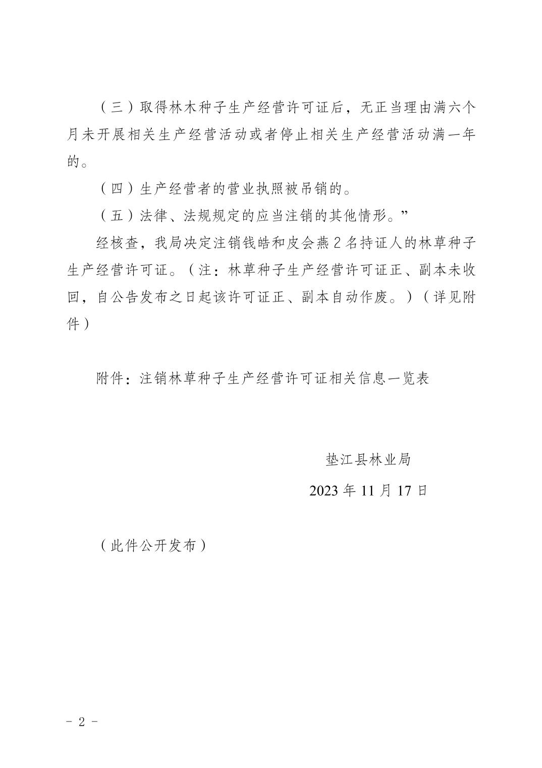 垫江县林业局林草种子生产经营许可证注销公告.pdf