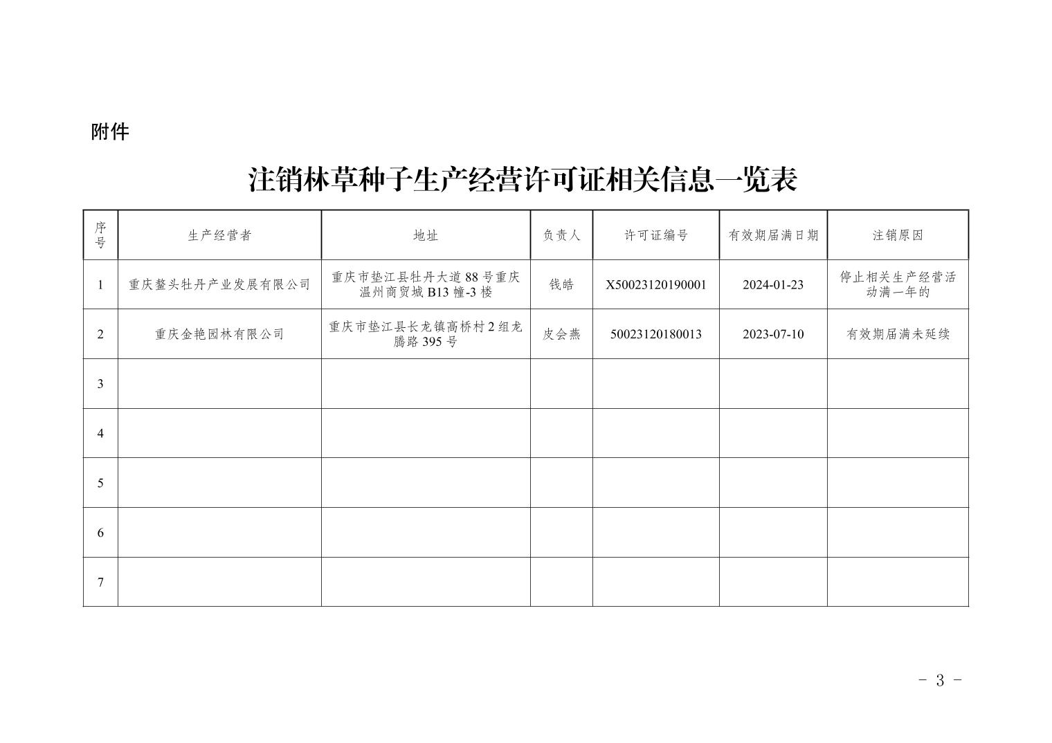 垫江县林业局林草种子生产经营许可证注销公告