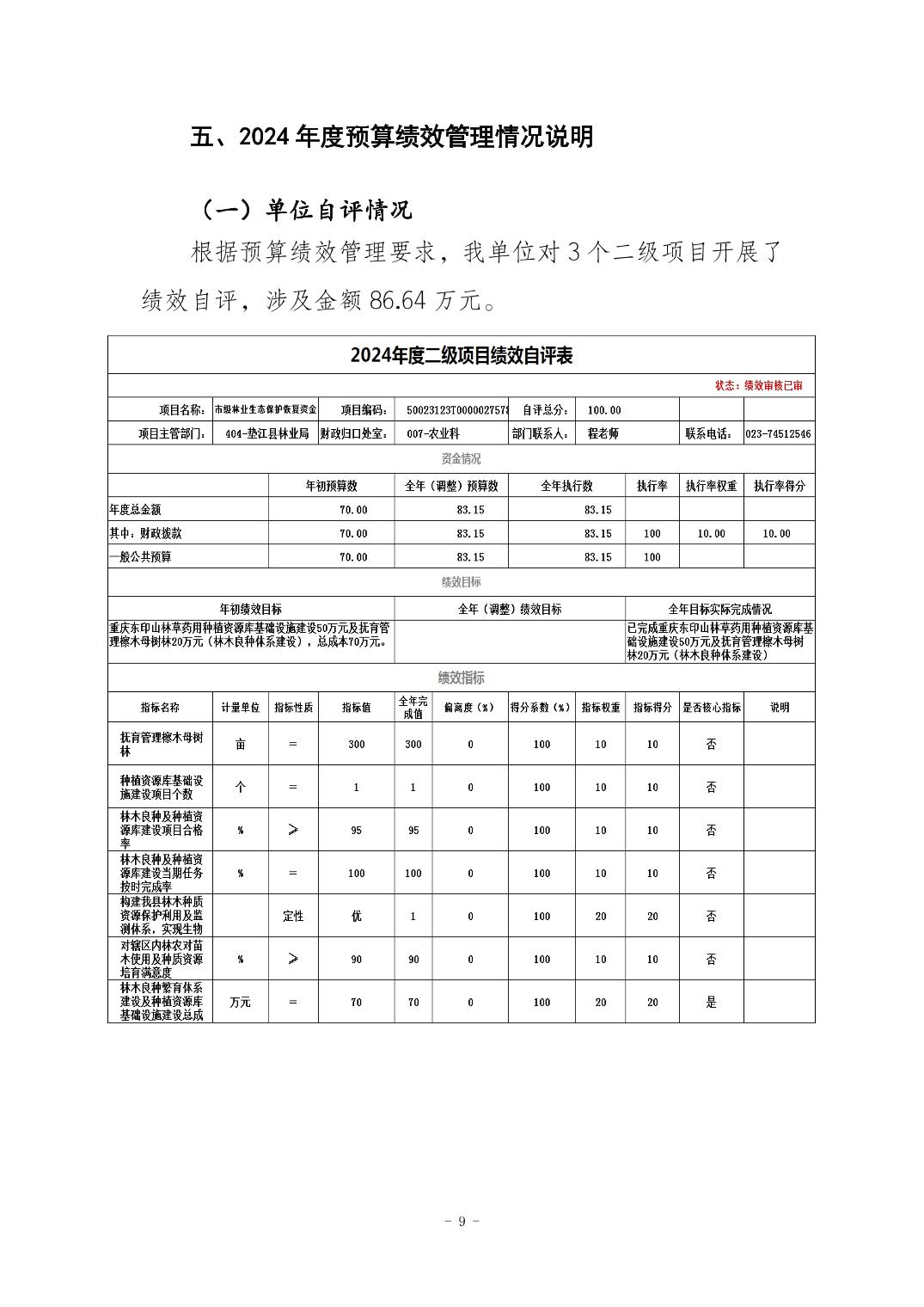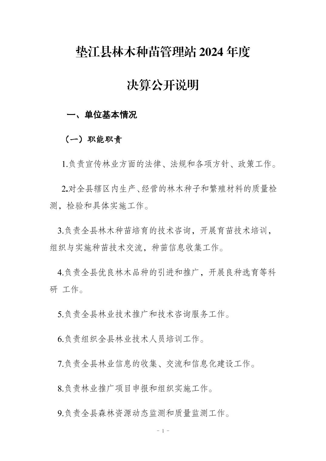 垫江县林木种苗管理站2024年度决算公开说明