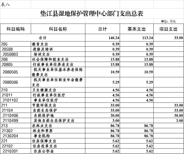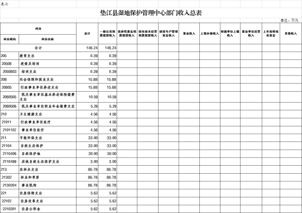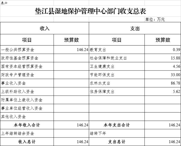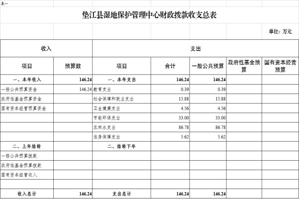 附表:1.垫江县湿地保护管理中心财政拨款收支总表