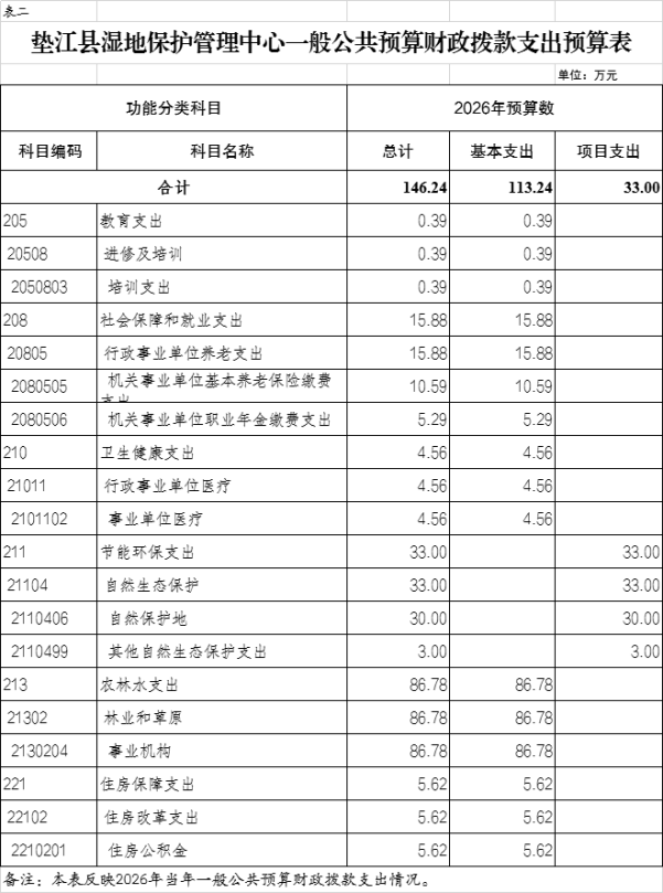 2.垫江县湿地保护管理中心一般公共预算财政拨款支出预算表