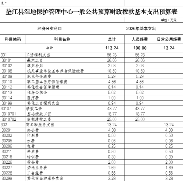 3.垫江县湿地保护管理中心一般公共预算财政拨款基本支出预算表