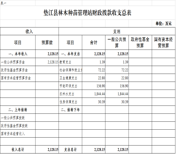 附表:1.垫江县林木种苗管理站财政拨款收支总表