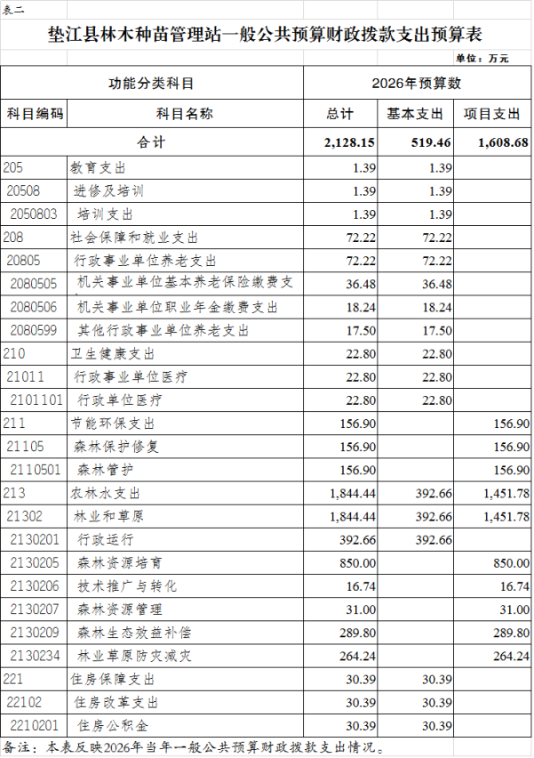 垫江县林木种苗管理站 2026年单位预算情况说明
