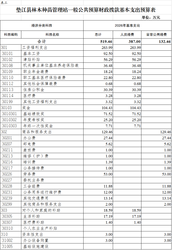3.垫江县林木种苗管理站一般公共预算财政拨款基本支出预算表