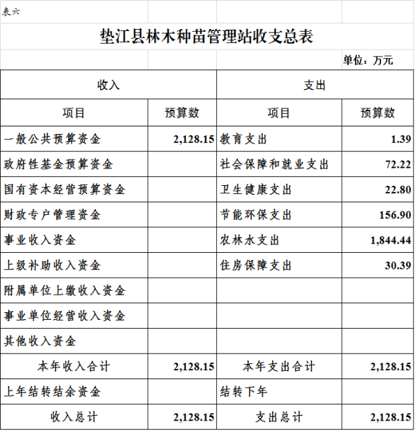 6.垫江县林木种苗管理站部门收支总表