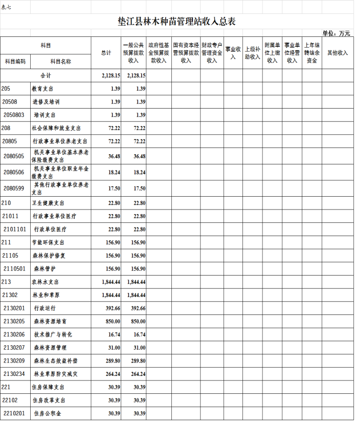7.垫江县林木种苗管理站部门收入总表