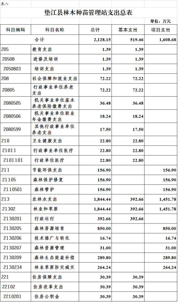 8.垫江县林木种苗管理站部门支出总表