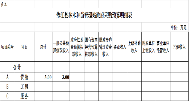 9.垫江县林木种苗管理站政府采购明细表
