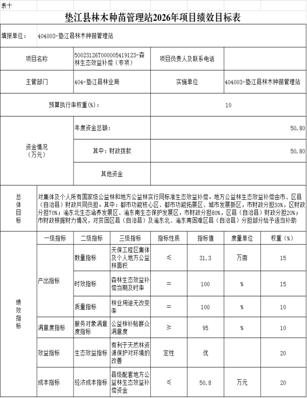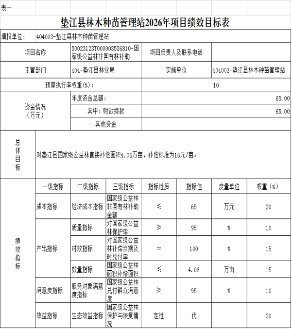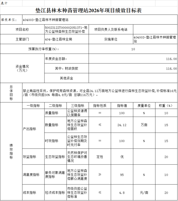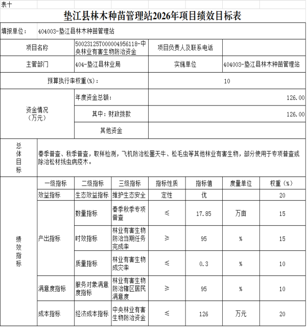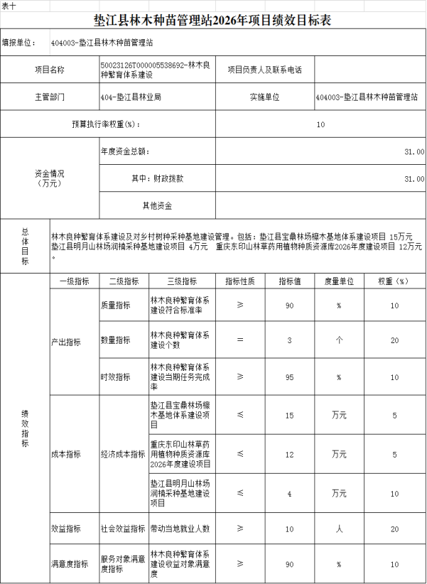 10.垫江县林木种苗管理站2026年项目绩效目标表