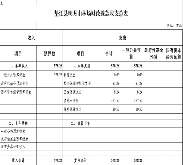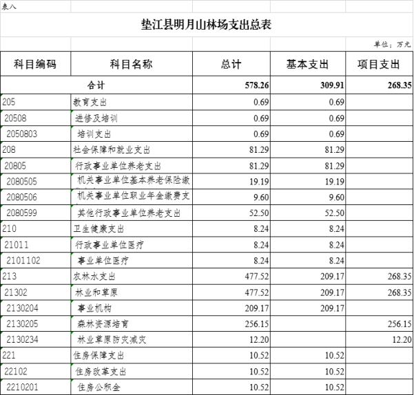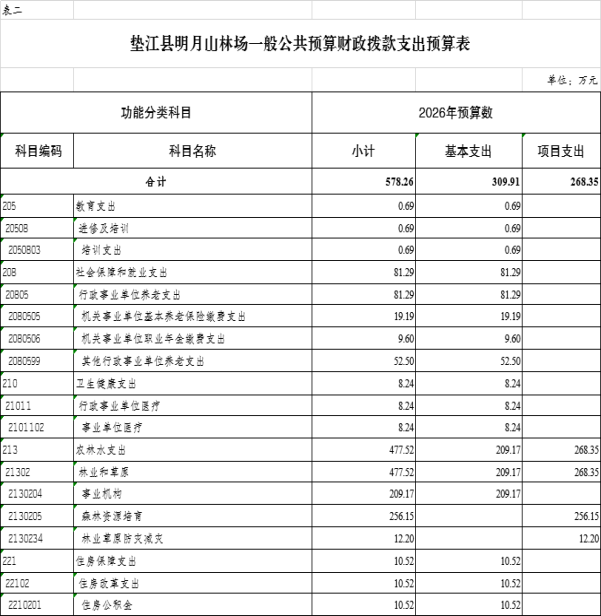 2.垫江县明月山林场一般公共预算财政拨款支出预算表