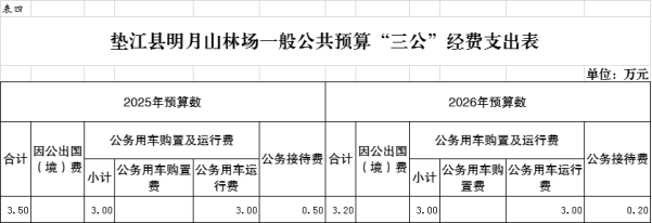4.垫江县明月山林场一般公共预算“三公”经费支出表