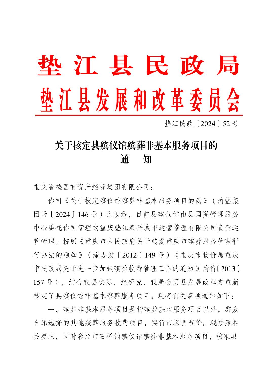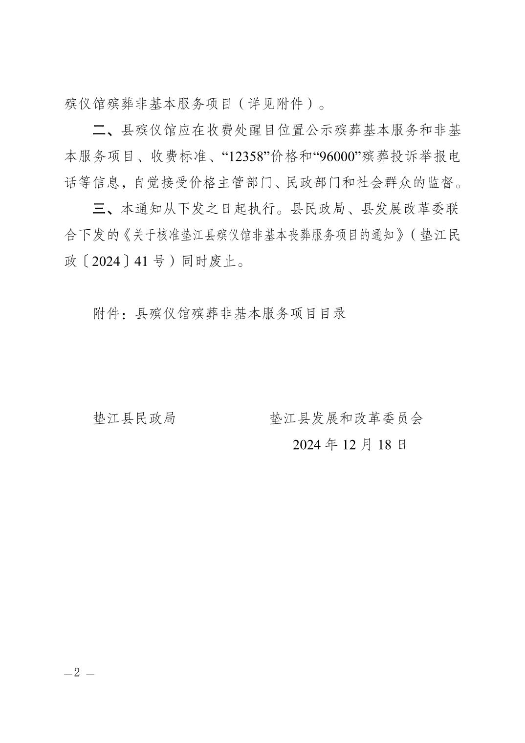 垫江县民政局 垫江县发展和改革委员会关于核定县殡仪馆殡葬非基本服务项目的通知