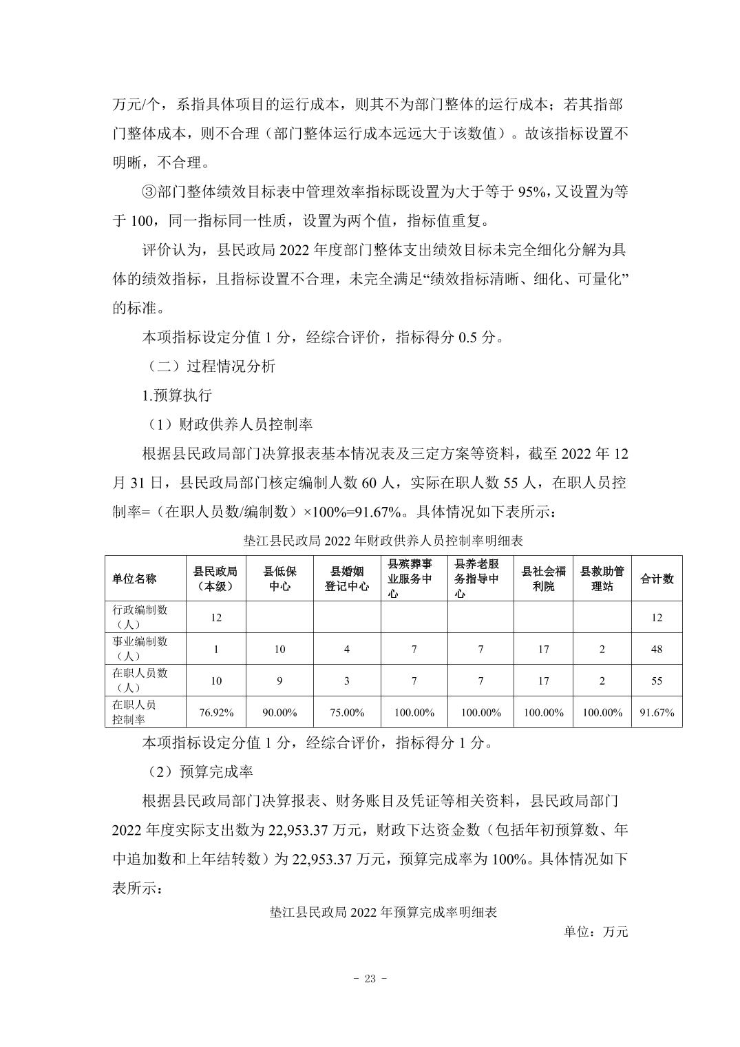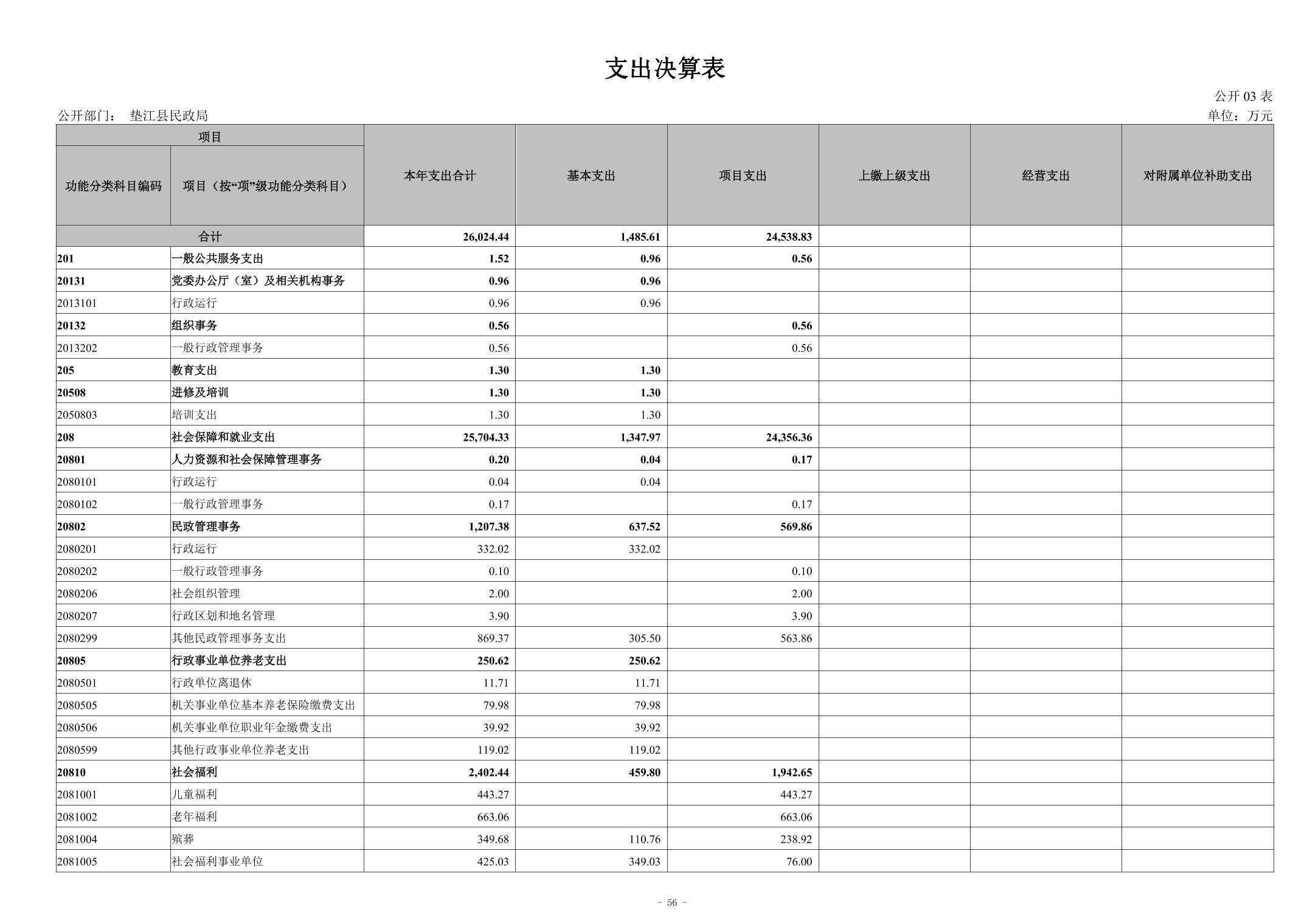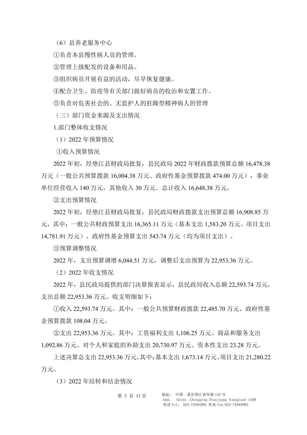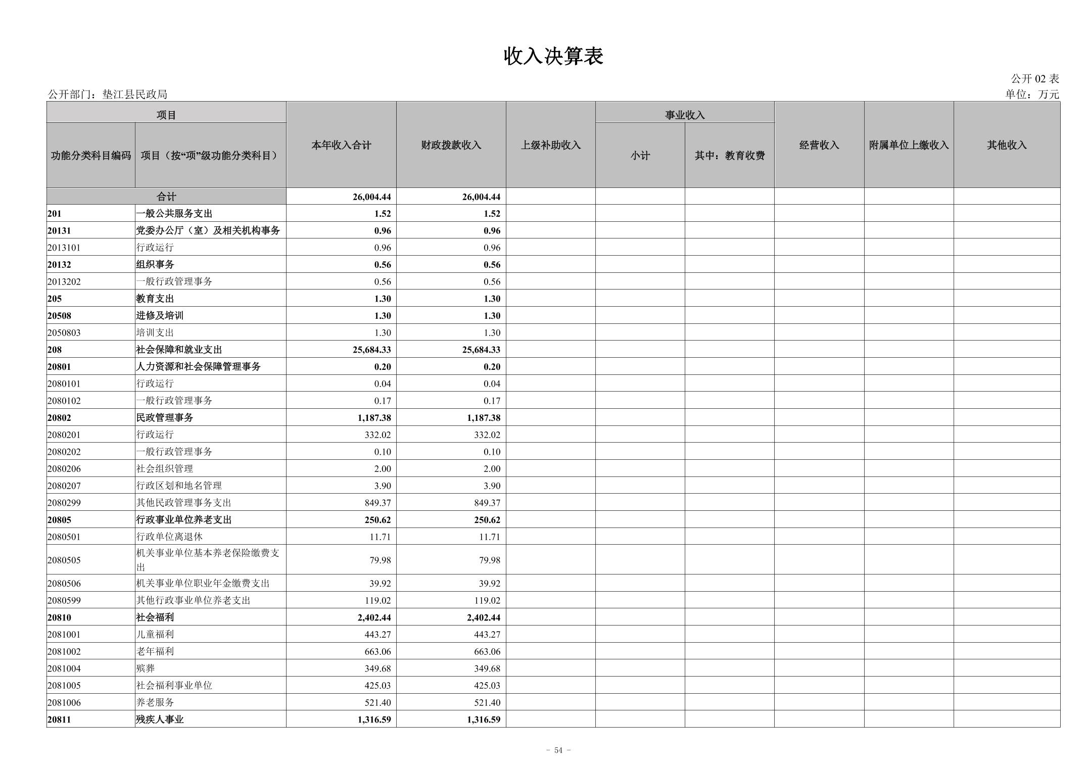 垫江县民政局2023年度决算公开说明