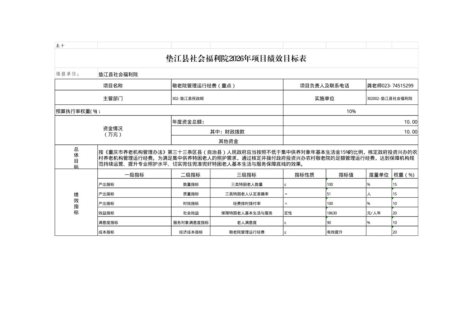 垫江县社会福利院2026年单位预算情况说明