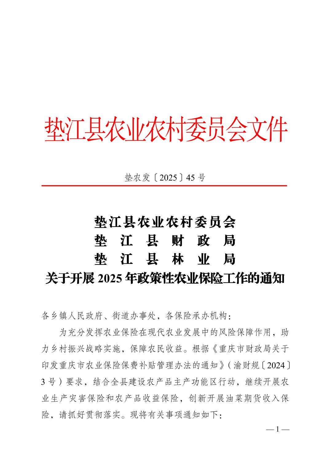 45关于开展2025年政策性农业保险工作的通知(联合).pdf45关于开展2025年政策性农业保险工作的通知(联合).wps