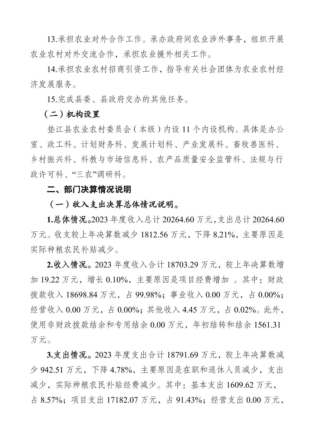 垫江县农业农村委员会(本级)2023年度决算公开说明.docx垫江县农业农村委员会(本级)2023年度决算公开说明.pdf