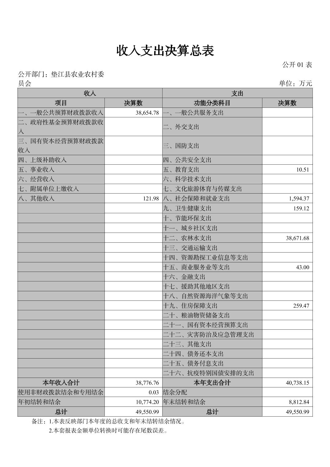 您当前的位置:首页>农业农村委员会>政务公开>法定主动公开内容>预算/决算>决算公开