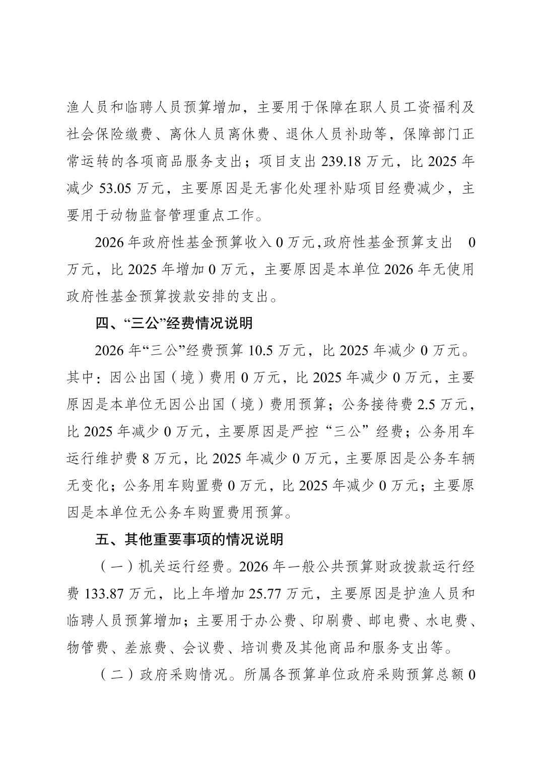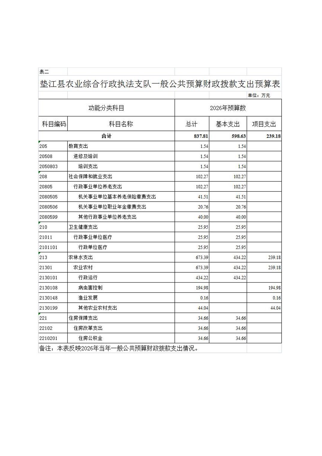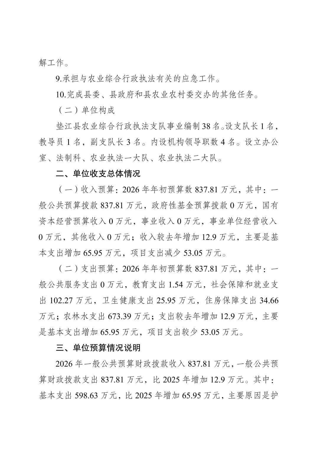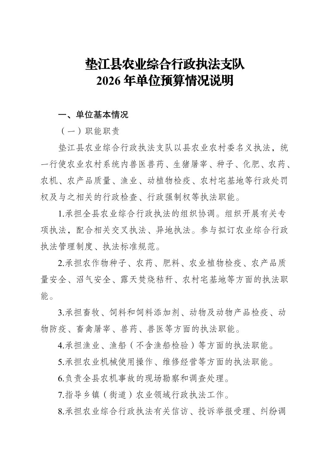垫江县农业综合行政执法支队2026年单位预算情况说明