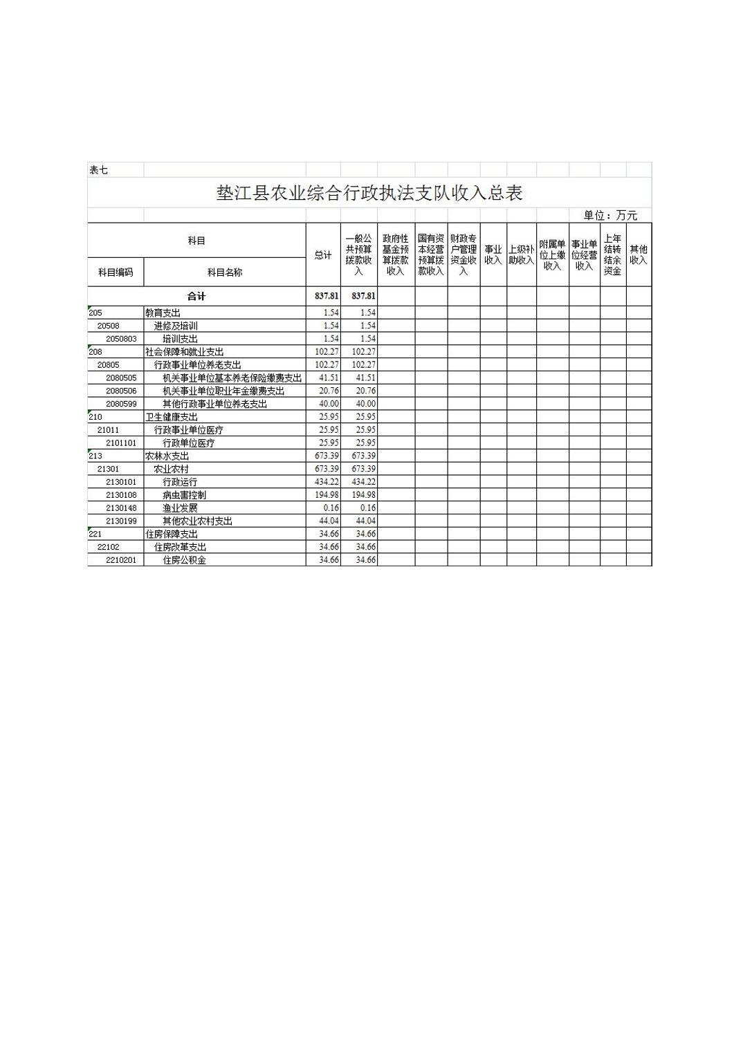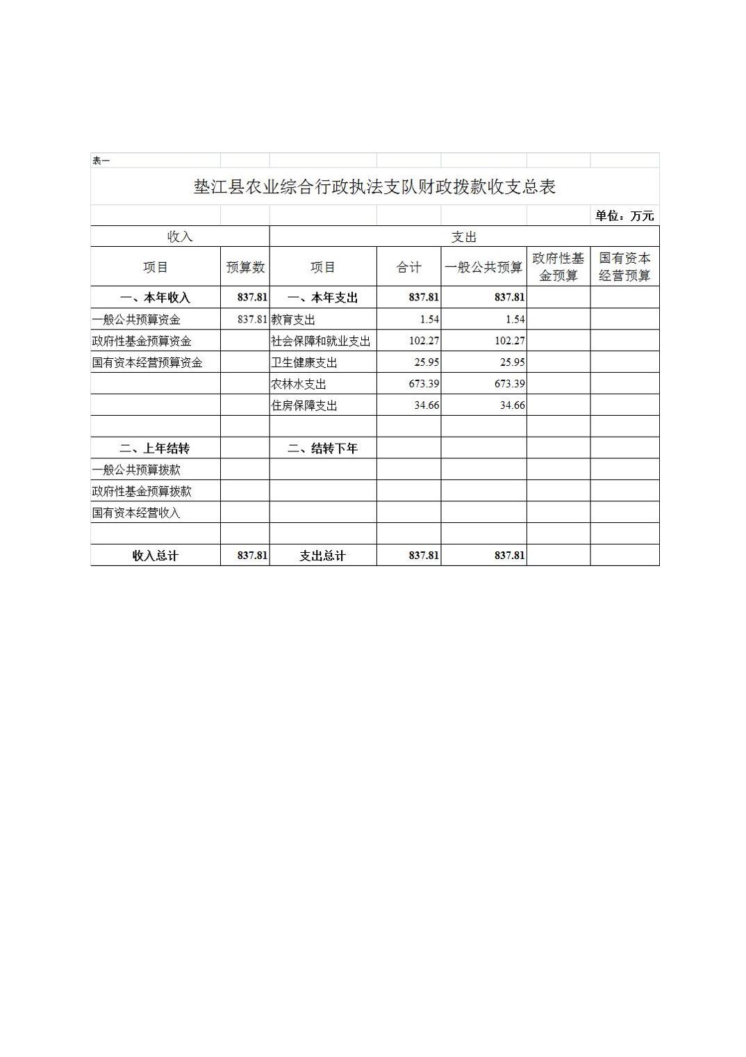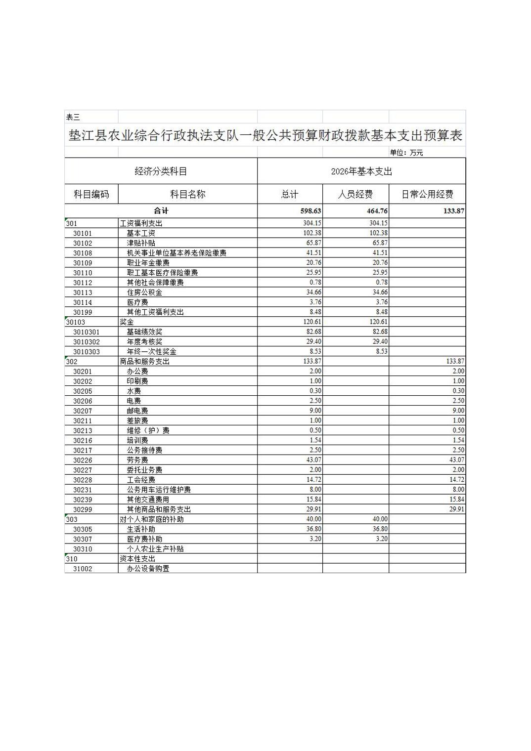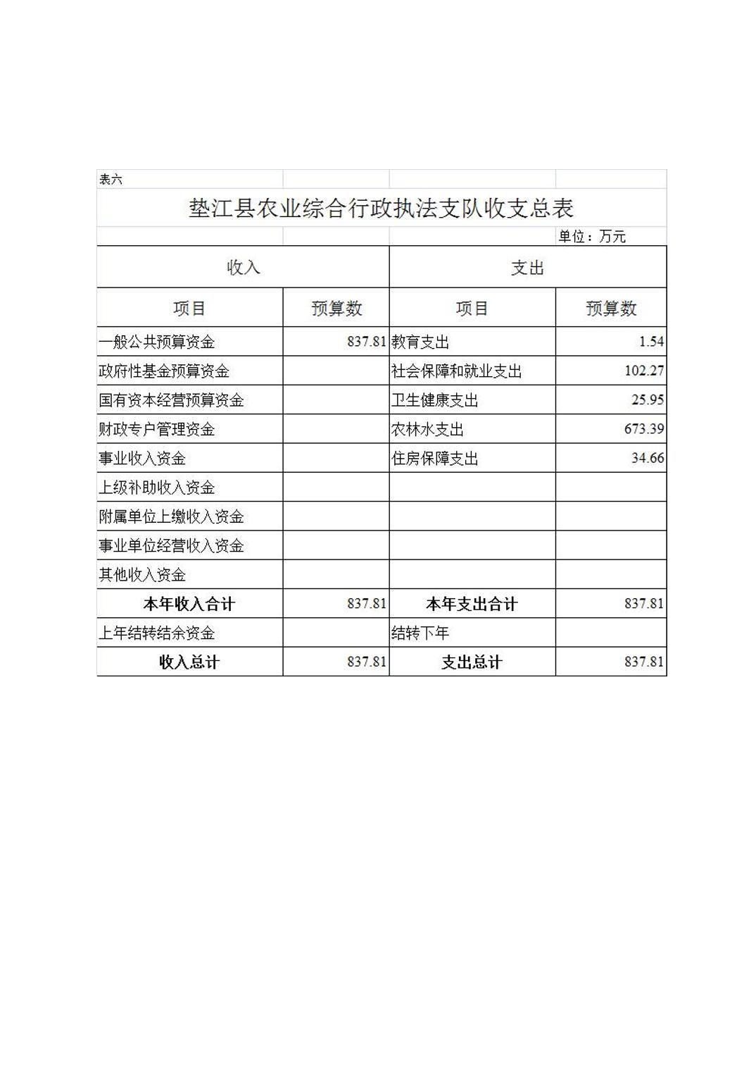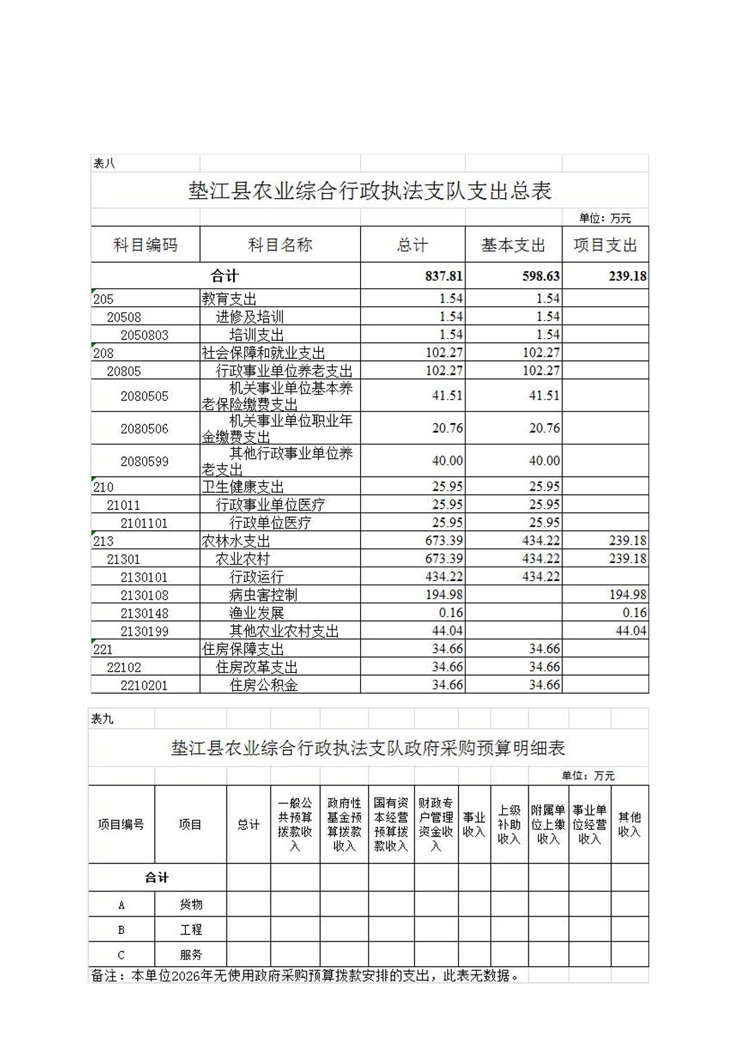 垫江县农业综合行政执法支队2026年单位预算情况说明