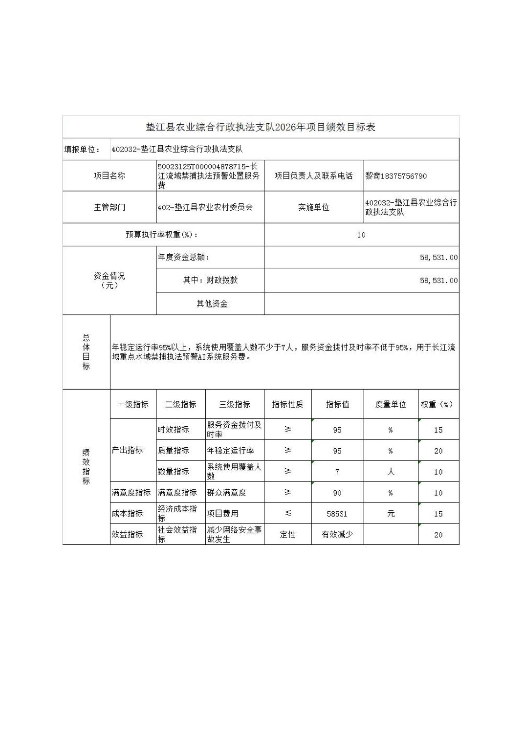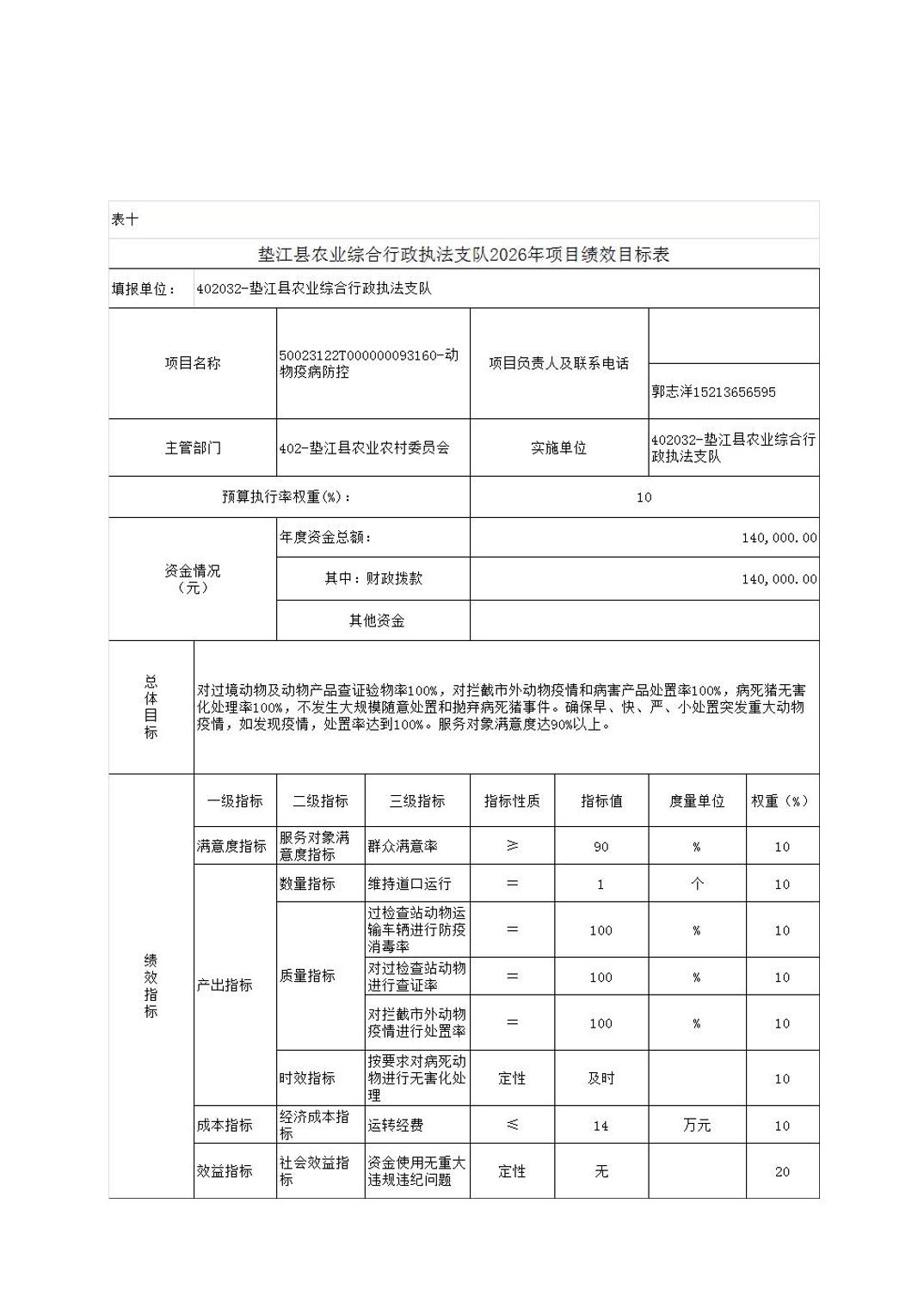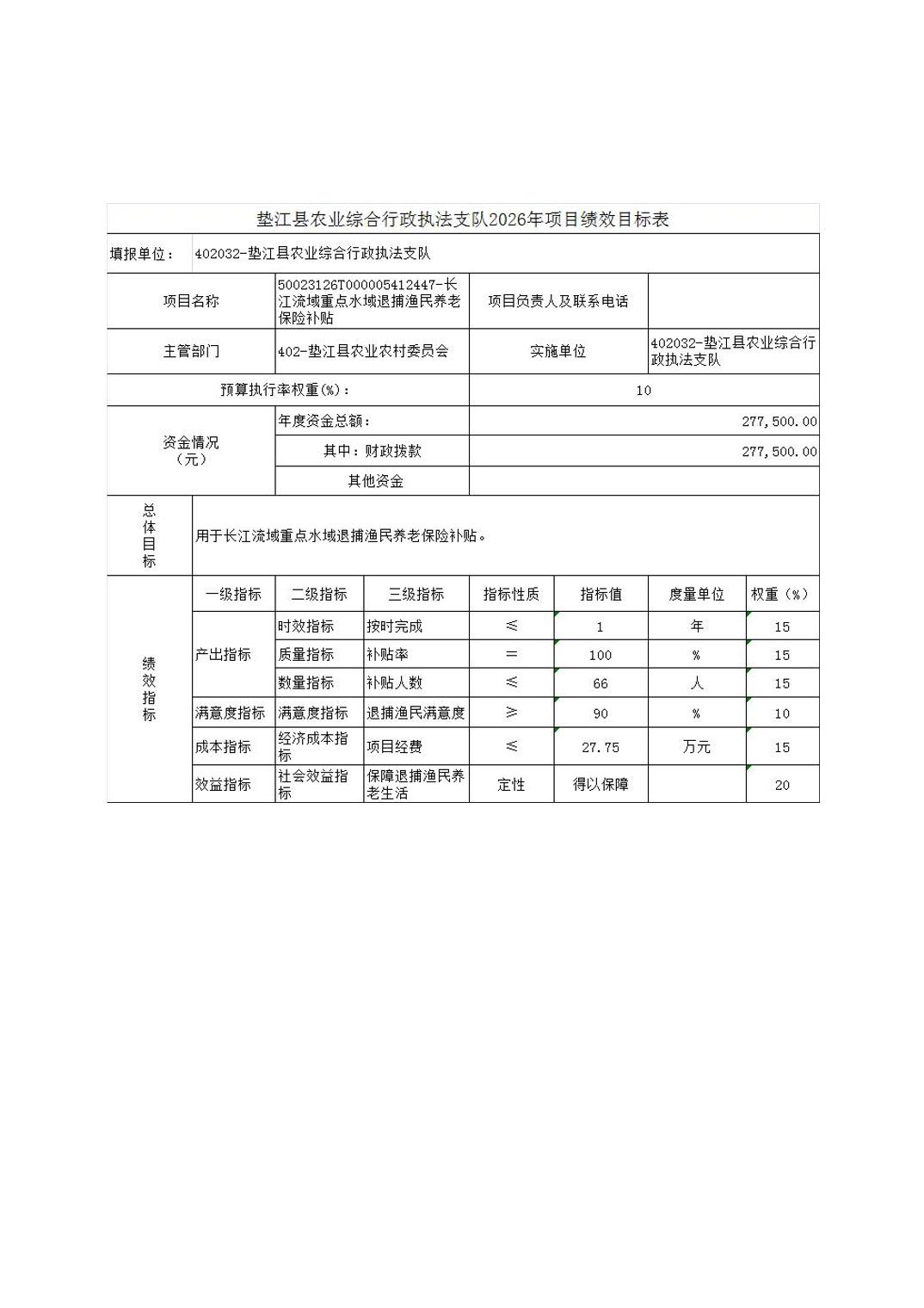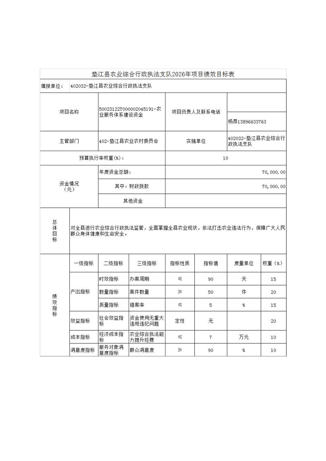 垫江县农业综合行政执法支队2026年单位预算情况说明
