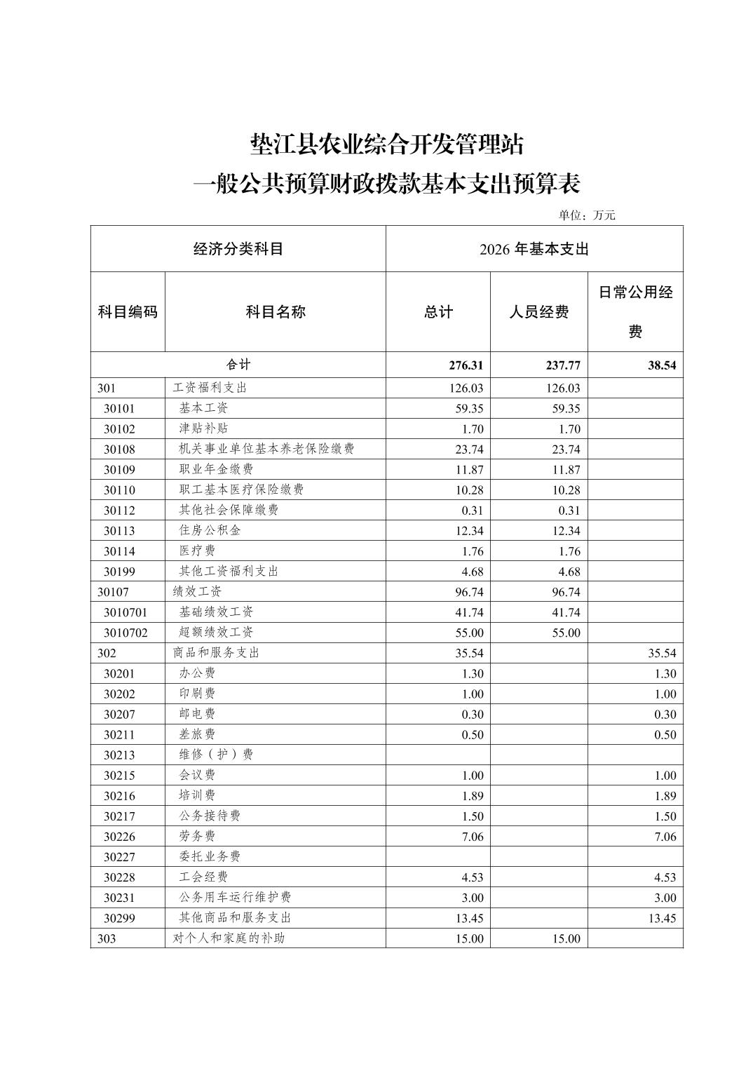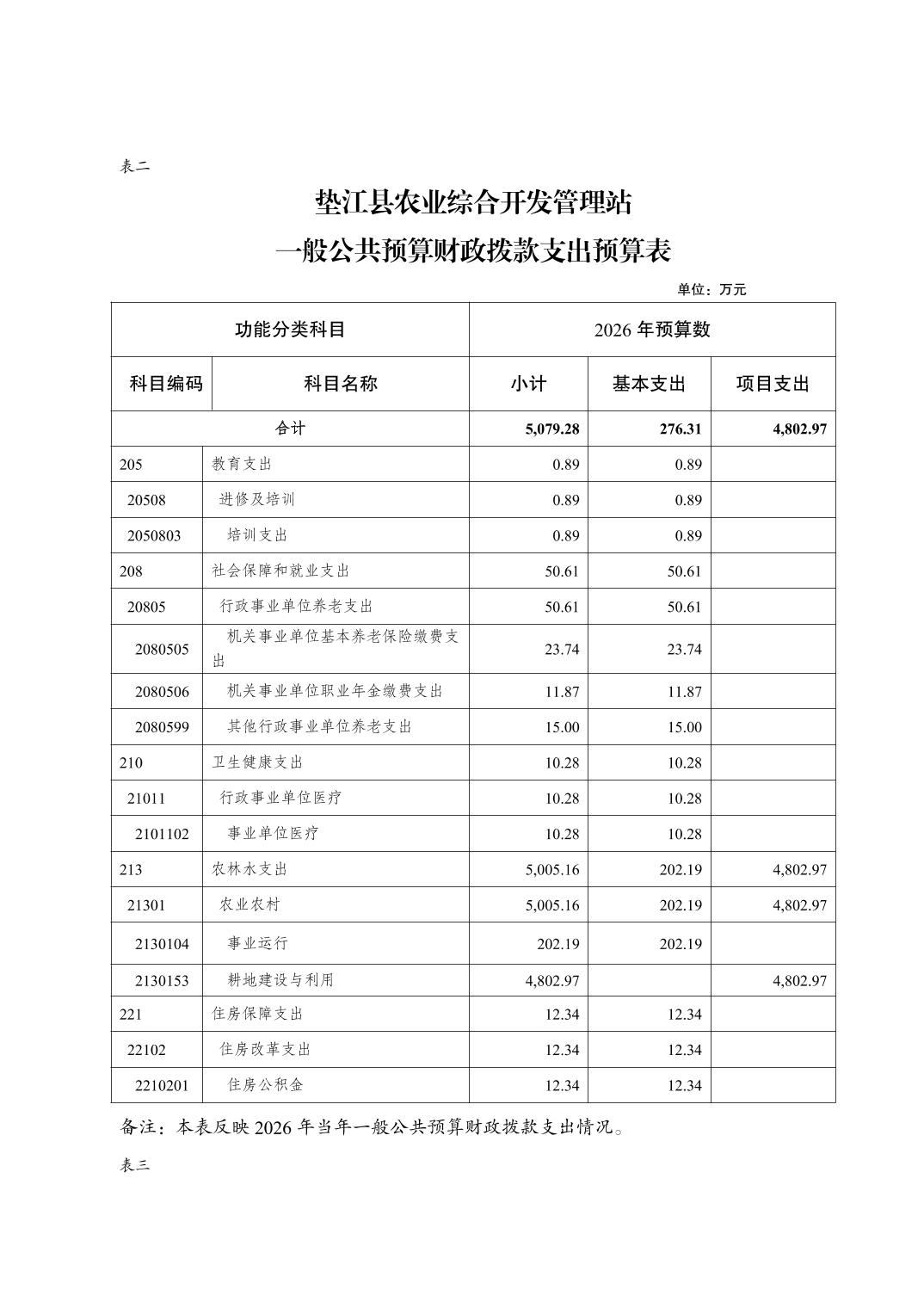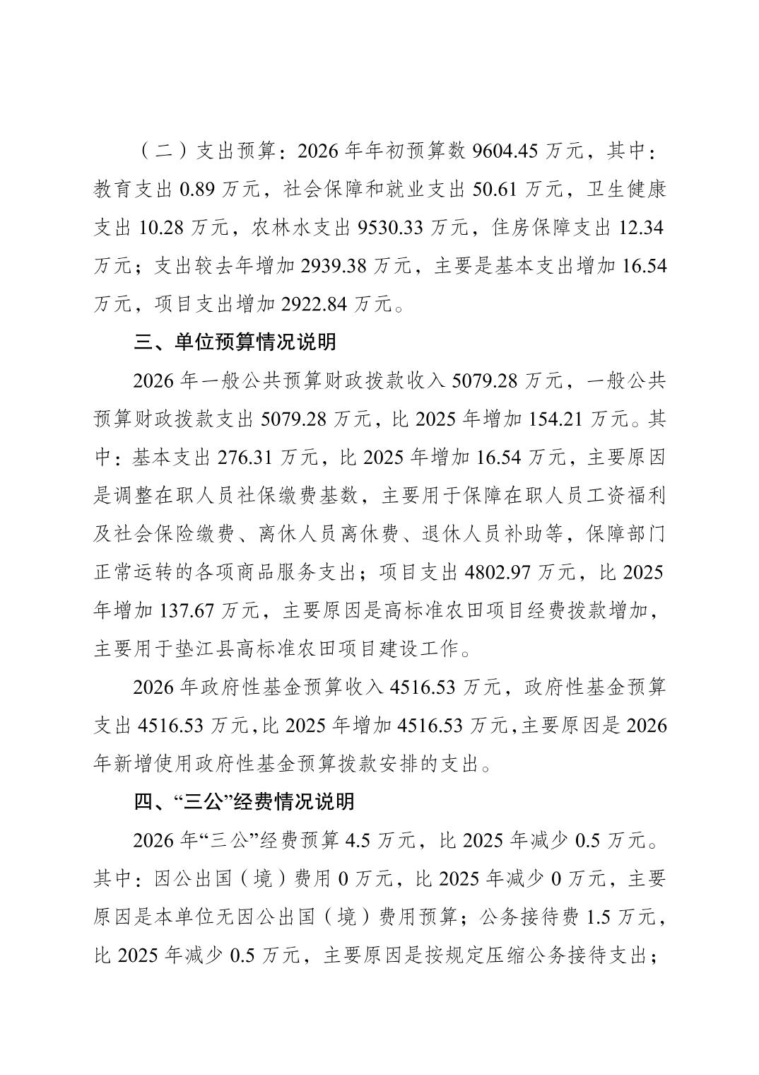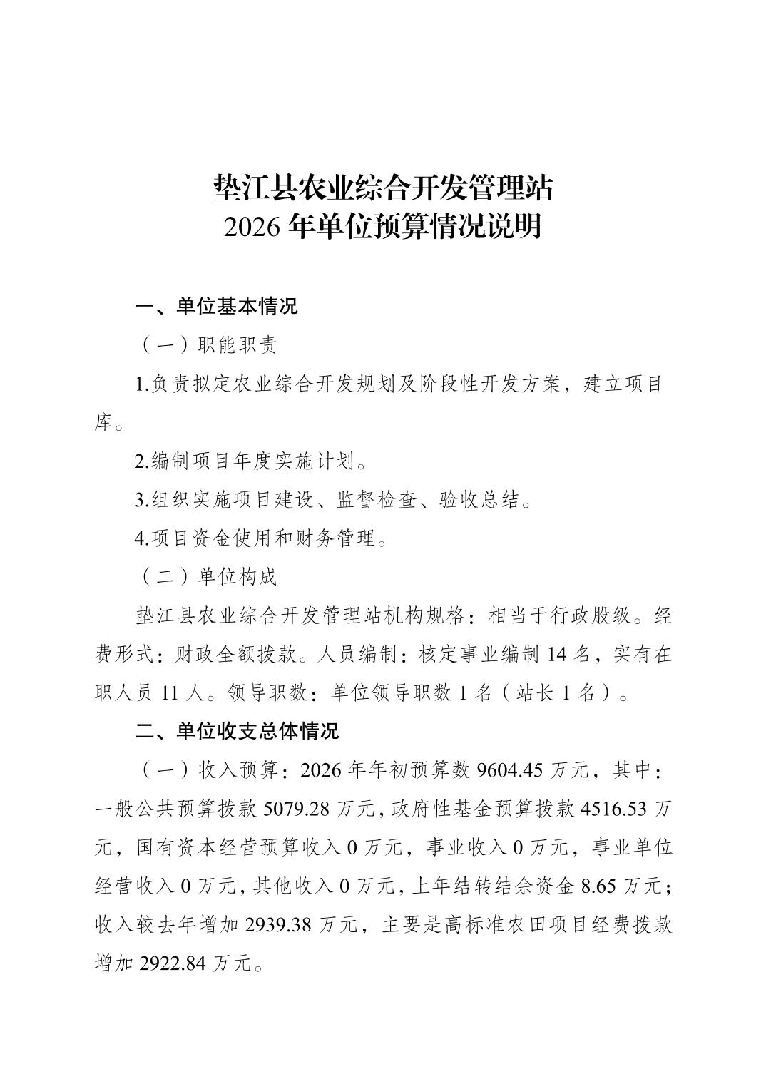垫江县农业综合开发管理站2026年单位预算情况说明