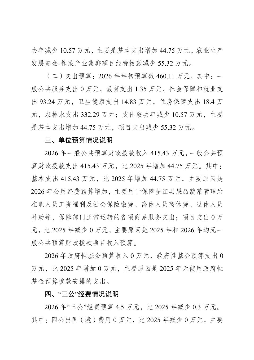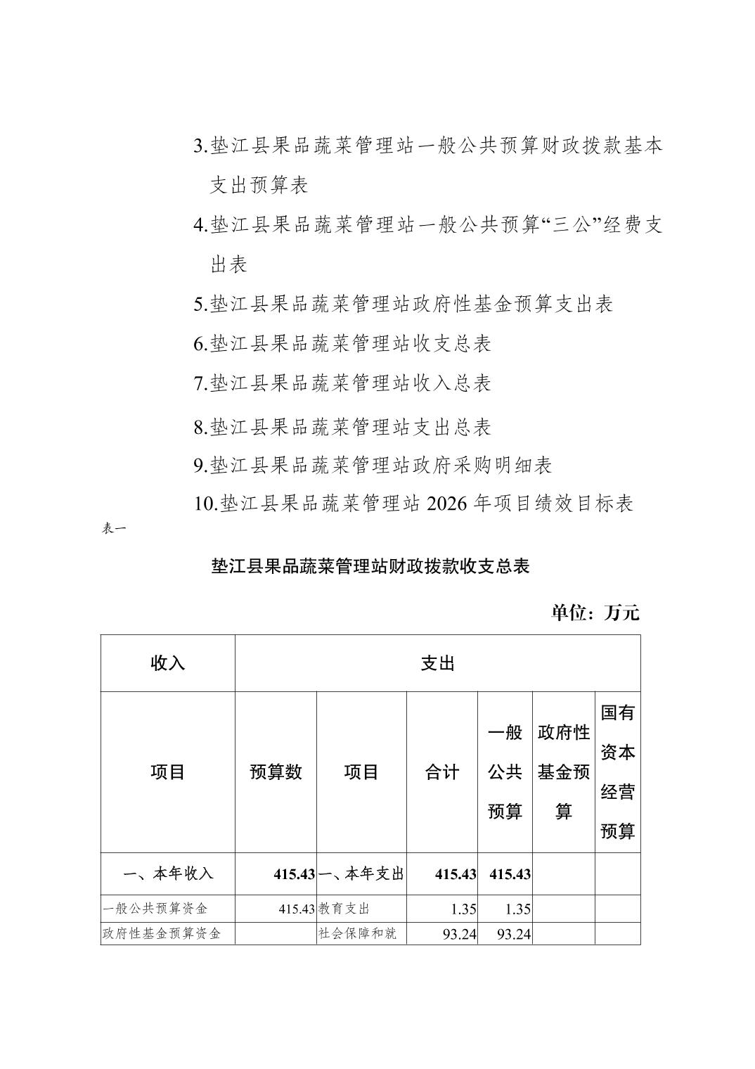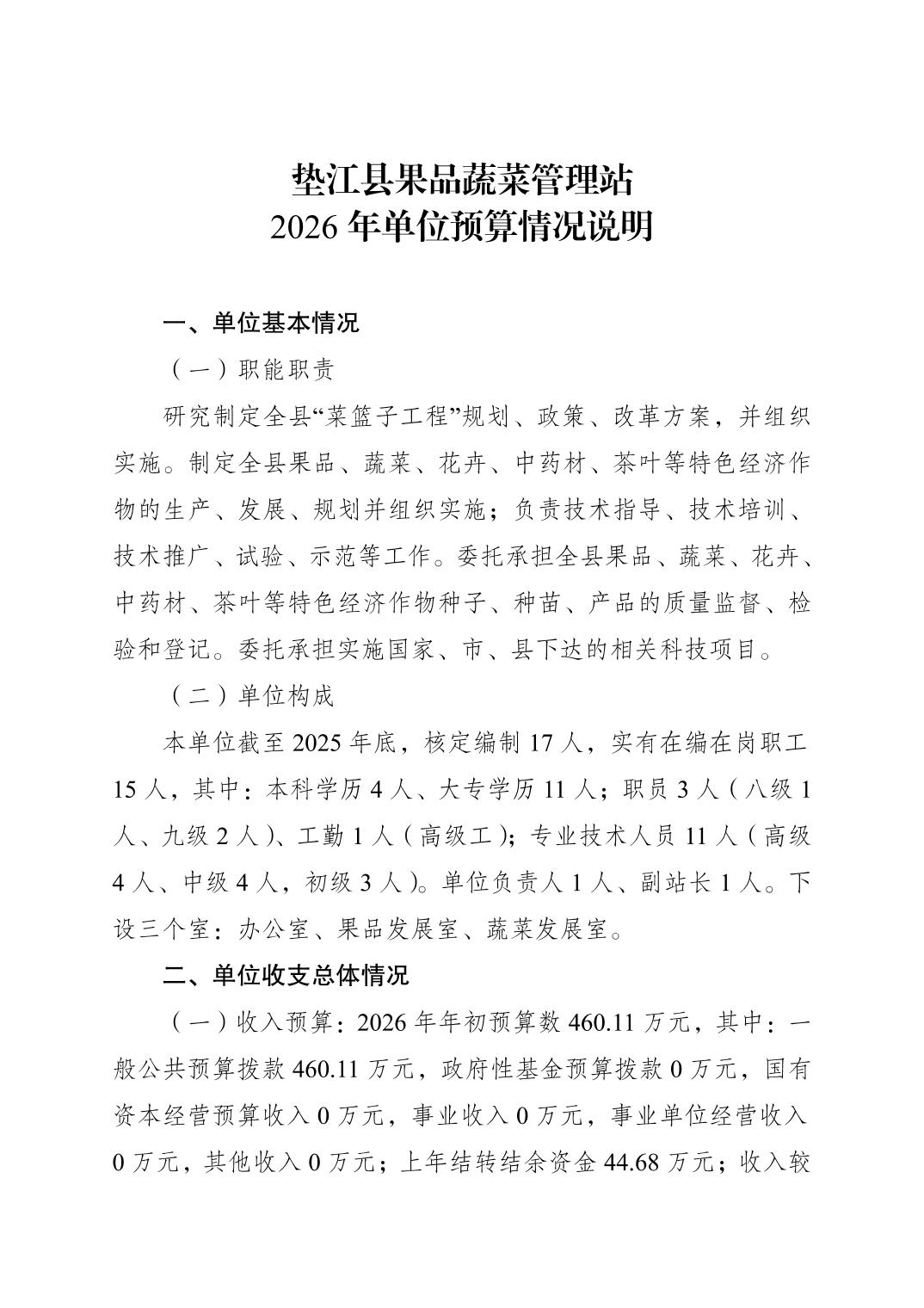 垫江县果品蔬菜管理站2026年单位预算情况说明