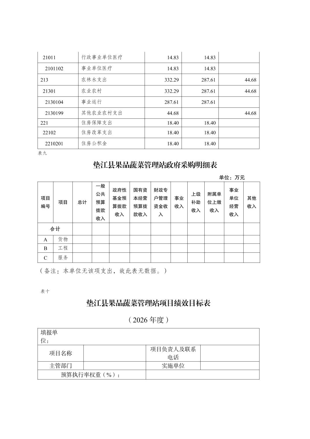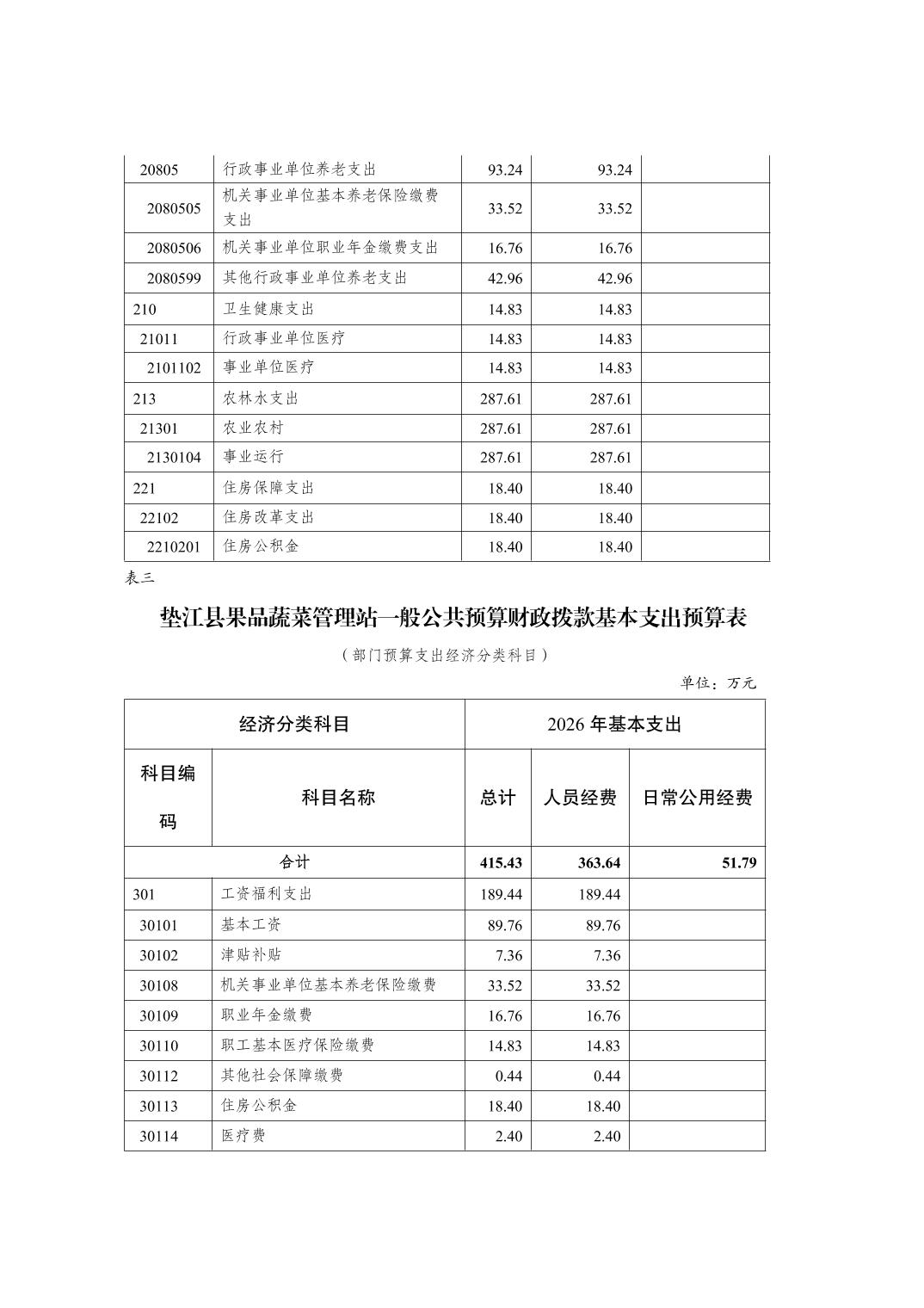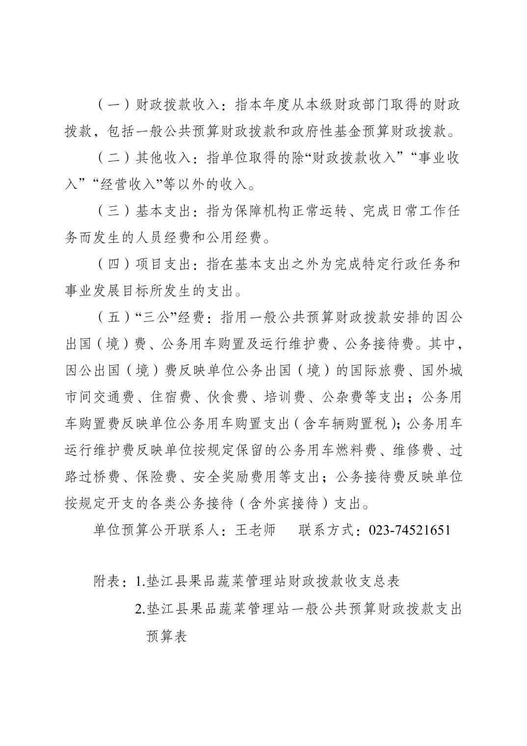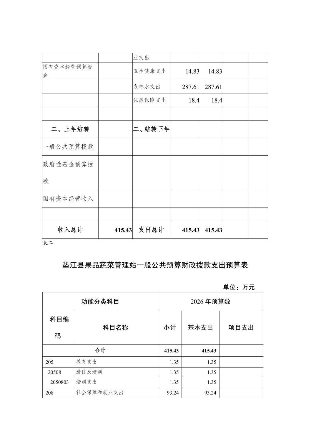 垫江县果品蔬菜管理站2026年单位预算情况说明