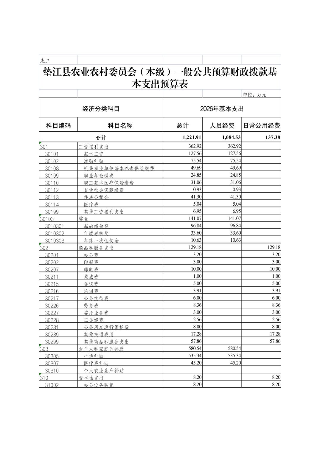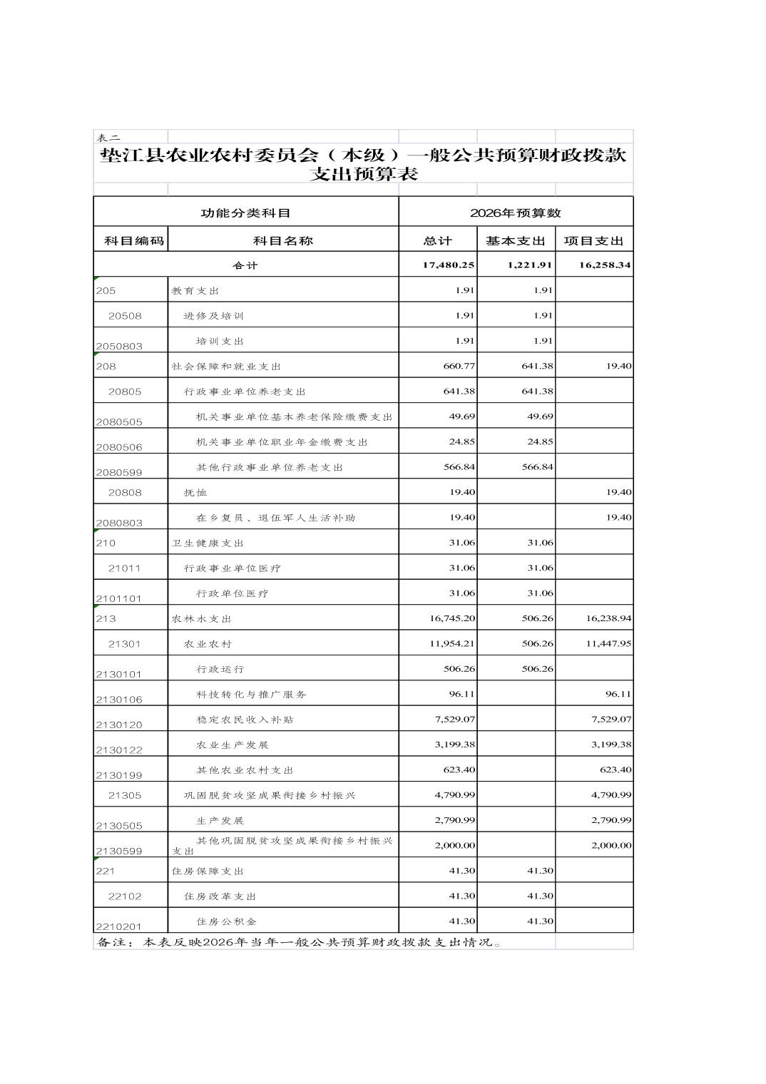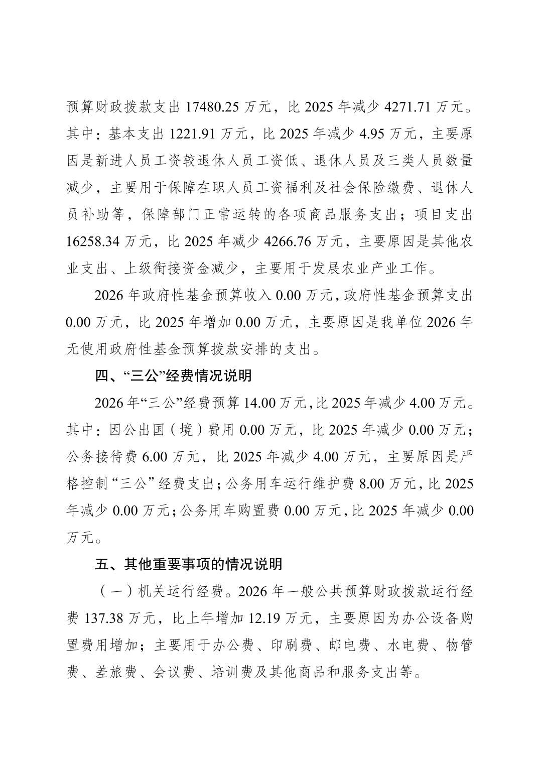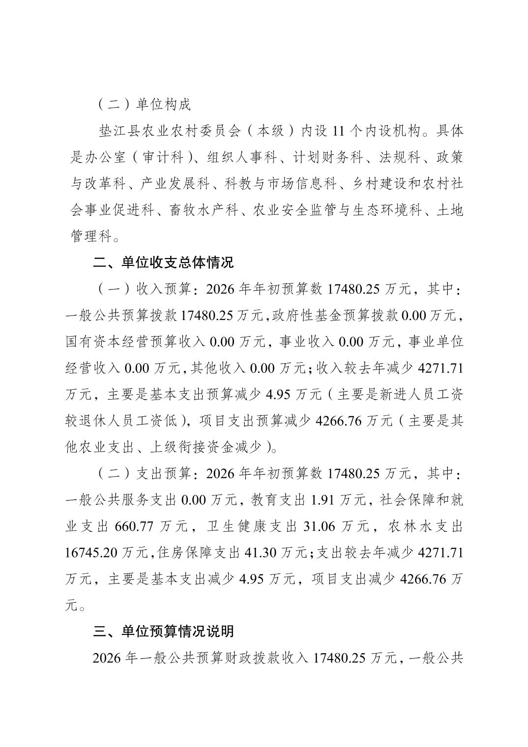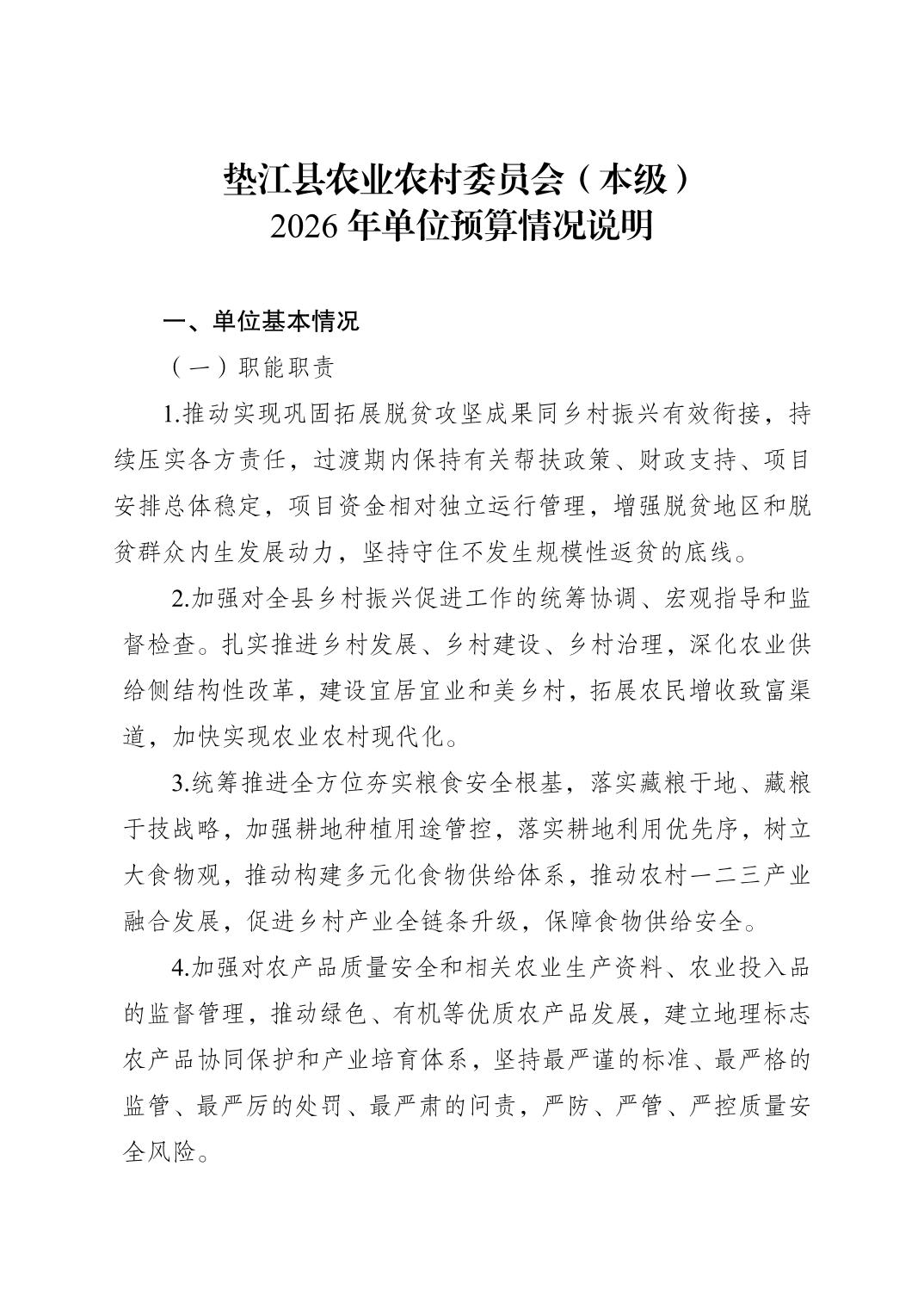 垫江县农业农村委员会(本级)2026年单位预算情况说明