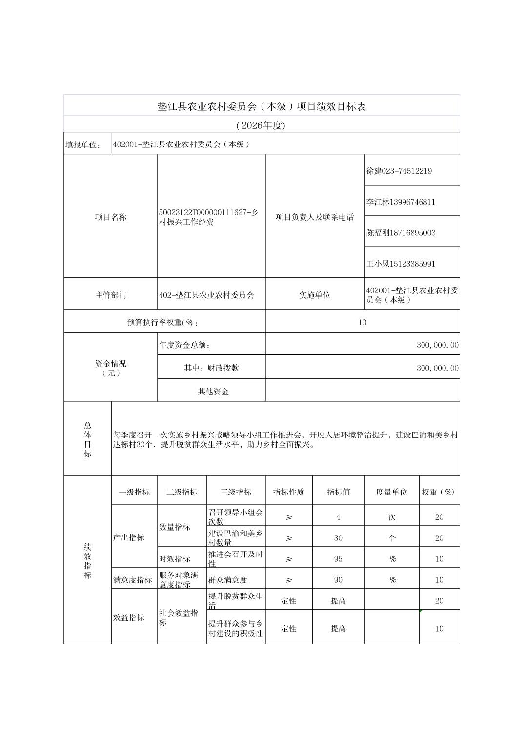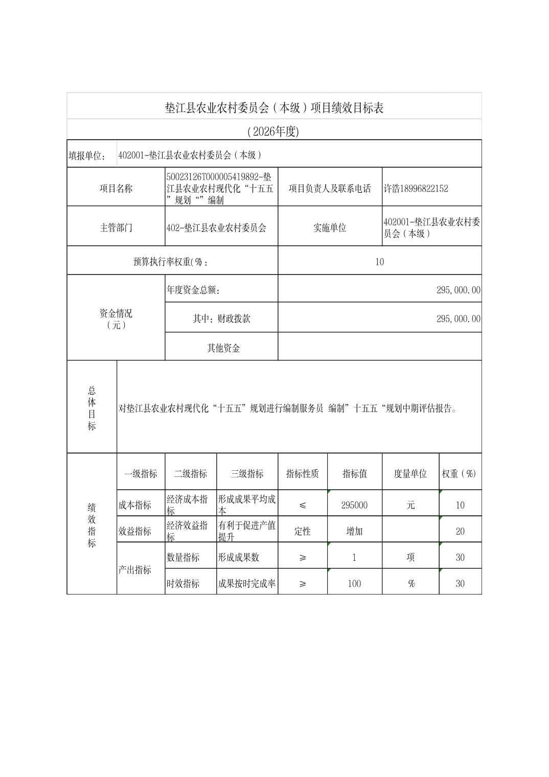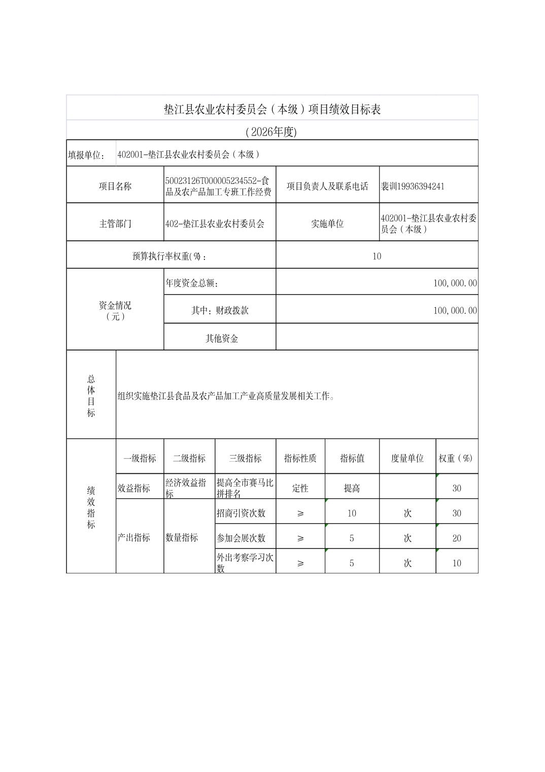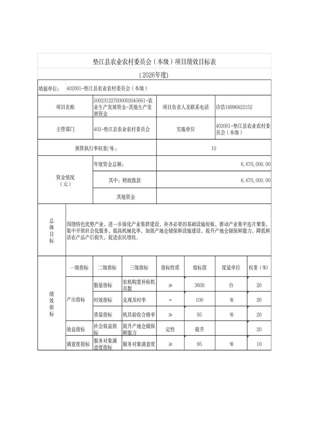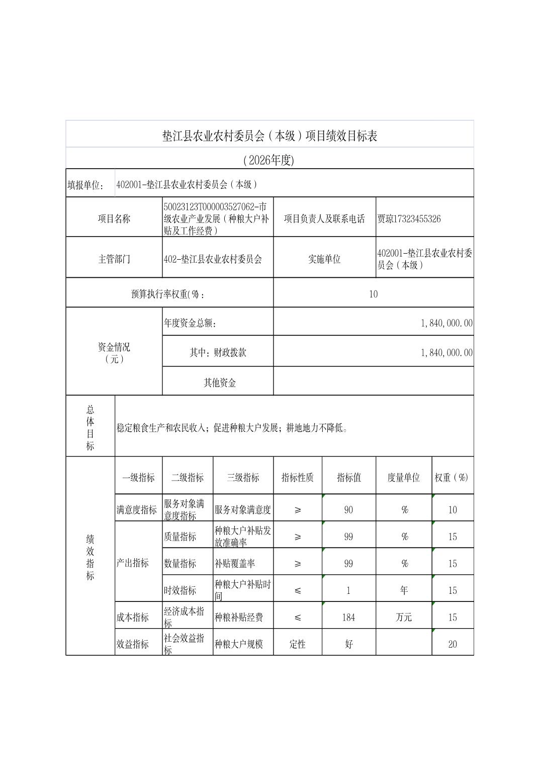 垫江县农业农村委员会(本级)2026年单位预算情况说明