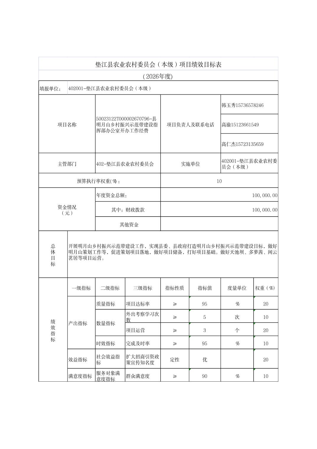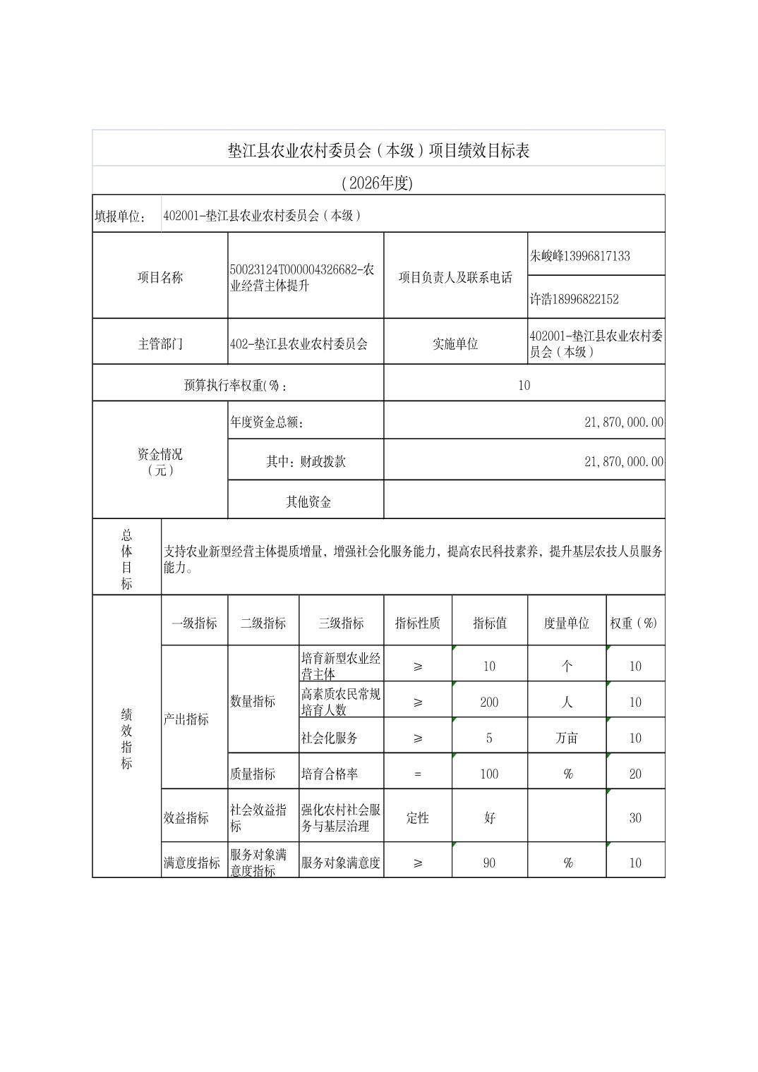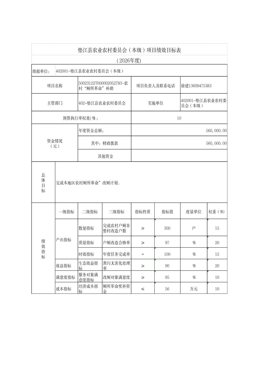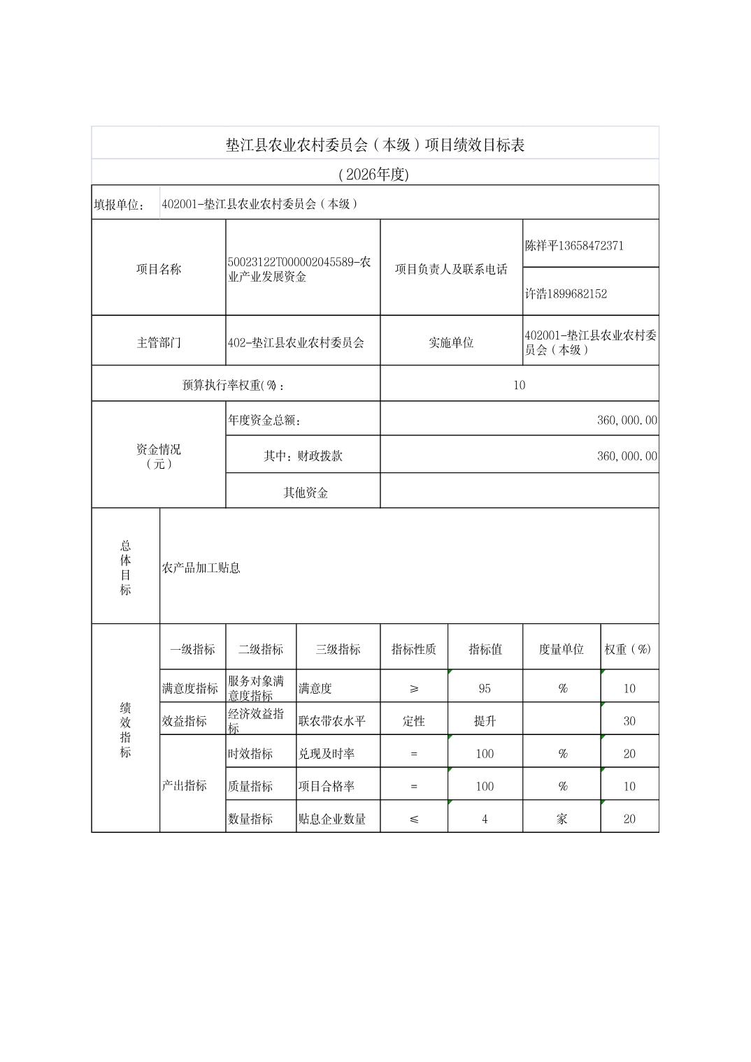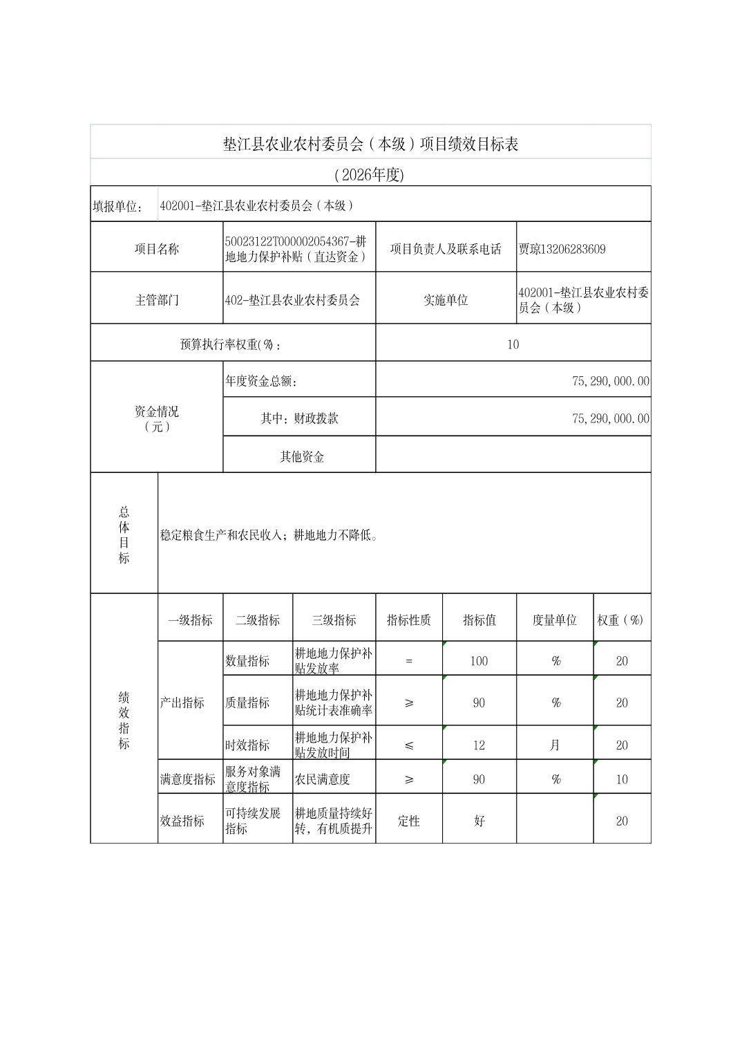 垫江县农业农村委员会(本级)2026年单位预算情况说明